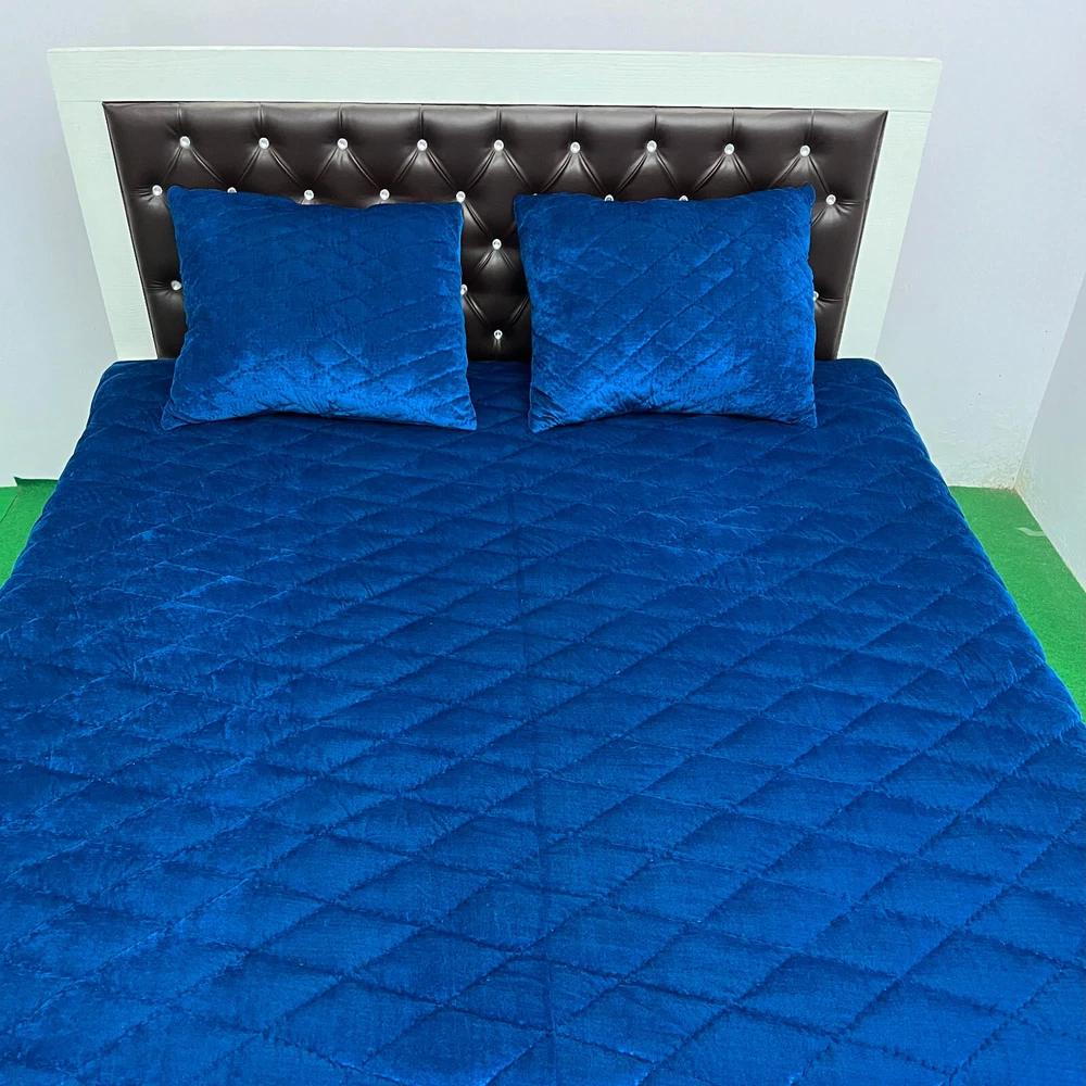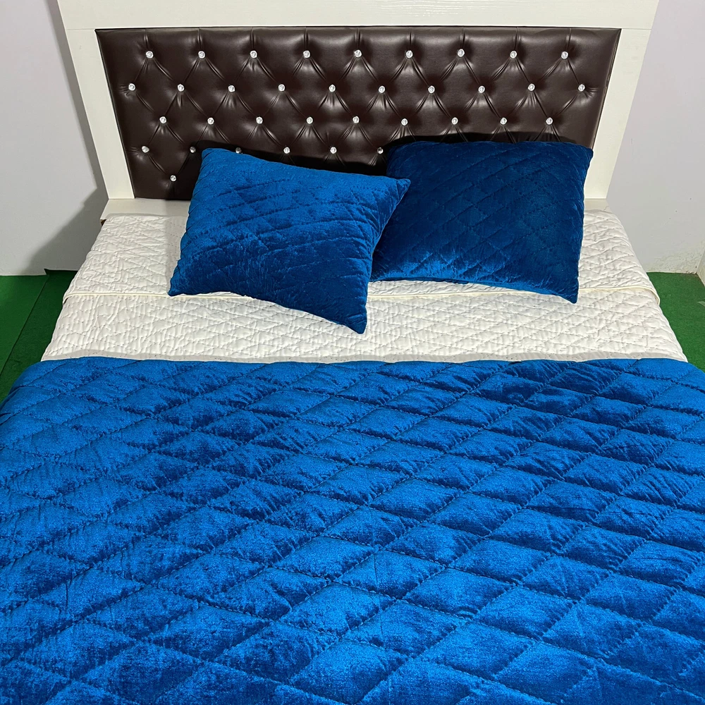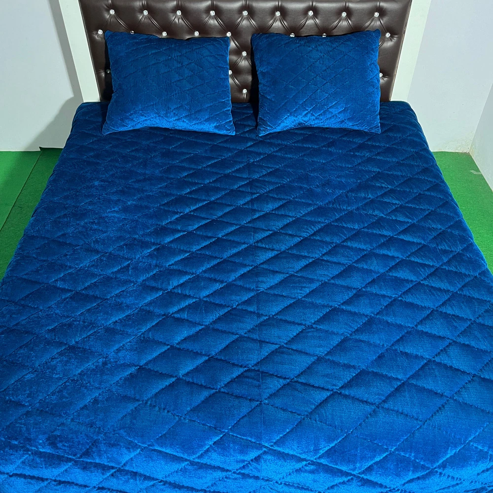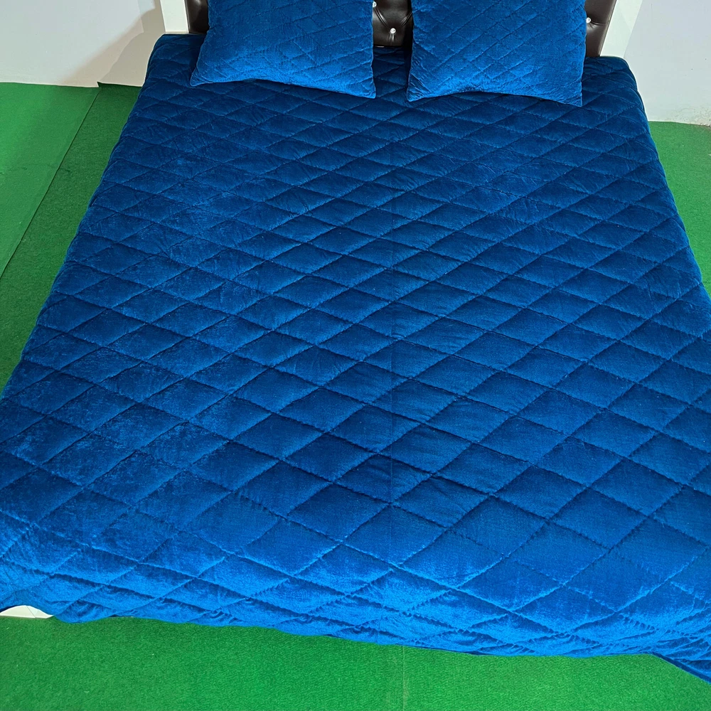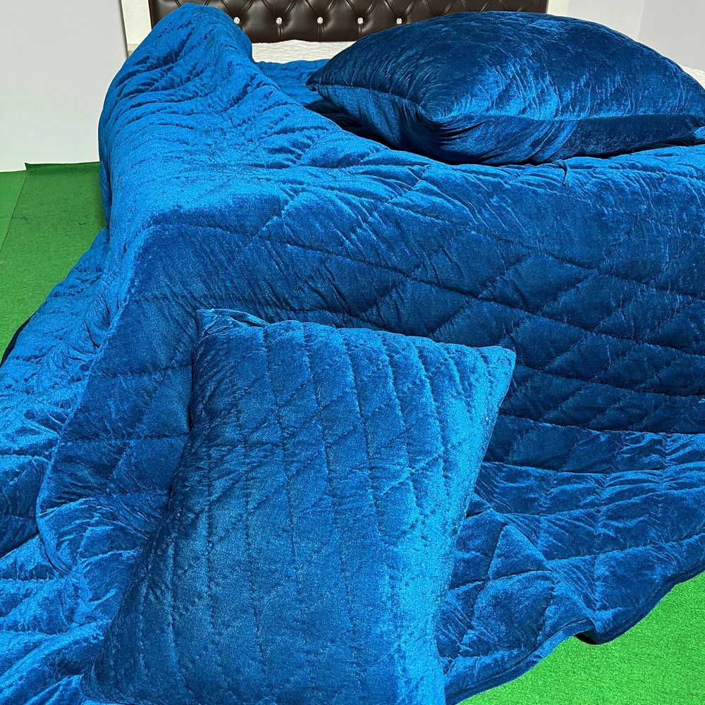 Welcome to Surya Handicraft Wrap yourself in warmth and love with our handcrafted blankets! Experience the ultimate blend of comfort and elegance with our Blanket Diamond Stitch Velvet Royal Blue Quilt. Crafted by Surya handicrafts, this luxurious full queen-sized blanket features a stunning diamond stitching pattern on a rich royal blue background, creating a modern aesthetic that perfectly complements any bedroom decor. Indulge in the softness of premium velvet and cotton materials, designed to provide warm insulation and a cozy feel that lasts all night long. Thoughtfully personalized to fit your unique style, this rectangular blanket measures 90 inches in both length and width, ensuring a perfect fit for your bed. It boasts a thread count of 801-999, ensuring a high-quality, dense weave that's both durable and comfortable. The blanket is easy to care for and is dry clean only, maintaining its luxurious appearance with minimal effort. Enhance your sleeping experience with this exquisite piece that brings a touch of luxury to your everyday rest. Each one is meticulously made with care and attention to detail, ensuring a unique and high-quality addition to your home. Made from soft, premium materials, our blankets offer both comfort and style. Ideal for cozying up on the couch, adding a touch of elegance to your bedroom, or as a thoughtful gift for loved ones. Handmade with Love: Each blanket is individually crafted, making every piece one-of-a-kind. Enhance your living space with a blanket that?s as unique as you are. Order yours today and experience the warmth of handmade quality Details #1 - Available in multiple sizes. Please select the size #2 - Stitching: Pure Hand Stitch #3 - Spot cleaning #4 - Light Cotton stuffing #5 - Delivered within 4 To 6 business days Measurement Multiple size available US Bedding sizes includes Lap /Twin/Full/Queen/King Customized sizes and color are available, please #1 - 40x50 - inch Lap Quilt #2 - 66x88 - inch Twin quilt #3 - 90x90 - inch Queen quilt - Weighs about 5.6 pounds (about 2.7 kilograms ) #4 - 90x104 - inch King quilt #5 - 92x108 - inch California King quilt #6 - 20X26 - 2 Euro sham #7 - 26X26 - 2 Euro sham Customizatio n You can get your choice of color for cotton. If you like a customized throw blankets or have any questions about the product, please send me a message and I will be happy to work on it. NOTE # BUYER WILL BE RESPONSIBLE FOR ANY RETURN COST