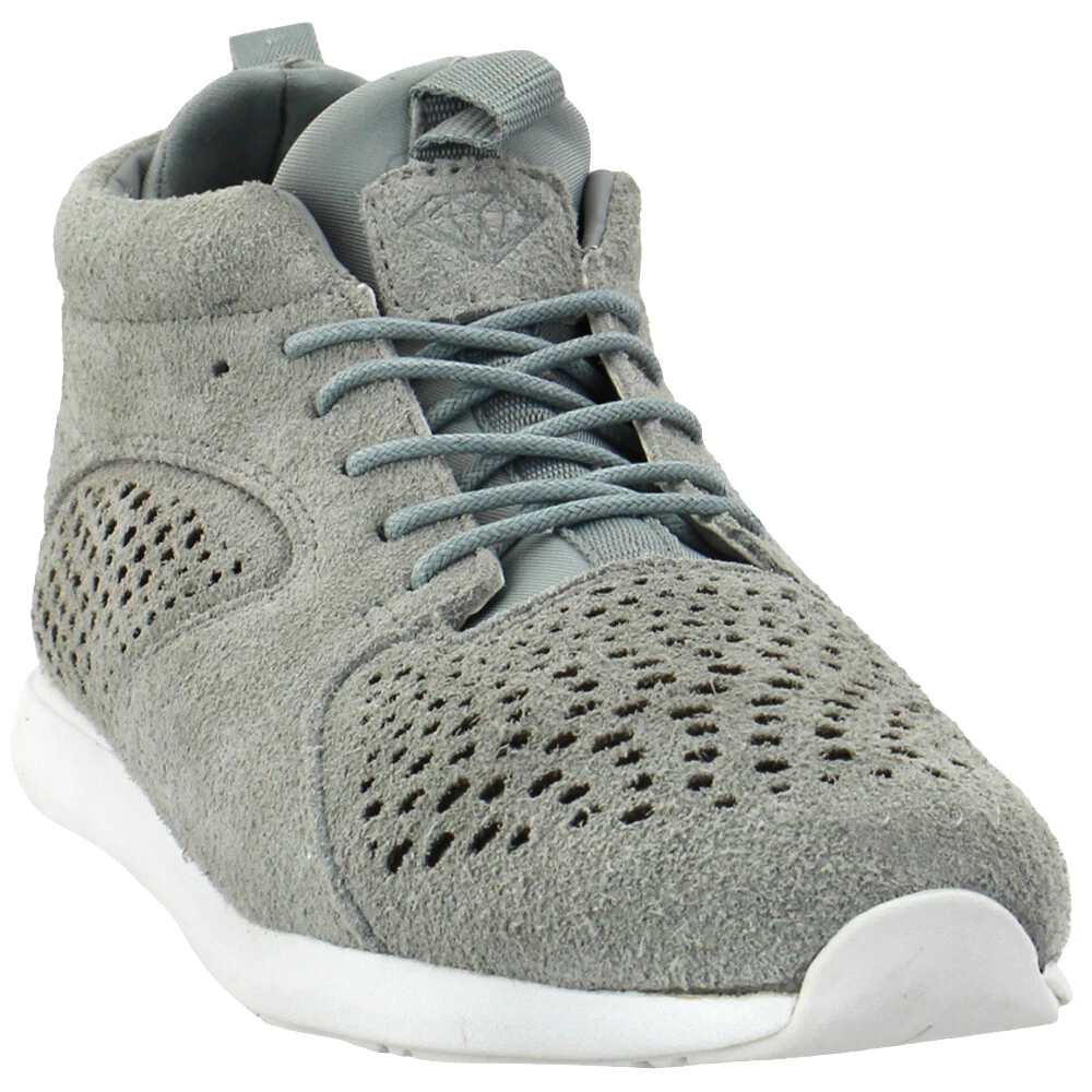 Closure: Lace Up Upper Material: Suede Width: D Theme: Sports Department: Men Occasion: Casual Shoe Width: D Style Code: A16DMFB50-GRY Brand: Diamond Supply Co. Style: Sneaker Features: Breathable Model: Diamond Supply Co. Quest Mid Lace Up Type: Athletic Customized: No Vintage: No Country/Region of Manufacture: Unknown Performance/Activity: Lace Up Feature: Breathable, Comfort Technology Signed: No Pattern: Solid Color: Grey Outsole Material: Rubber Heel Height: Flat (0 to 1/2 in.)