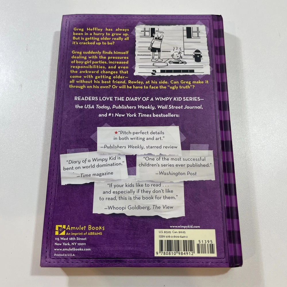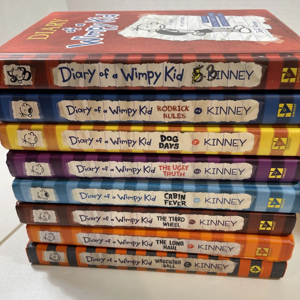 Get ready for a hilarious adventure with the Diary of a Wimpy Kid Collection Lot Of 7 Books & Movie Diary by Jeff Kinney. This series follows the misadventures of a middle school student named Greg Heffley and his best friend Rowley Jefferson. With a mix of action, adventure, and humor, this collection is perfect for young adults and readers of all ages. The books are in great condition with no ex-libris and are paperback format. They were published by Amulet Books in English in the 2010s and are part of the Diary of a Wimpy Kid series. The collection also includes a movie diary. Don't miss out on the chance to experience this incredible series! There is a little writing on the inside of the cover on a couple of the books but otherwise the books are very clean.
