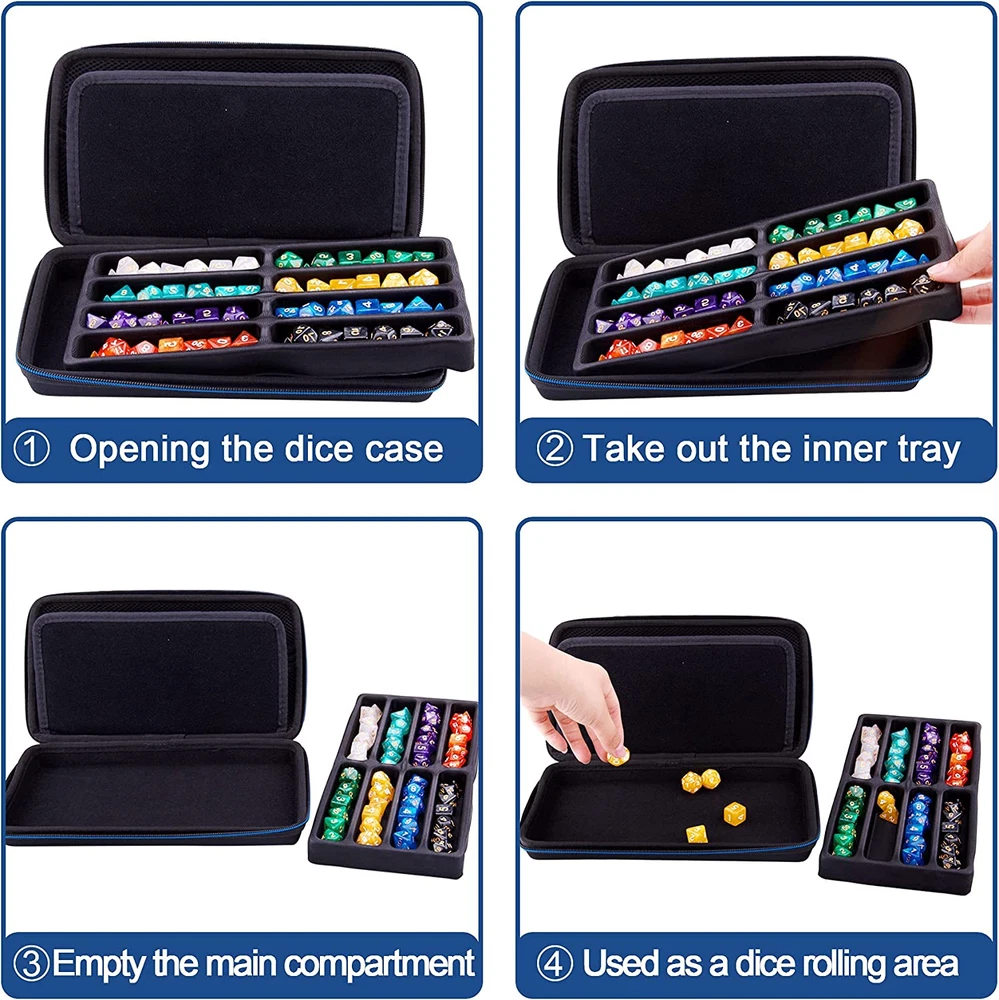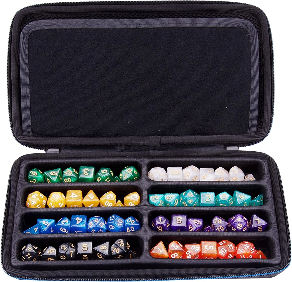 Store New Arrivals Add to Favorite View Feedback Contact Dice Case DND Dice Box Dice Storage Case Dice Organizer Holder with Handle Removable Slotted Tray Holds 8 Sets DND Dice for Dungeons & Dragons and Other RPG Table Games Description Item model number SA-21-160 Part Number SA-21-160 Style Modern Item Package Quantity 1 Color Blue Pattern Solid Product Dimensions 11 x 6 x 2.2 inches Material Ethylene Vinyl Acetate (EVA) Batteries Required? No Item Weight 12.3 ounces Batteries Included? No Storage and Rolling: The pre-slotted EVA dice case can hold up to 8 sets DND dice, detachable design allows the empty main compartment area to be used as a dice rolling tray. Multifunction Mesh Pocket: The dice storage case with a large mesh pocket can hold your Character Sheet in place and two little mesh pockets compatible with small accessories for Dungeons & Dragons and Other RPG Table Games. Portable Handle: SIQUK dnd dice case designed with a comfortable handle that you can carry the dice case to any scene easily. Premium Quality: SIQUK dice storage case made of hard EVA material with a layer of 900D Oxford cloth on the surface, durable and scratch resistant; exquisite fabric with excellent touch feel, fashion design and fine workmanship bring you a pleasant product experience. Warm Notice: Dice case only, the dices are not included. Product Description ABOUT US We offer the best prices around on high quality products. Our E-store includes media such as books, movies, music and games while offering electronics, toys, sporting apparel, clothing, tools, general home, garden items and more. SHIPPING We are always working hard to ensure your package arrives as soon as possible. Please understand that some factors like weather, high postal traffic, and the performance of shipping companies are outside of our control. We offer free shipping to the lower 48 states and ship within 2 business days of payment, usually sooner. We do not accept P.O. Boxes. Please provide a physical address. RETURNS We offer a 30-Day Return Policy on items which you are not completely satisfied with. You have the option for a full-refund or an exchange of the item. No returns are available on items shipped outside of the USA. PAYMENT We accept PayPal. CONTACT US This page content is yet to come Please ad us to your favorite seller and visit again later Thank You CUSTOMER SATISFACTION We try our very best to make sure every customer is completely satisfied. If there's a problem, message us! We're happy to help.