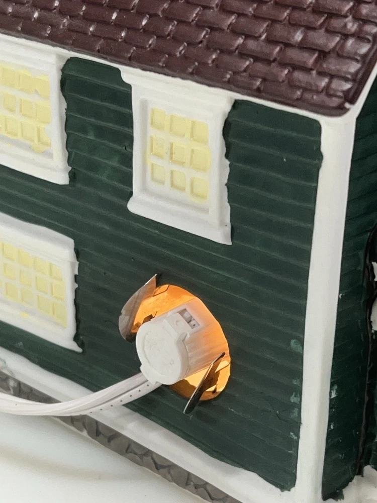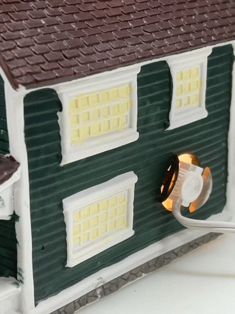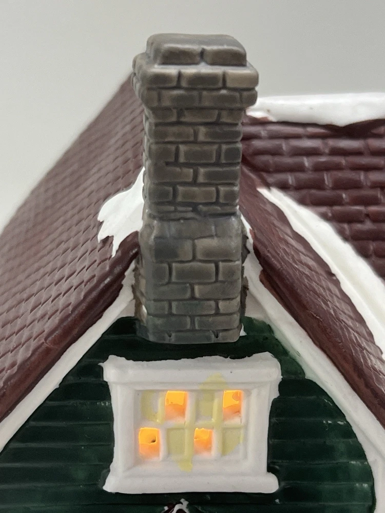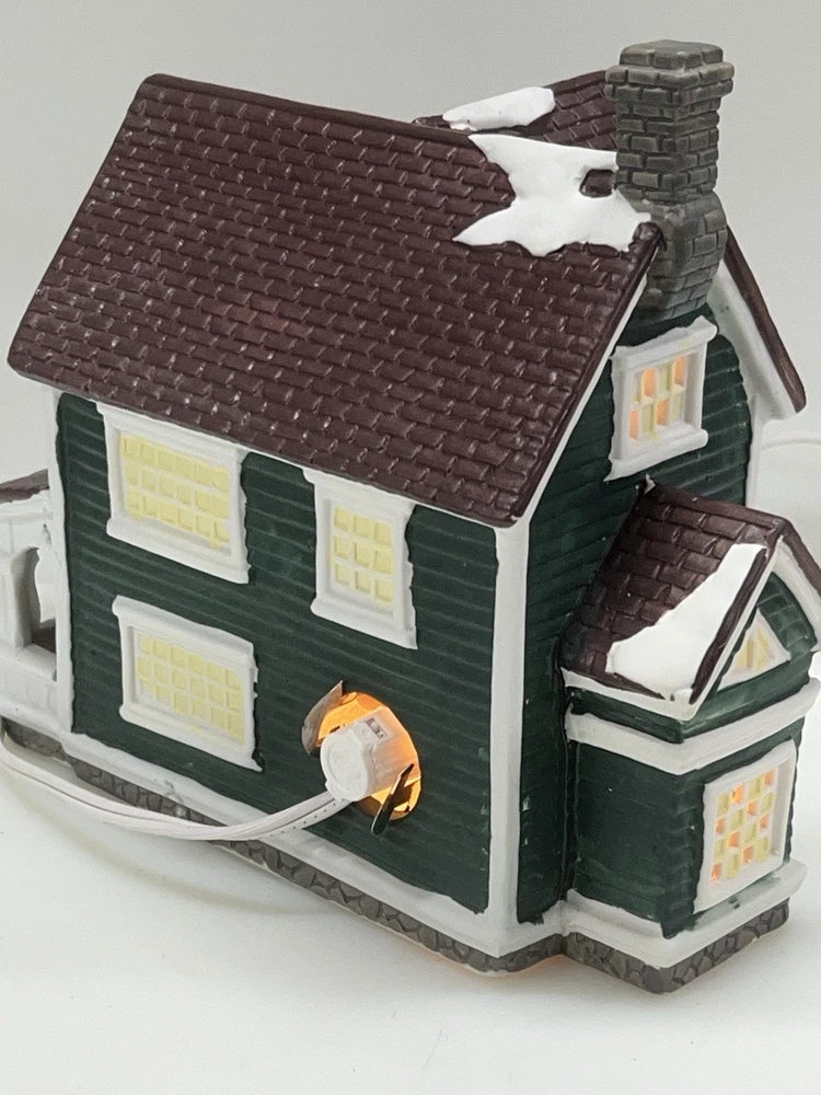 This Dickens Collectables Victorian Series 266-6220 Lighted House is a charming addition to any Christmas Village display. The porcelain house features a whimsical Victorian home with multicolor paint finish. The lighted house is suitable for any room and is perfect for creating a festive and seasonal atmosphere. The house measures 8 inches in length, 7-1/2 inches in height, and 5 inches in width, making it a medium-sized piece. The house was manufactured in 1994 and is in mint condition, both the house and the box. This collectibles item is a great gift for adults who love Dickens, Christmas, and seasonal villages. Absolutely incredible pristine condition. Includes all original packaging including cord & light .