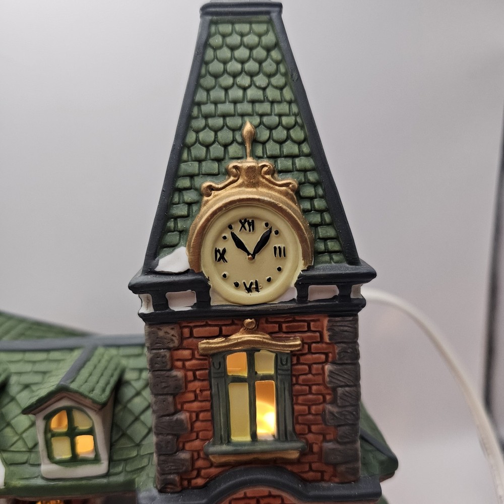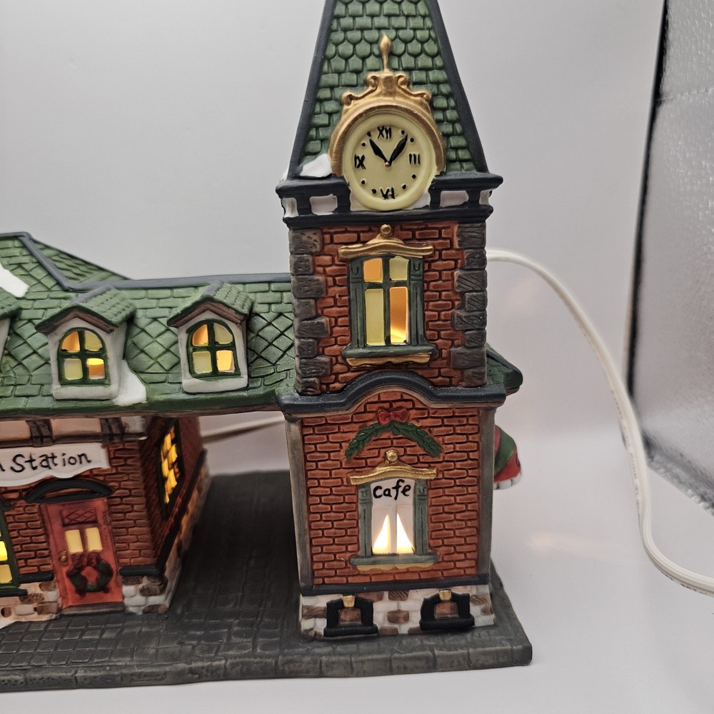 This beautiful collectible from Dickens Collectibles features a Victorian series lighted train station and cafe. Made from porcelain, it was manufactured in 1998 and is suitable for indoor use in areas such as the cloakroom, office, bedroom, living room, lounge, or dining room. The piece is approximately 9" in length, 7" in height, and 4 1/2" in width and comes in a box for safekeeping. The train station and cafe are beautifully decorated with multicolors and features a train subject, making it perfect for Christmas and seasonal decor. This original piece is signed and part of the Victorian Series collection. Add this unique and timeless piece to your collection today! Original box Mint condition