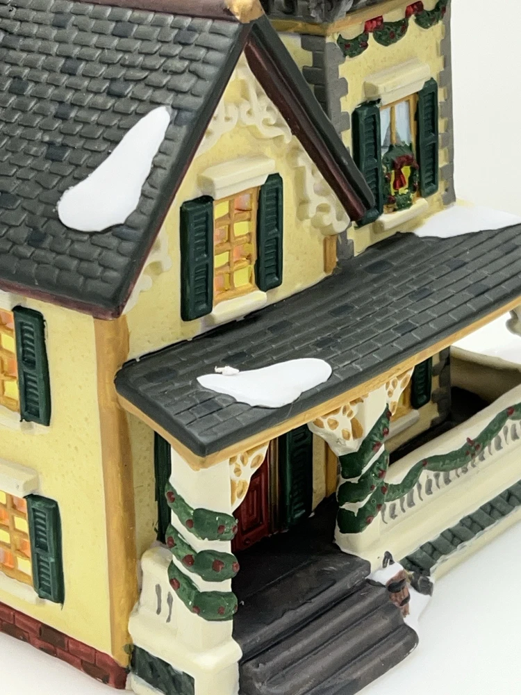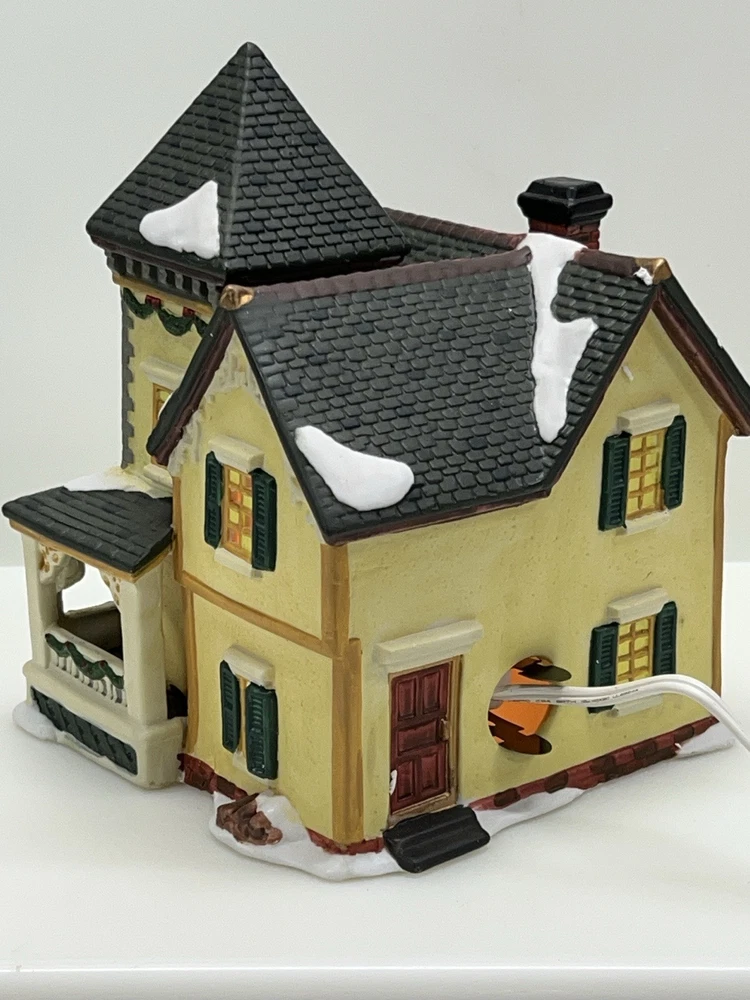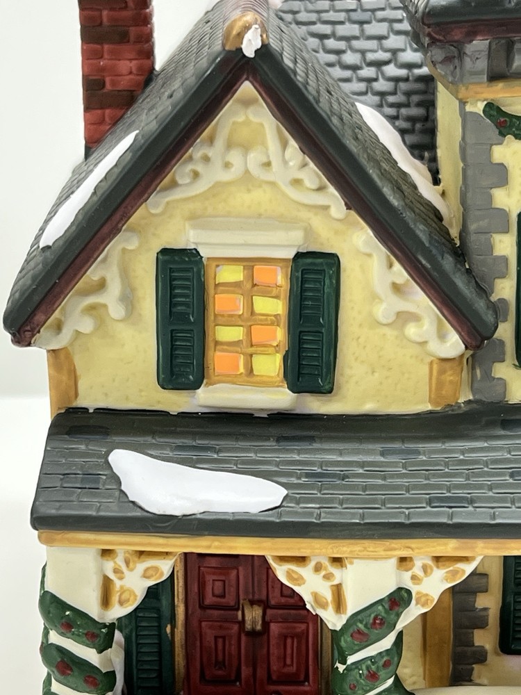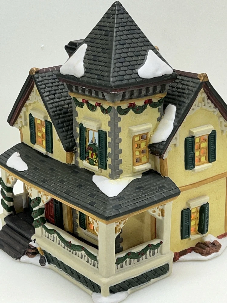 This Dickens Collectables Victorian Series Porcelain Lighted House is a medium-sized Victorian-style house with illuminated features. It is part of the Dickens Village collection, suitable for seasonal villages . The hand-painted house is a licensed reproduction from 1998, featuring a multicolor Victorian design. It comes boxed and is a retired item in mint condition. Perfect pristine condition! Comes with all original packaging including cord & light