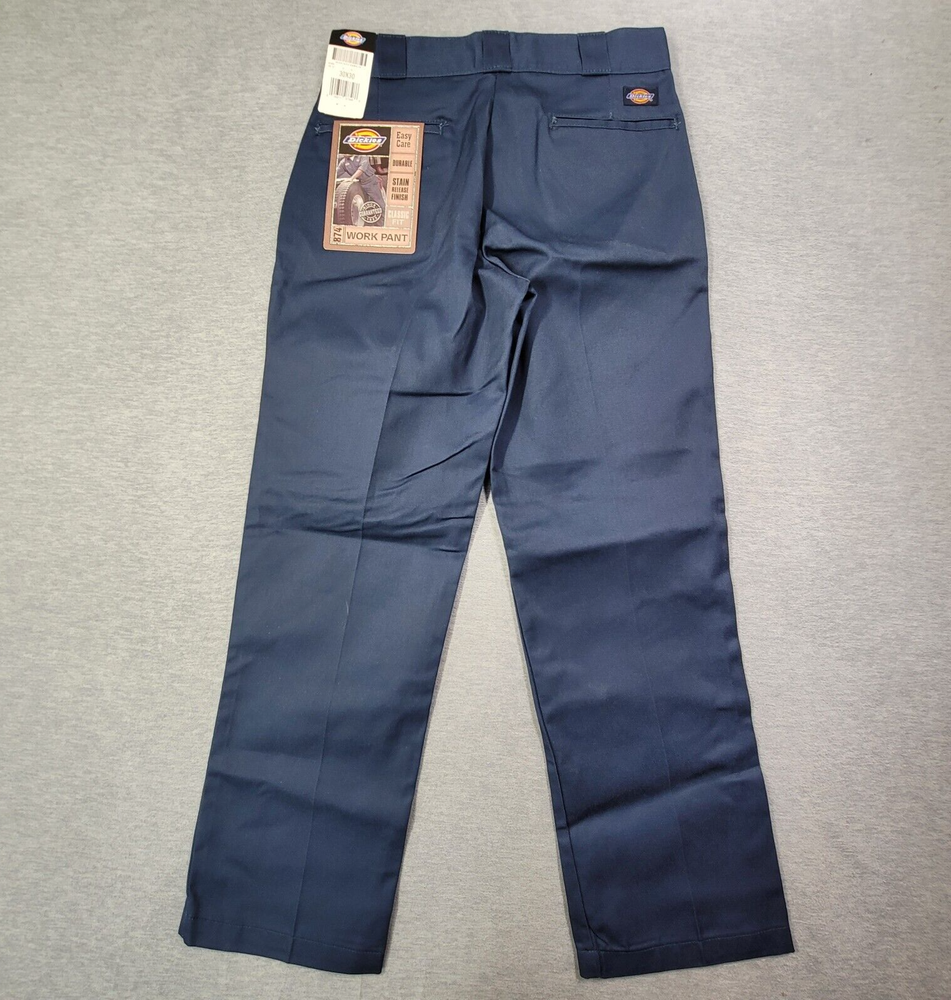 Crafted for versatility and durability, these Dickies 874 Work Pants in a classic navy blue offer a timeless addition to any wardrobe. The size 30x30 pants cater to a regular fit with a straight leg style, ensuring comfort and a sharp look for casual and business settings alike. The easy-care fabric blend of cotton and polyester means these dress pants are as practical as they are stylish,Designed to maintain a neat appearance with minimal effort. With a mid-rise waist and a flat front, the pants provide a flattering silhouette that complements a variety of body types. The solid pattern keeps the focus on the thoughtful design, which includes a convenient zip closure and the reliability of a brand known for quality workwear. Whether for everyday wear or specific work environments, these pants are a dependable choice for any occasion that calls for a polished, professional appearance.