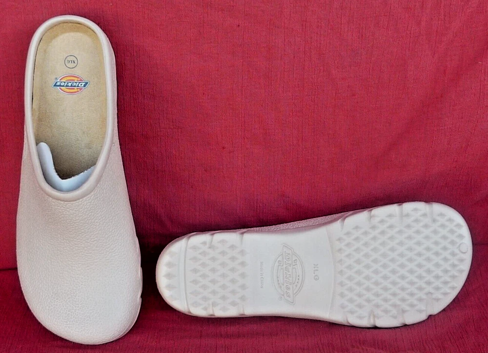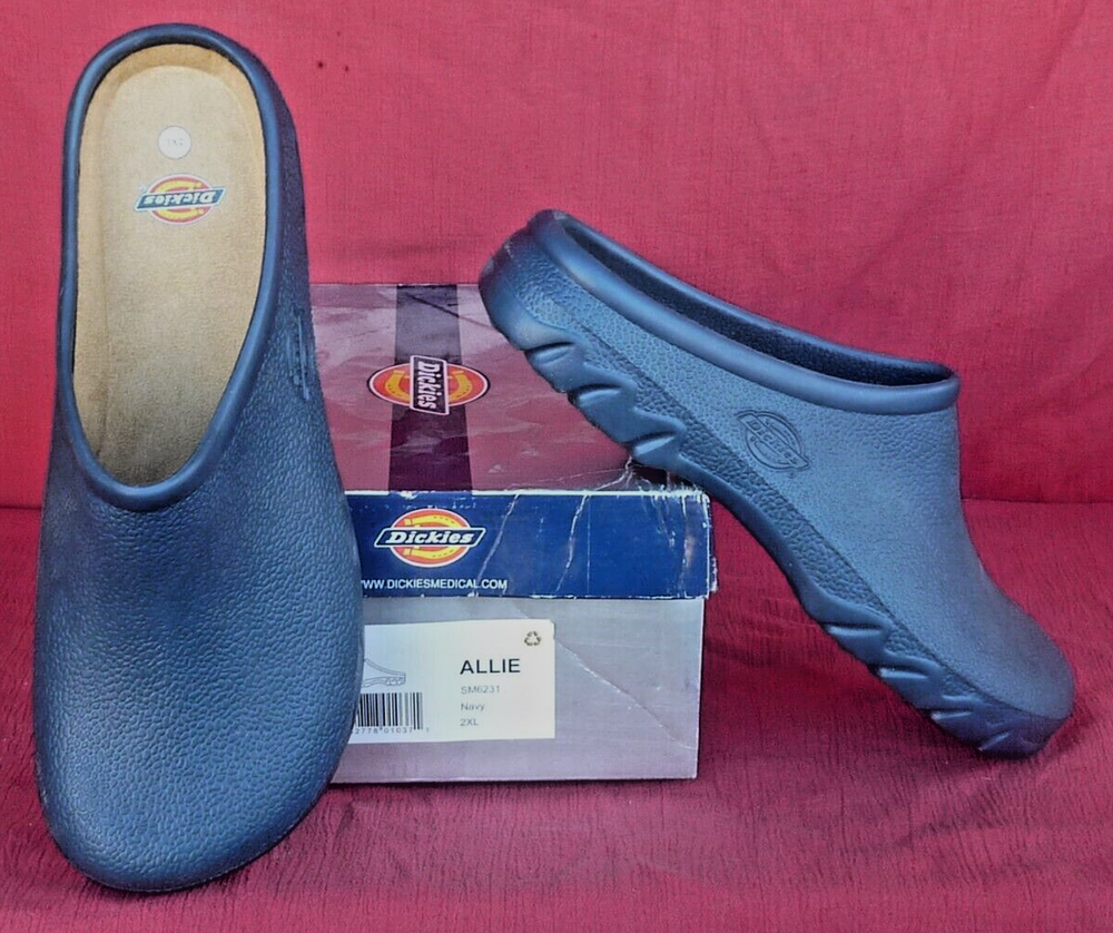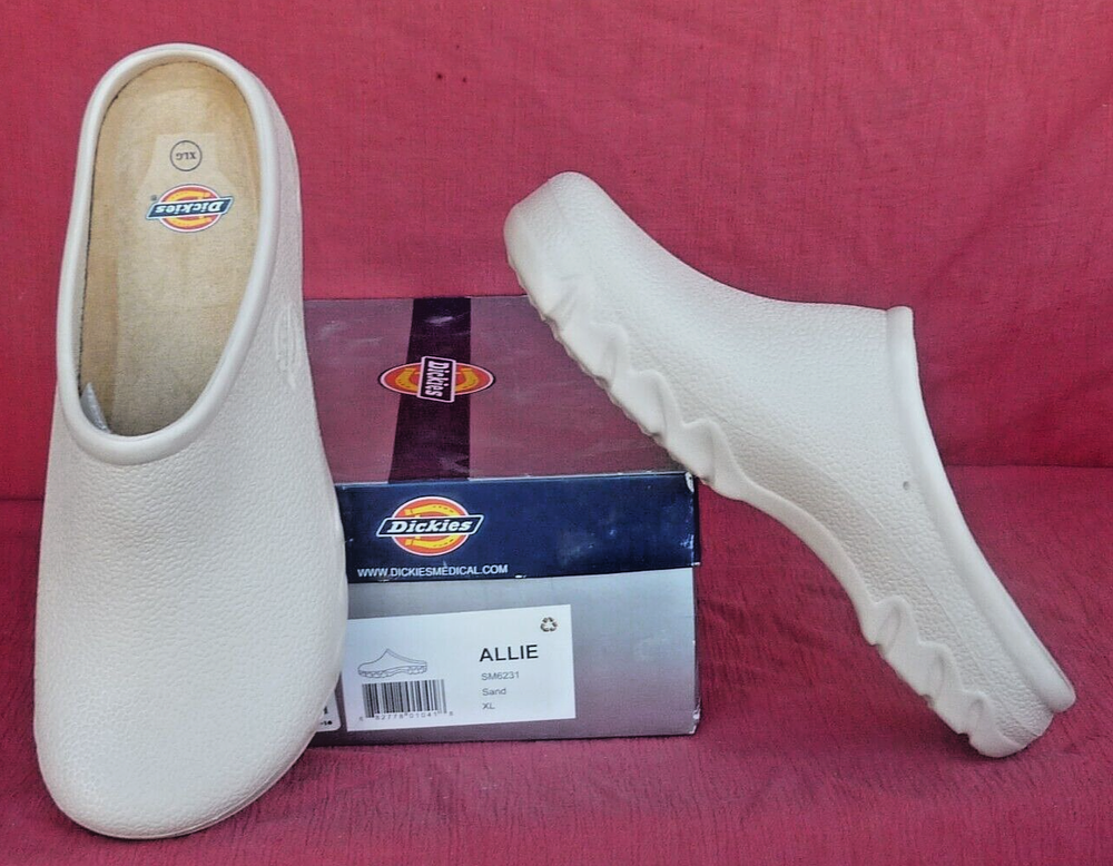 For sale is a pair of Dickies ALLIE style slip on women's nurse clogs. Crafted for comfort and style, these lightweight clog style nursing shoes offer a classic look that complements any nursing attire. The durable lightweight construction ensures these shoes are a reliable choice for those long shifts. NOTE on Sizes: clog size XL is a women's shoe size 9-10 and clog size XXL is a women's shoe size 10.5-12. These high quality shoes are in new condition and come in their original box.