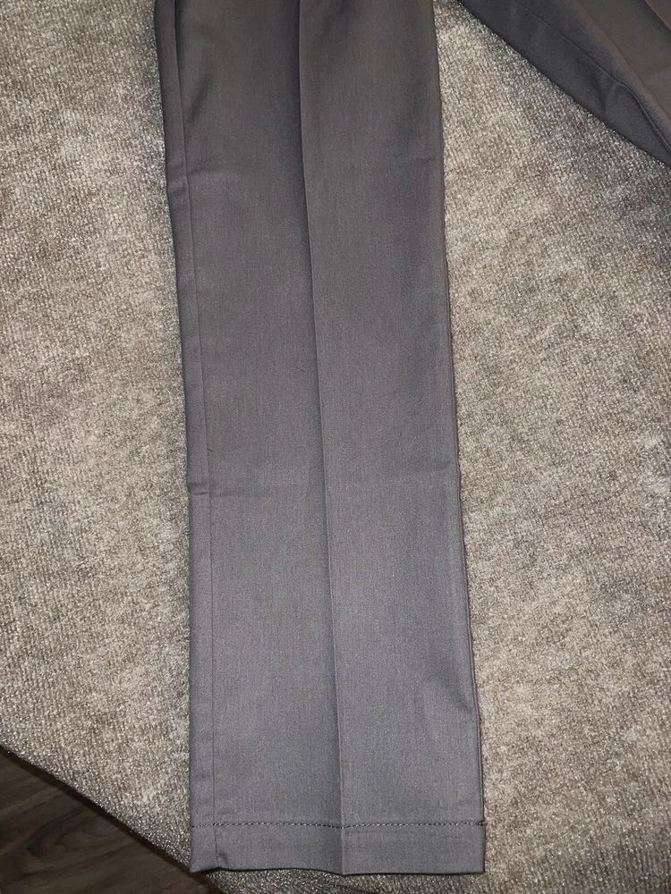 Introducing the Dickies Flex Twill Work Pants in a stylish gray color and slim fit design. These pants are perfect for a variety of occasions including travel, casual wear, workwear, and business attire. The pants feature a zip and button closure, 5-pocket design with slash and coin pockets, and a mid-rise fit. Made with a combination of polyester and cotton materials and a canvas fabric type, these pants are both lightweight and comfortable. The tapered leg design and slimming features provide a modern look while the accents of buttons and zippers add a touch of style. These pants are available in size 28 with a 30 inch inseam and are suitable for all seasons including winter, summer, fall, and spring.