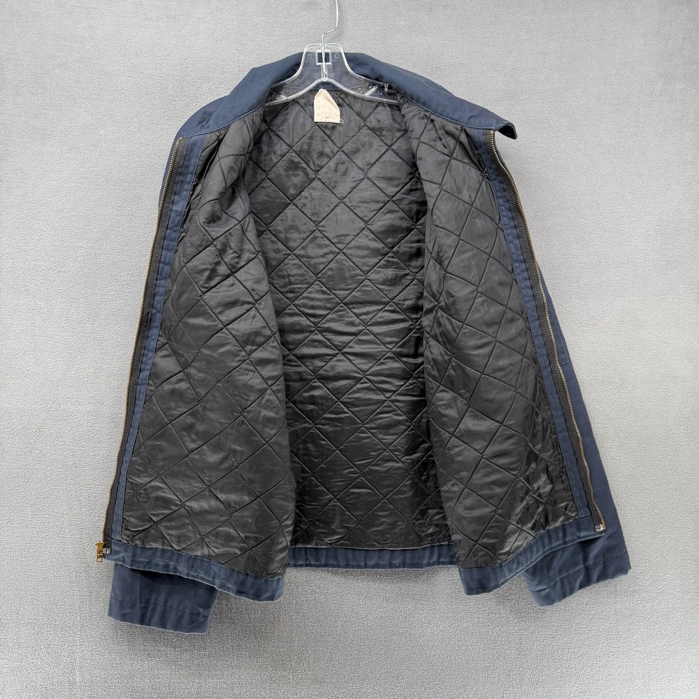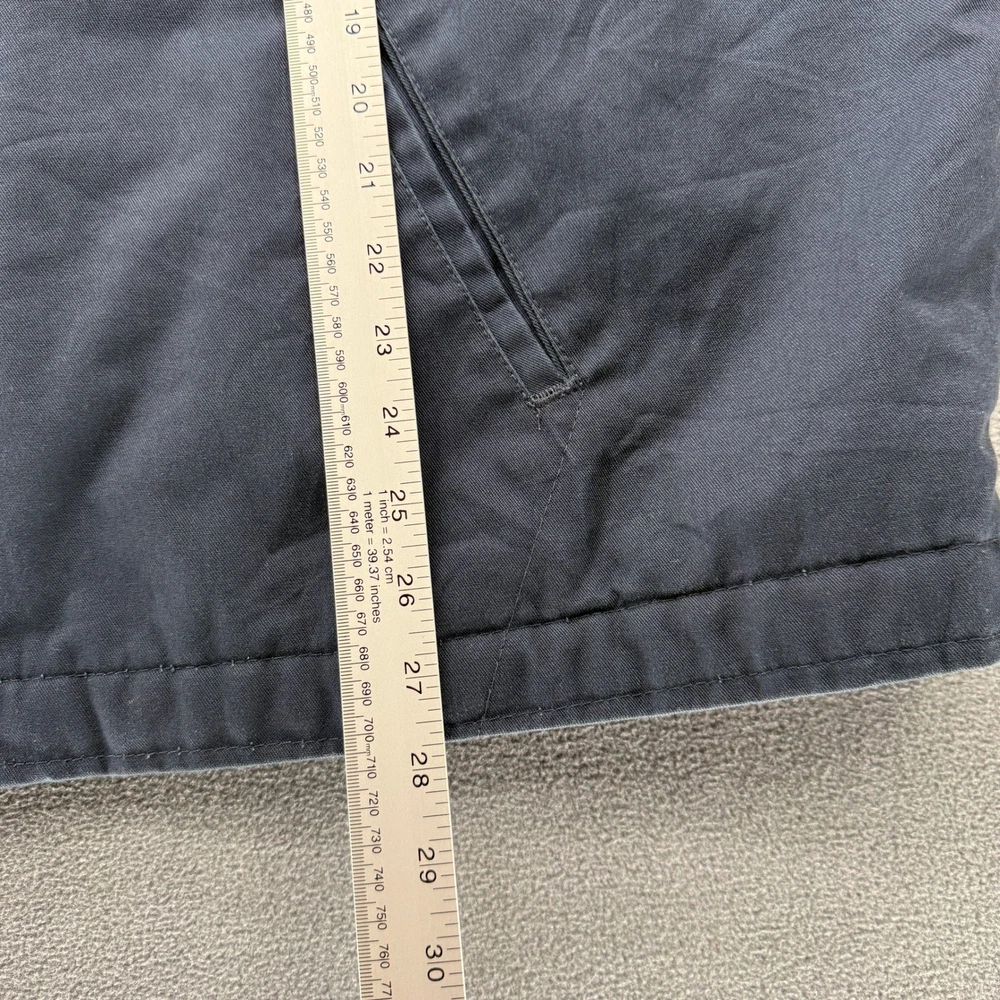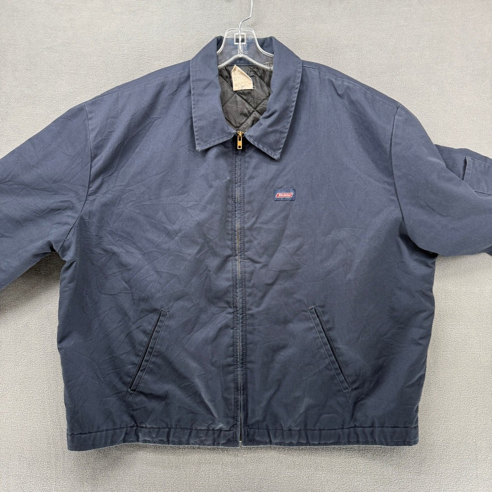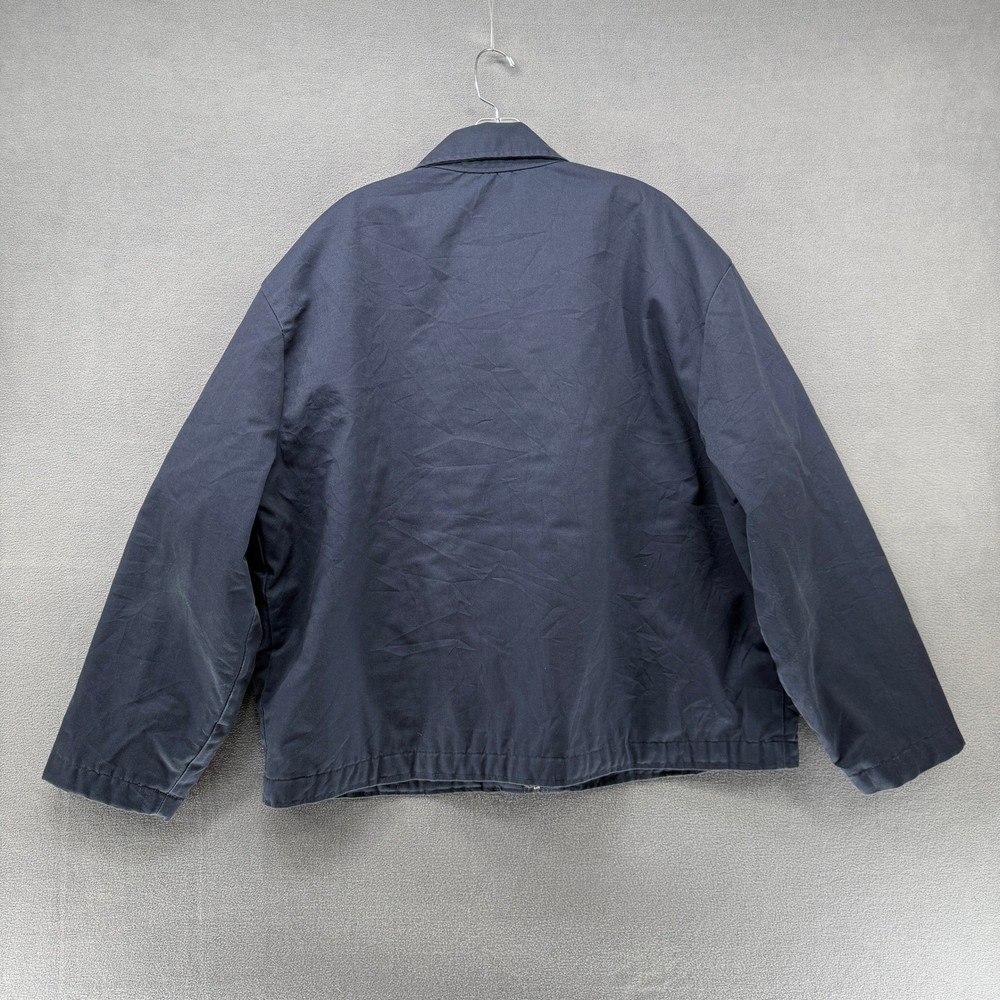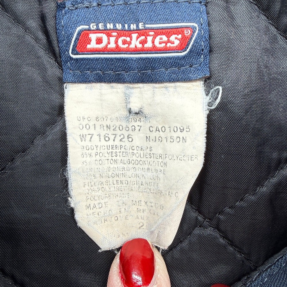 Dickies Eisenhower jacket in navy blue features a durable twill shell with a quilted nylon lining for added warmth. This classic workwear piece includes a full-zip front, a pointed collar, and two front welt pockets, along with a convenient pencil pocket on the left sleeve. The adjustable waist tabs and brass zipper provide a functional, rugged look suitable for both work and casual wear. Measurements: - Chest (pit to pit): 28 in - Length (shoulder to hem): 27 in Type: Jacket Style: Quilted Outer Shell Material: Cotton Blend Department: Men Closure: Zip Fabric Type: Canvas Insulation Material: Polyester Occasion: Workwear, Casual Accents: Logo, Quilted, Zipper Collar Style: Point Country of Origin: Mexico Features: Full Zip, Insulated, Lined, Pockets, Collared Fit: Classic Keywords: Dickies, Eisenhower Jacket, Workwear, Navy Blue Jacket, Quilted Lining, Twill JacketFull Zip, Streetwear, Utility Jacket, Carhartt Alternative, Vintage Style, Mens Outerwear, Casual Jacket Follow us for great deals! -- New items listed daily! -- We ship daily!
