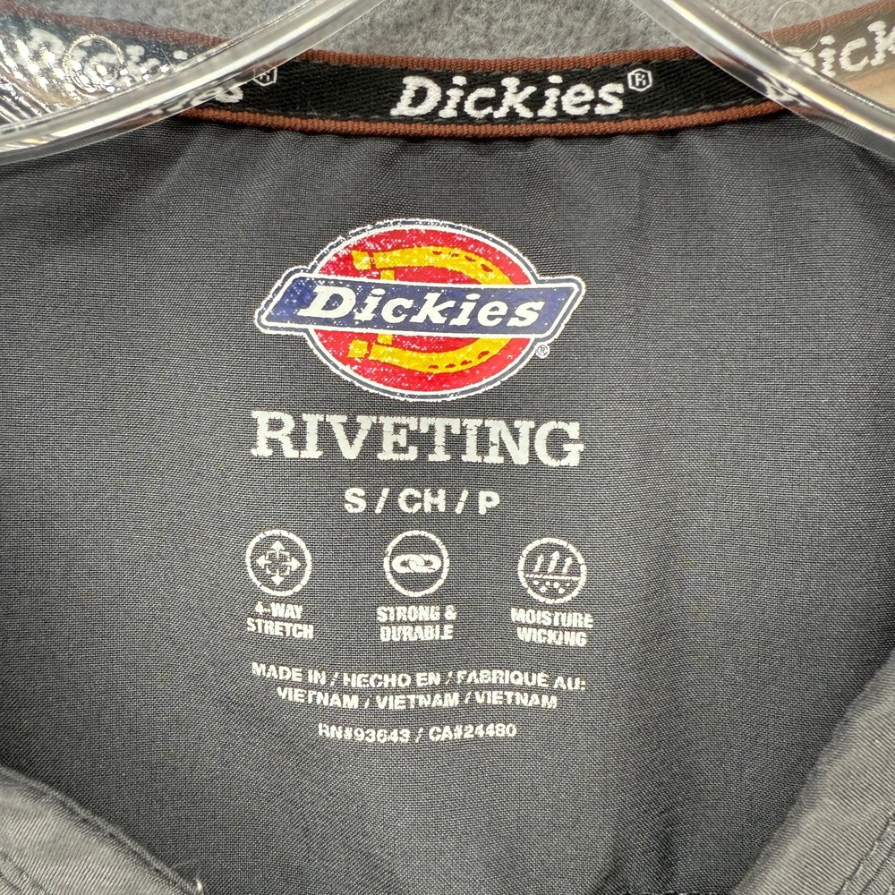 Dickies Riveting Scrub Top Womens Small Gray 4-Way Stretch Moisture Wicking Logo Buy More and Save! Combined shipping for US customers. $1.99 shipping for each additional item. Combined shipping will automatically calculate when you use the shopping cart. Fast Shipping! We ship daily. 30 Day Return Policy. Images: We strive to take photos with accurate color. Color may vary slightly based on different monitor settings.