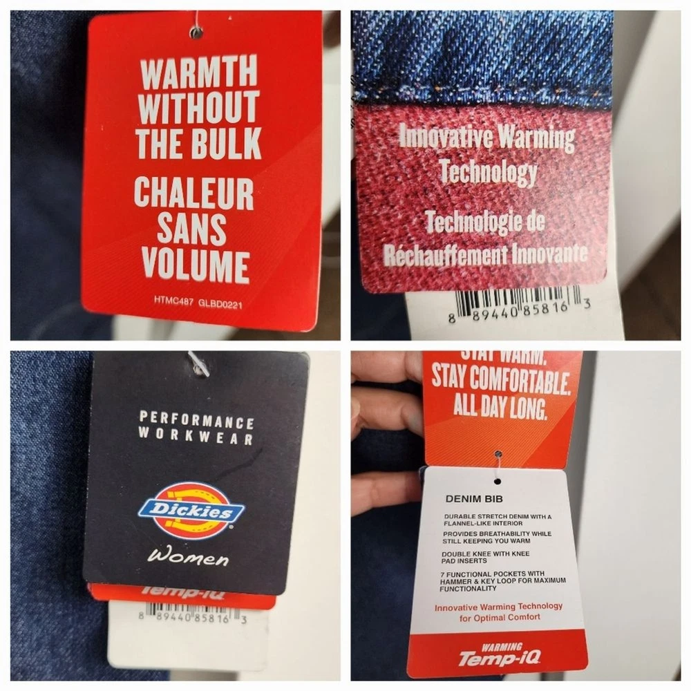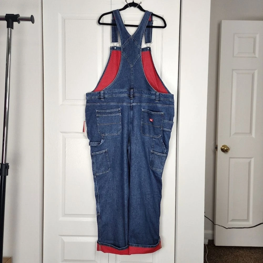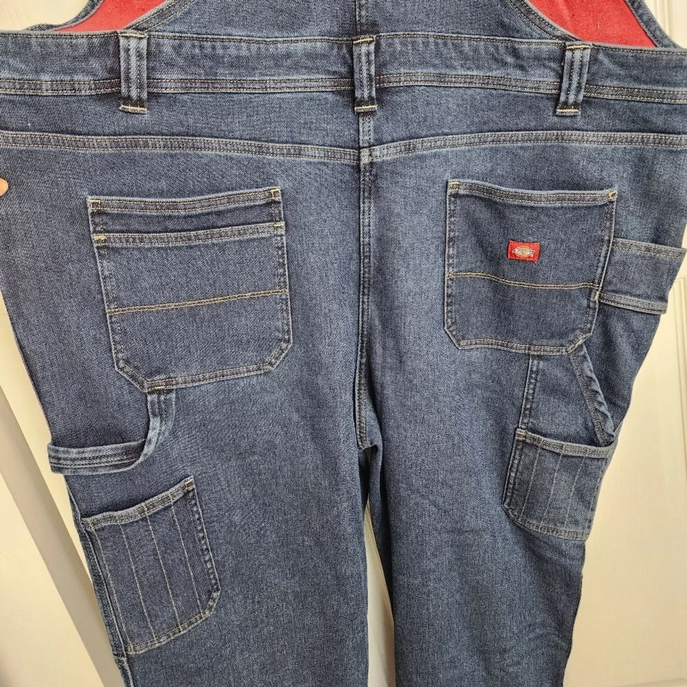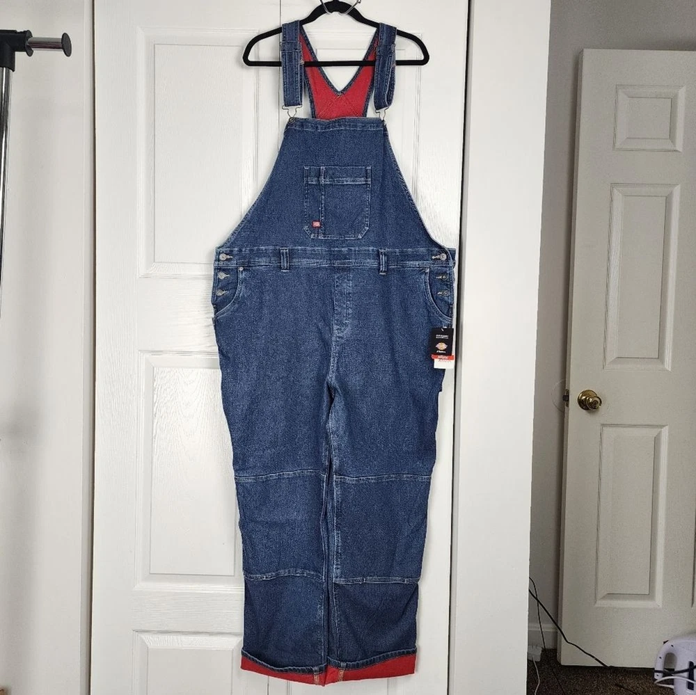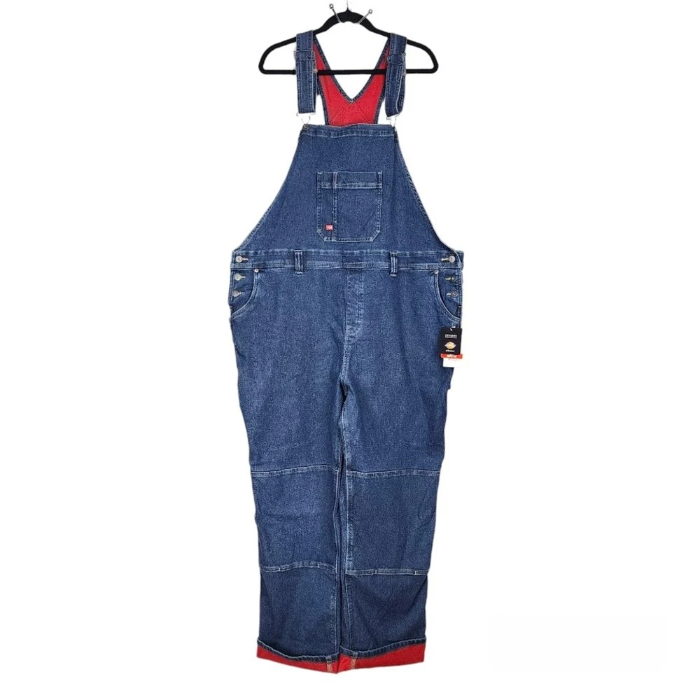 Dickies Women Fleece Lined Denim Bib Overall Warming Temp Iq Carpenter - New With Tag - Size 2XL, approx. measurements in pics - Bonded Fleece Lining - Pockets - 73% Cotton, 25% Polyester, 1% spandex Shipping Same or Next Business Day! Thanks for watching! winter, fall, warm, Cozy, Fleece, Lined, workwear, Outwear, casual, outdoor, outdoor jobs, comfy, boho, bohemian, hippie, Fleece lining, cotton blend, denim This Dickies Women's Denim Bib Overall is perfect for those chilly days. The fleece lining provides extra warmth, making it a great choice for plus-sized women. The blue color and wide-leg style add a touch of fashion to the overall design. Made from high-quality denim fabric, this jean is durable and long-lasting. It comes with a variety of features, including a carpenter's apron and pockets. Ideal for women who want to stay warm and stylish, this Dickies denim bib overall is a must-have addition to their wardrobe.