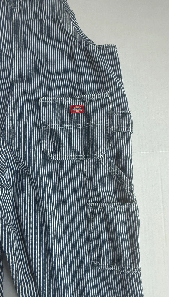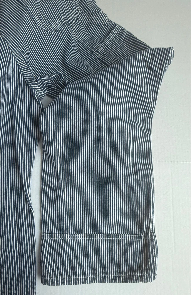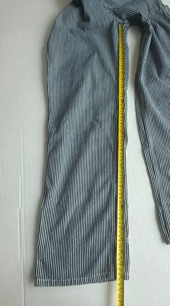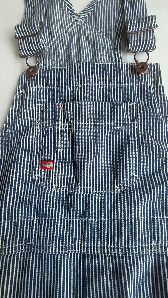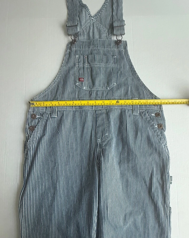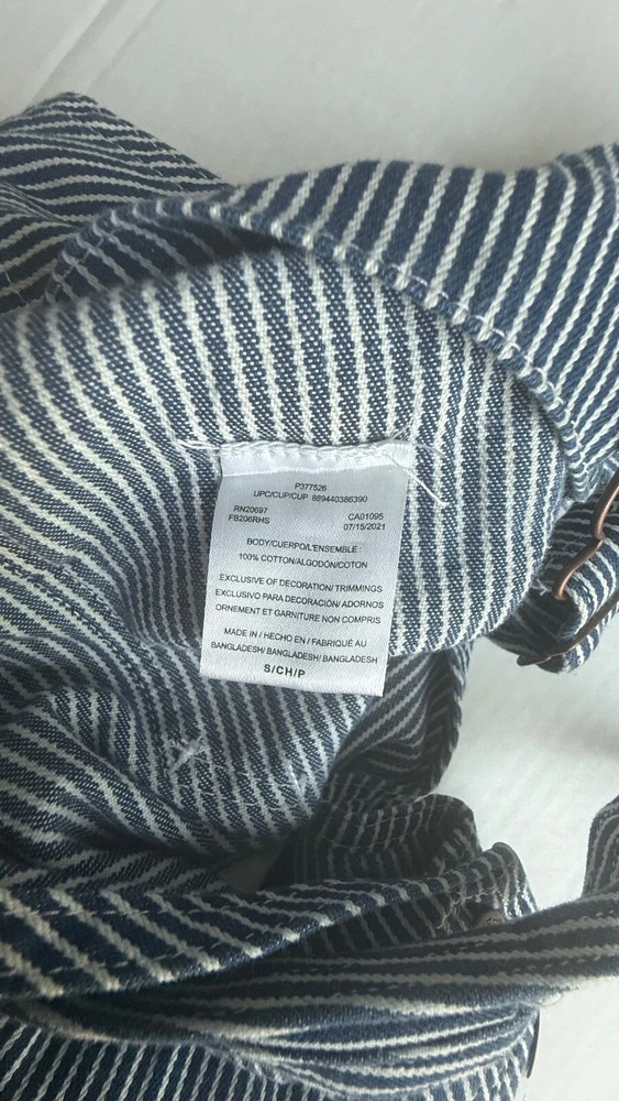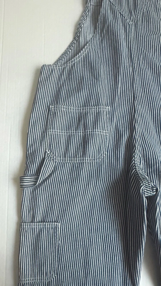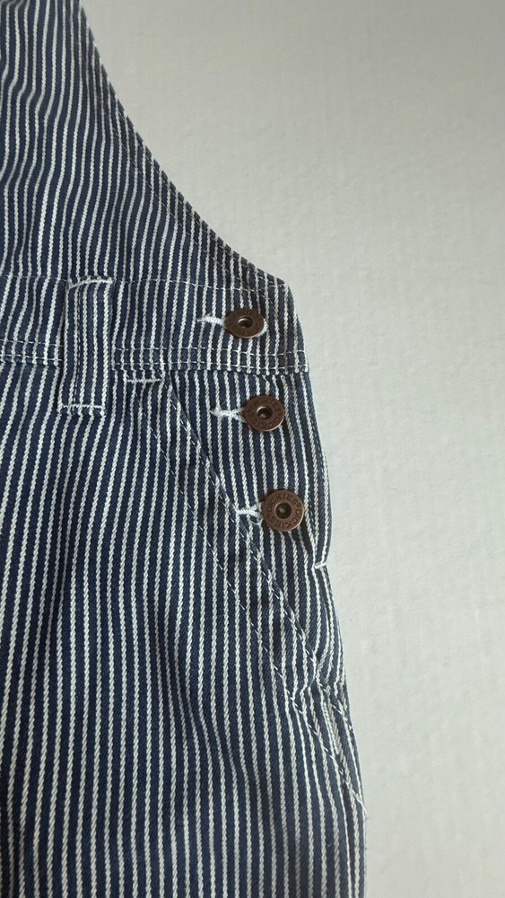 *This is not a new item and does not ship with its original tags. Good condition Size small Front bib Blue white hickory stripe 100% cotton