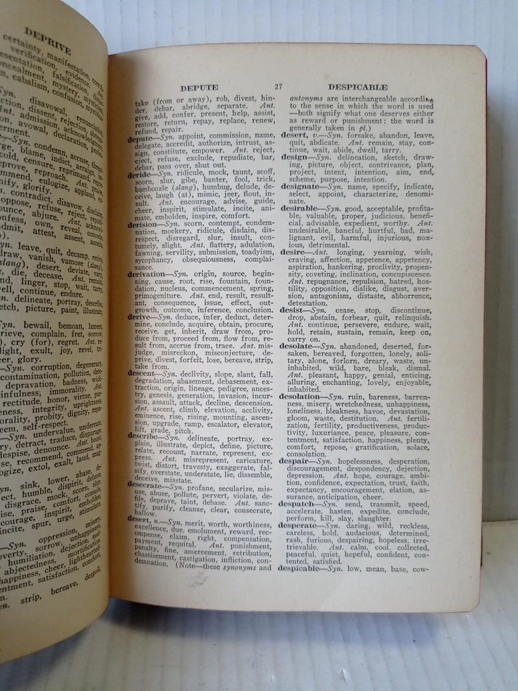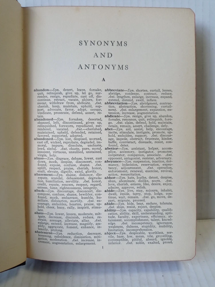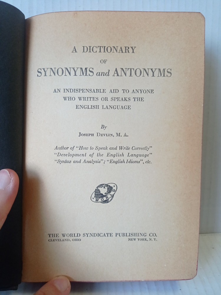 The "Dictionary of Synonyms and Antonyms" by Joseph Devlin, published in 1938 by The World Syndicate, is a vintage hardcover book that serves as a valuable reference for English speakers. This original printing from 1937 offers a comprehensive collection of synonyms and antonyms, making it a useful tool for expanding vocabulary and enhancing language skills. With its focus on North American English, this book is a valuable resource for students, writers, and anyone looking to improve their language proficiency.