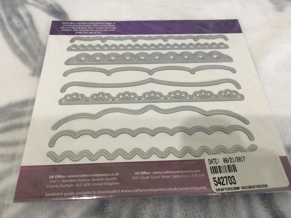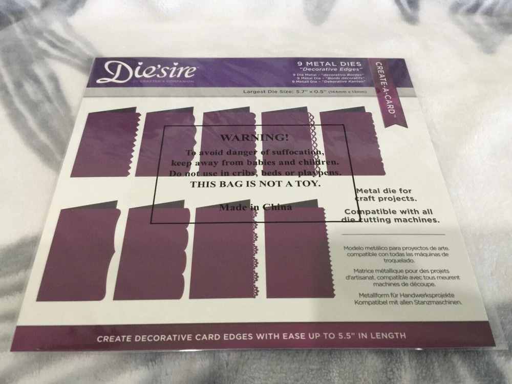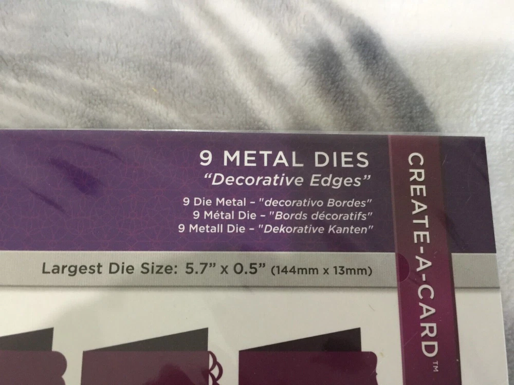 Die'Sire By Crafters Companion - Create A Card Decorative Edges Set 1 - 9 Dies New C91 RETURN POLICY: Returns will only be accepted if the item is in brand new condition with the original packaging that it was sent to you. If the item has been used it will not be accepted as a return. Returns will only be accepted if the item is unopened. There will be a 20% restocking fee on all returns. COMBINED SHIPPING: WE DO COMBINE SHIPPING IF YOU PUT THE ITEMS INTO THE CART IT WILL AUTOMATICALLY COMBINE AND DISCOUNT THE SHIPPING FOR YOU. To return an item, you must contact us within 30 days of receiving the merchandise. Please inspect your merchandise the moment it arrives. We will issue you a RA (Return Authorization) number and provide instructions for the return. Once the RA number is issued, your package must be post-marked within 5 days of the return authorization date. If you exceed the above specified time frame (ie. Did not contact us 30 days after receiving the merchandise or packages was not post-marked within 5 days of RA authorization date) or we receive an unauthorized refused package or an undeliverable package, you will be subjected to a 20% restocking fee. The restocking fee is based on the merchandise total amount (shipping fee not included). Items that are returned without a RA number are not eligible for a refund. Please note that refunds are given for the cost of the merchandise (merchandise plus tax) only. Shipping charges are non-refundable for returns.