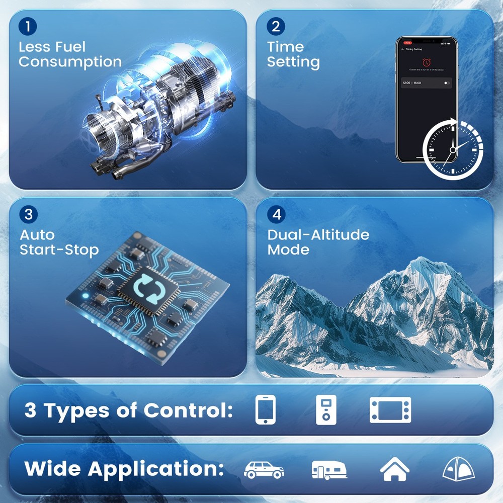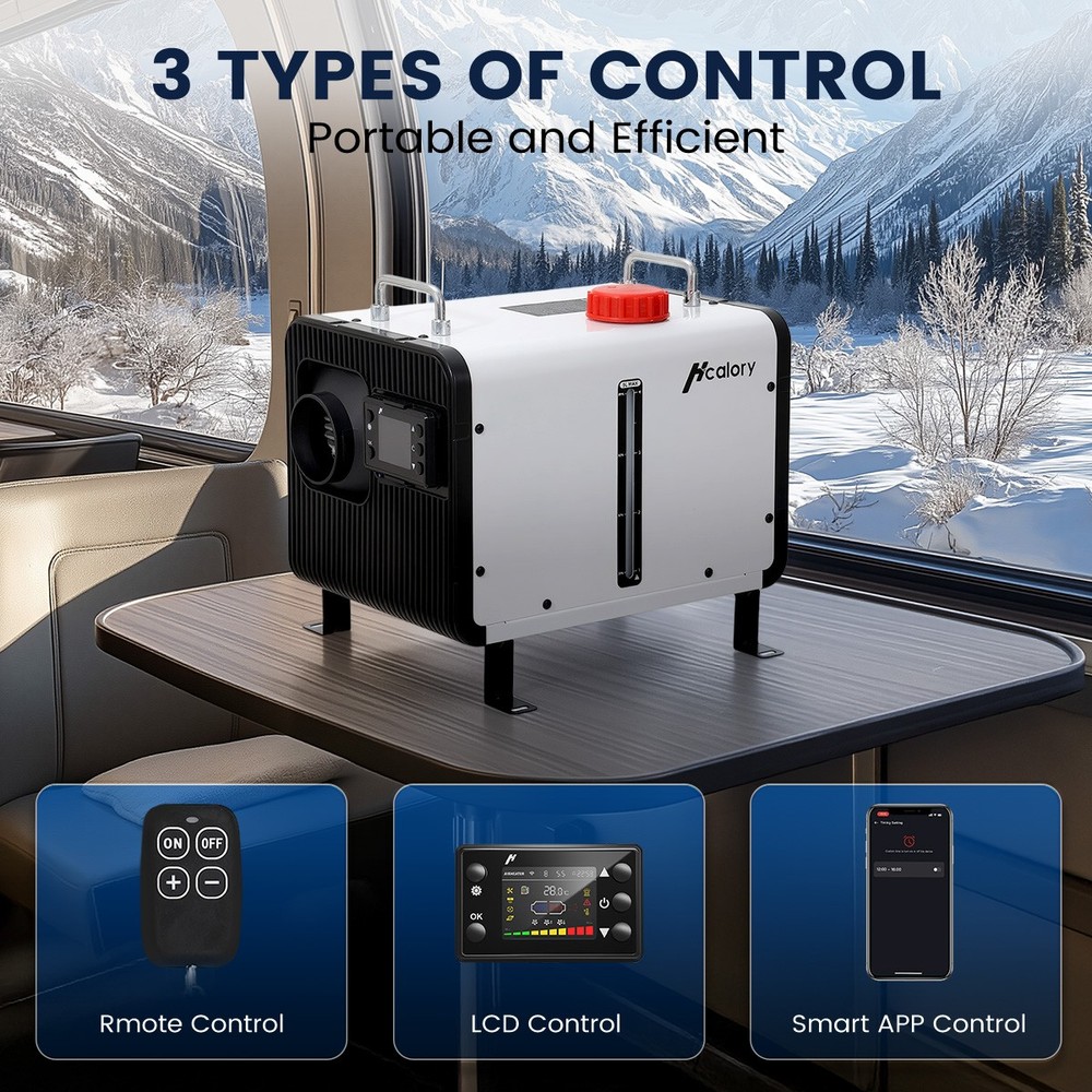 Similar Items Description Features: 【RAPID HEATING】Aluminum diesel heater allow you to feel the heat in less than 1 second. Our heaters put out 5500-18000 BTU's of heat, heating 20-27 square meters in 10 minutes and getting warm fast. 【ENERGY SAVING】The fuel consumption of diesel heater is 0.15 L/h - 0.44 L/h, compared with the heater with fuel consumption of 0.28 L/h - 0.65 L/h, the range has been greatly improved.5L large-capacity tank can be heated continuously for 10 hours, and the driving time is 12-33 hours, ensuring continuous heating. 【WIDE APPLICATION AREA】Our diesel heater 12V is configured with highland mode, 5500M above sea level, which can be automatically adjusted to different altitudes and warms up quickly. 12v & 24V portable diesel air heater is suitable for any use in RVs, carpentry houses, camping, vans and so on. 【Comprehensive Coverage of Different Voltages】 Equipped with 2 wiring options: 110V US PLUG Adapter and DC12V/24V plug external wiring, plug-and-play design, allowing you to flexibly switch wiring according to location/vehicle, suitable for use in US standard sockets, DV12/24V vehicle batteries, outdoor storage batteries 【3 CONTROL METHODS】Our heater has three control methods: bluetooth control, remote control and LCD panel control; smart app also provides timer function, thermostat control, temperature adjustment, voice announcement, etc., which provides you with continuous heating and saves time. 【Bluetooth connection】Download the "QR code" App(From the instruction manual), available for iOS and Android devices, which enables user to remotely control the heater via Bluetooth 【SAFETY PROTECTIONS】The heater's main board provides short circuit protection, reverse connection protection, overvoltage protection, overheat protection (≥270 °C/518 °F) and more. It allows you to use it safely in a variety of environments, such as cars, RVs, boats and indoors. Specifications: Name Diesel air heater all in one Material metal + plastic Color White Voltage 12V/24V& 110V Power 5KW-8KW Fuel Diesel Complete burn rate 100% Consumption 0.15 - 0.44 L/h Remote controlled effective distance 50m-100m Working temperature -40 °c ~ 50 °c Package Included: 1 x Air Heater Host with LCD Display 1 x LCD Remote control 1 x Air Outlet pipe 1 x Exhaust pipe 1 x Filter 1x Silencer 1x L-type exhaust pipe bracket 4 x Connection holder 1 set Fixture Accessories set 1 x AC power adapter(US Plug) 1 x DC battery power cable 1 X switch extension cord 1 x User manual Note: 1. Please allow 0.5-1cm differences due to manual measurement. 2. Due to the light and screen difference, the item's color may be slightly different from the pictures. #divSKUDetail2 Detail Image #divImageDetail Payment 1.We accept Payoneer、PayPal、Mastercard、VISA、Google Pay 、American Express etc. 2.All major credit cards are accepted through secure payment processor. 3.Payment must be received within 7 business days of auction closing. 4.We ship to your eBay or payment address. Please make sure your eBay and payment address is correct before you pay. Shipping 1.We ship to your eBay or Paypal address. Please make sure your eBay and Paypal address is correct before you pay. 2.Items will be shipped within 1-3 business day when we received payment. 3.Delivery time depends on destination and other factors;