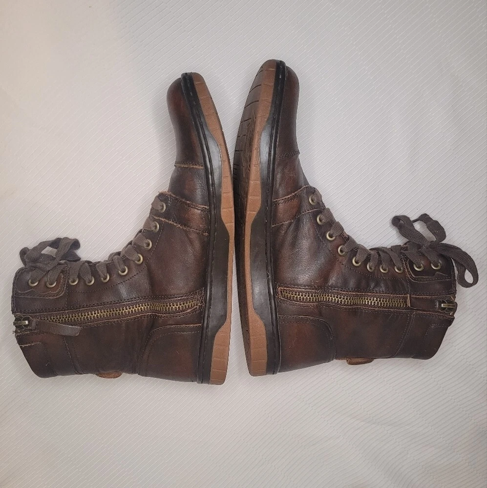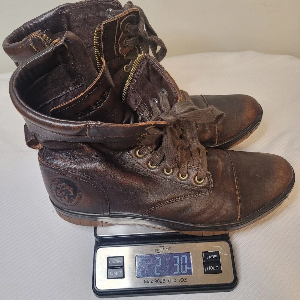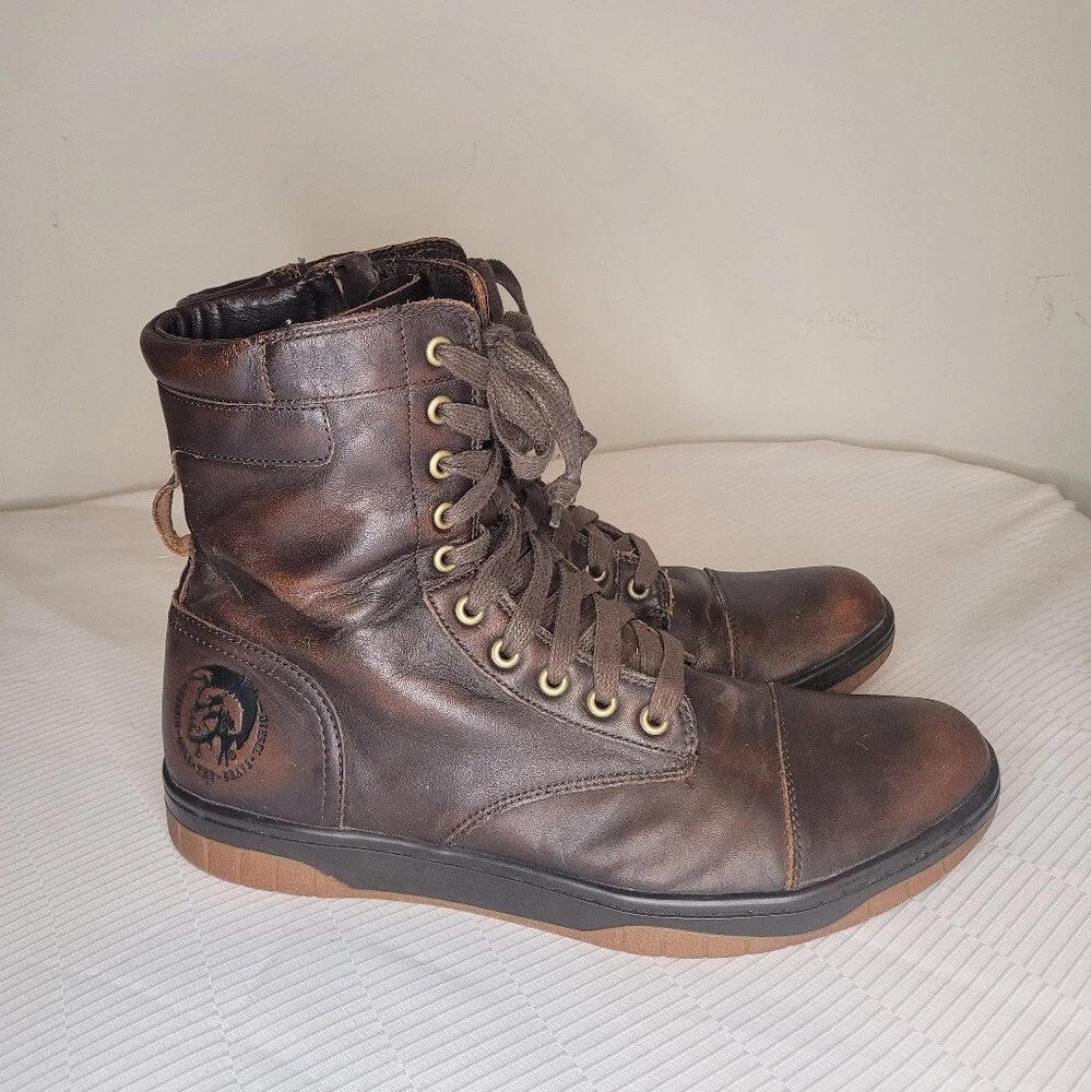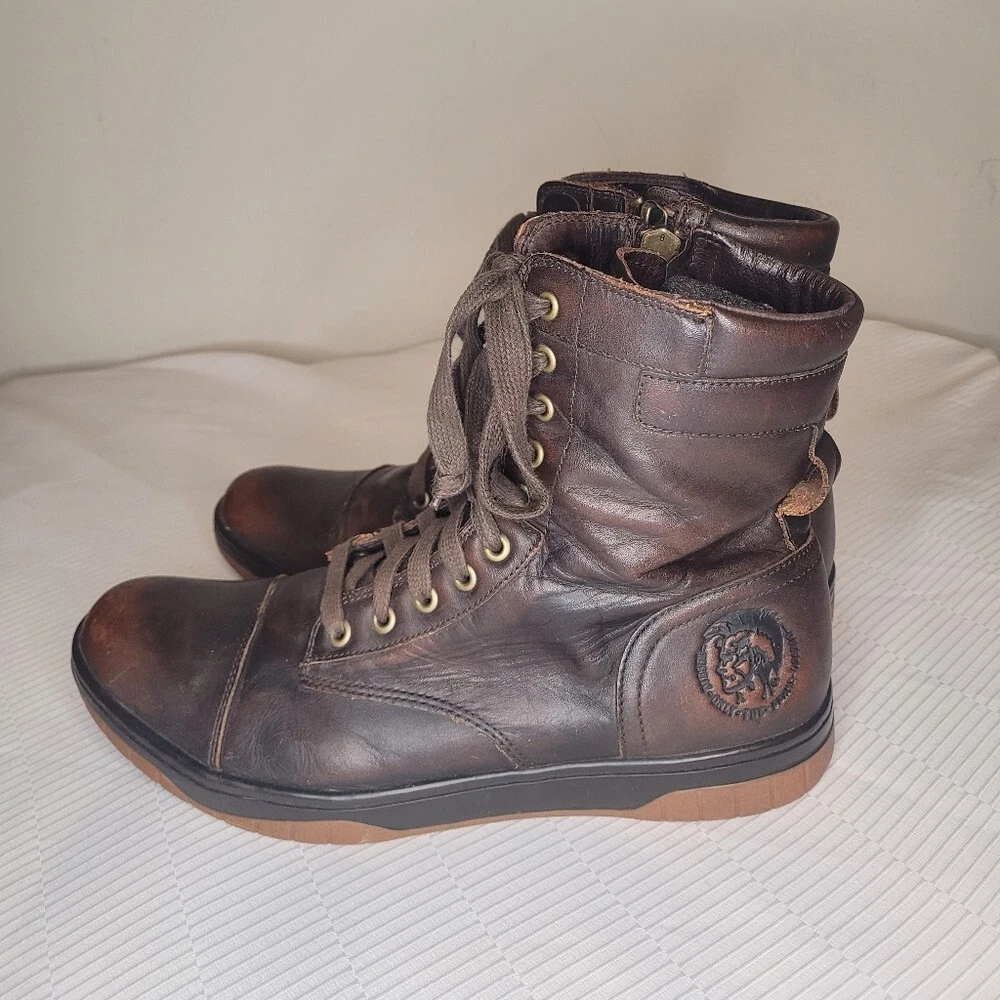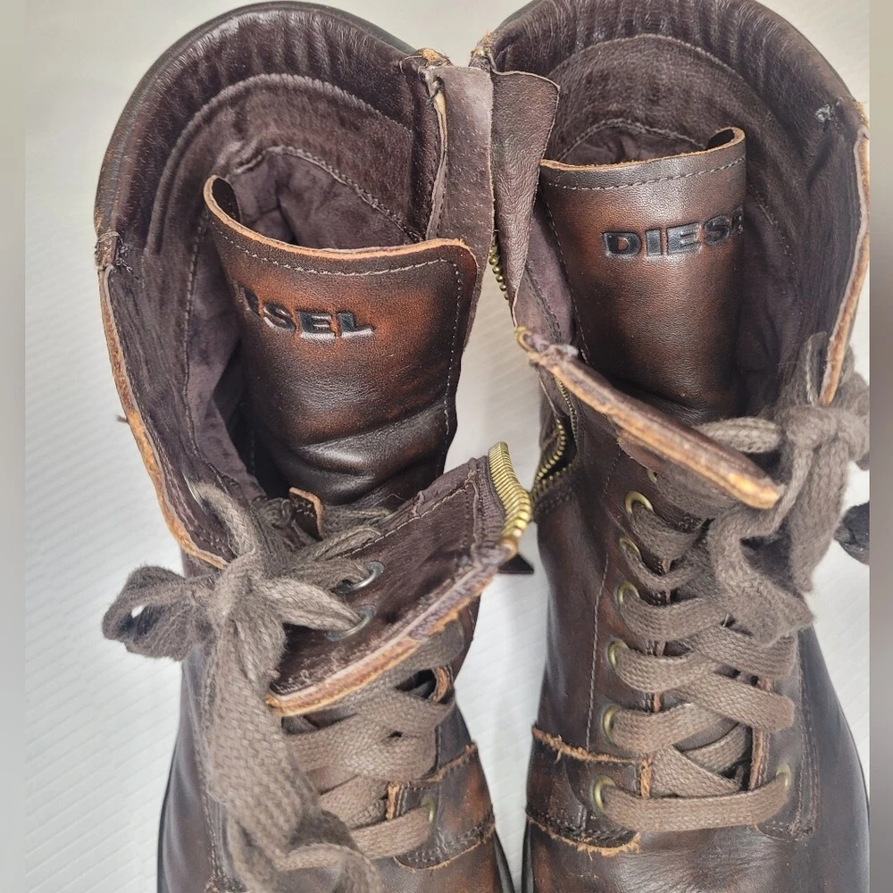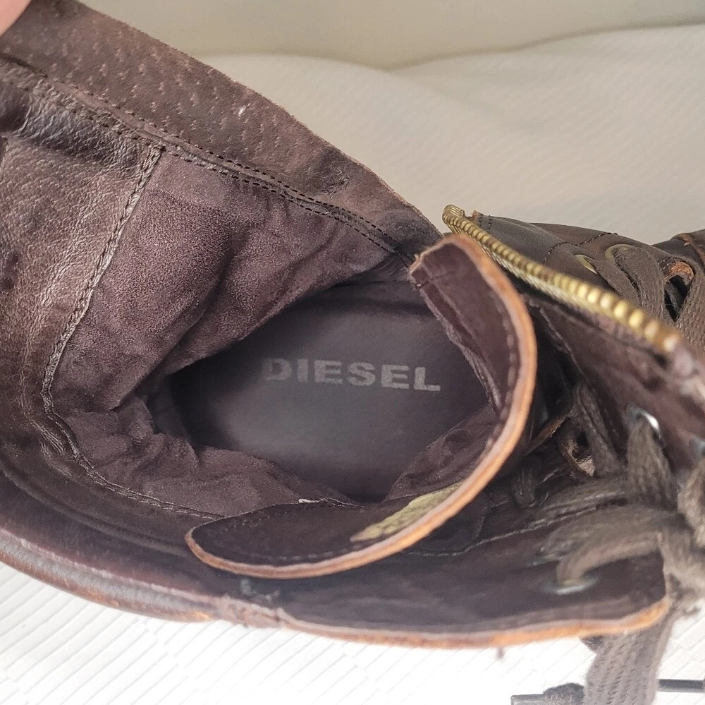Seller Notes: “Great preowned condition” Style: Combat Closure: Zip Lining Material: Leather Brand: Diesel Theme: Biker, Grunge, Metal, Emo, Dark Academia Color: Brown Model: Diesel Basket Butch Department: Men Outsole Material: Leather US Shoe Size: 10.5 Upper Material: Leather Features: Comfort, Leather, Laceup, Zipper Insole Material: Leather Type: Boot Pattern: Distressed