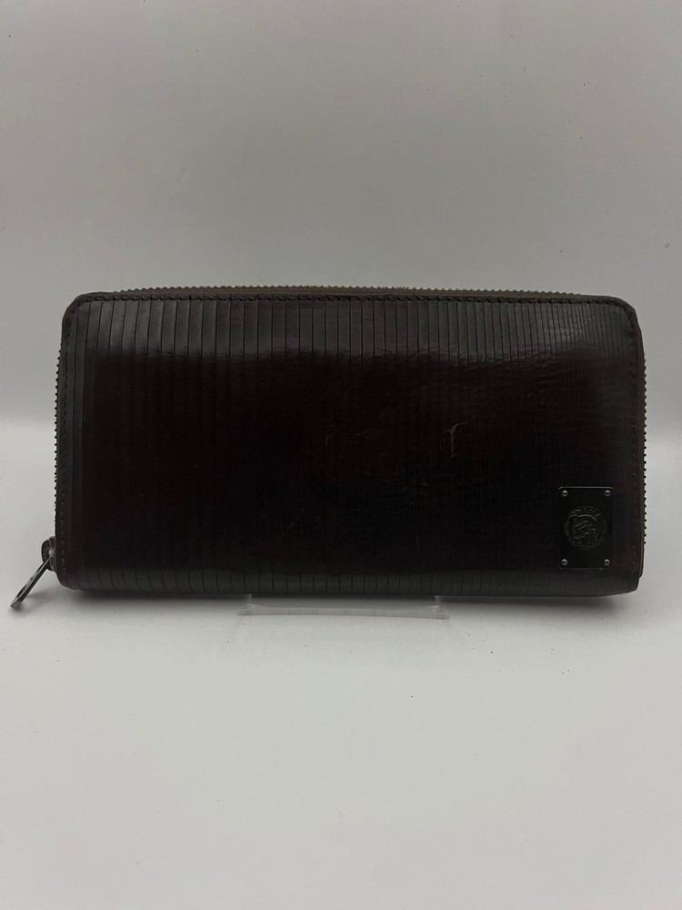 Diesel Brown Leather Round Zip Long Wallet T674-8 Preowned