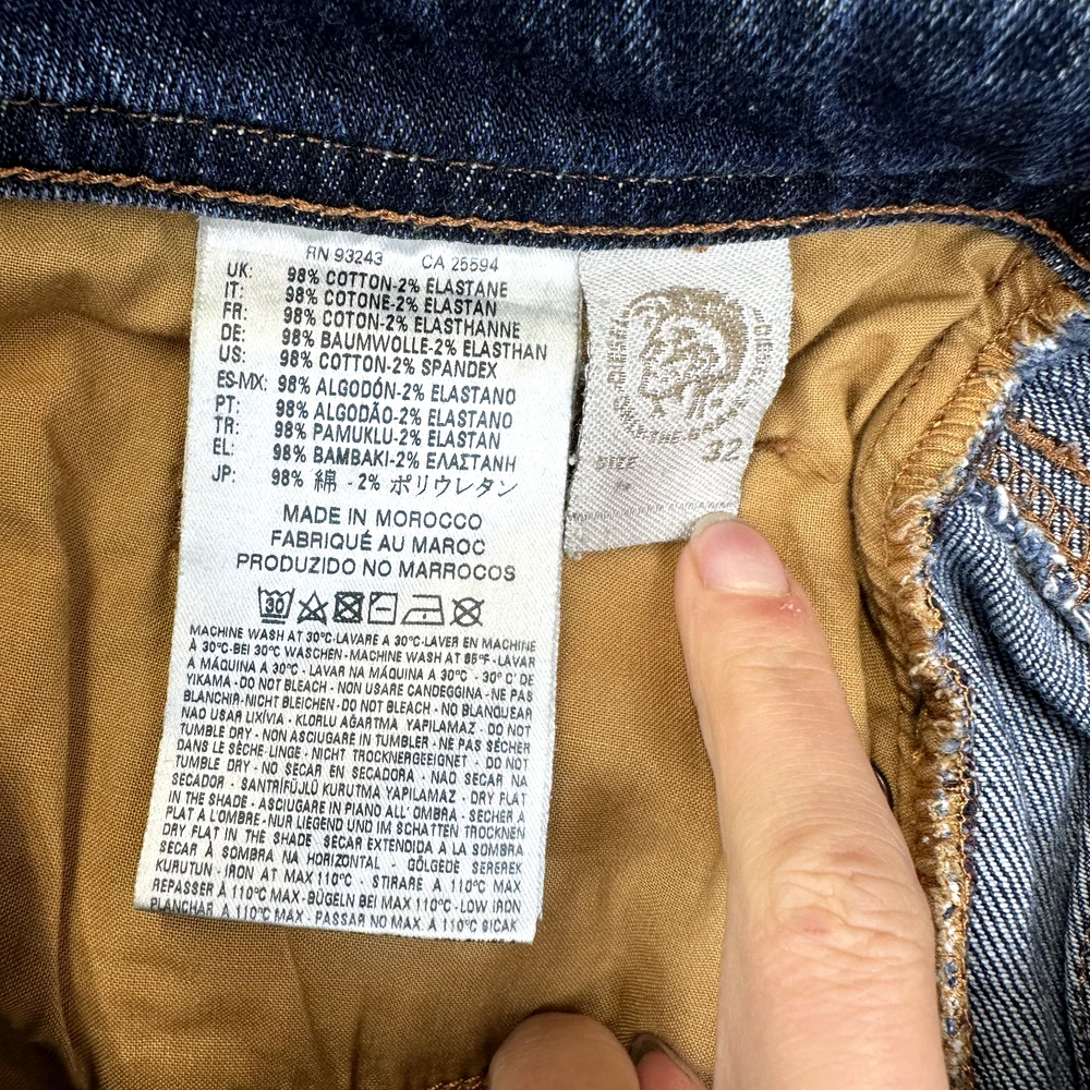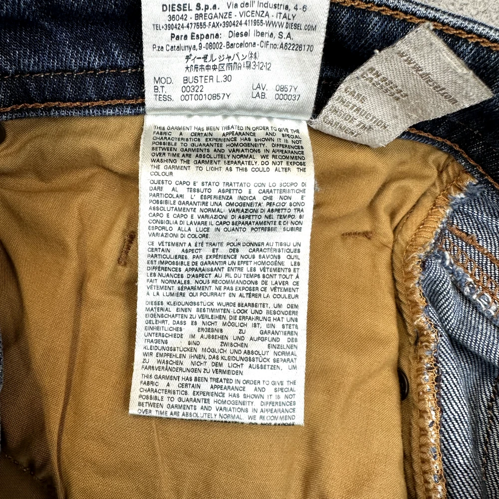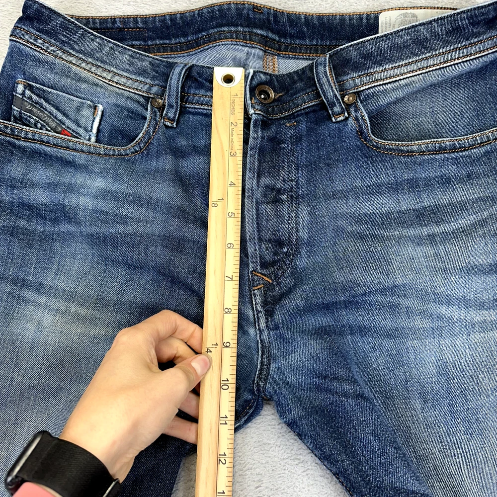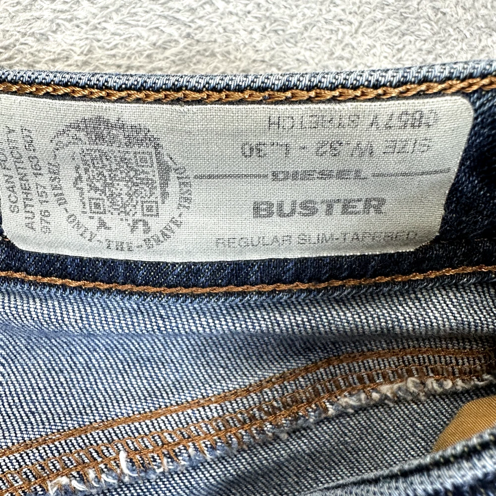 Type: Jeans Style: Tapered Pocket Type: 5-Pocket Design Season: Autumn, Spring, Summer, Winter Theme: 90s, Biker, City, Grunge, Logo, USA, western Department: Men Features: Comfort, Easy Care, Pockets, Slimming Garment Care: Machine Washable Closure: Button Handmade: No Fabric Wash: Dark Pattern: No Pattern Rise: Mid (10-12 in) Color: Blue Model: Diesel Buster Waist Size: 34 in Brand: Diesel Fit: Slim Vintage: No Inseam: 30 in Material: Cotton Fabric Type: Denim Size: 32 Size Type: Regular Product Line: Diesel Buster Personalize: No Country/Region of Manufacture: Morocco Accents: Button, Embroidered, Logo