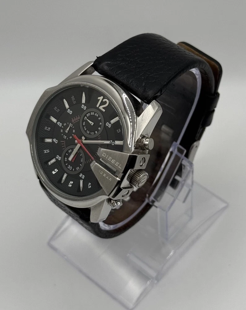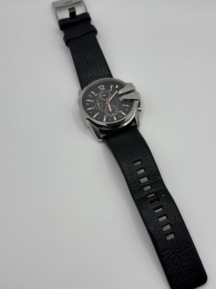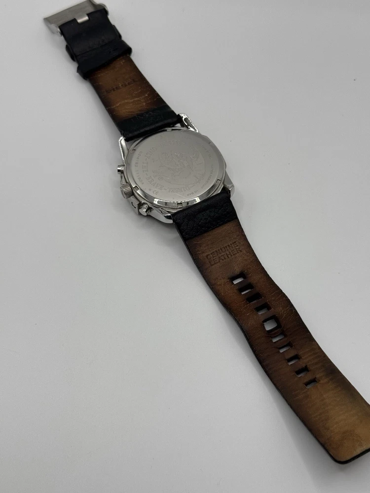 Band Material: Leather Year Manufactured: 2010-Now Chronograph Type: Chronograph Style: Casual Case Material: Stainless Steel Gender: Men's Brand: Diesel Customized: No Movement: Quartz Case Color: Black Features: Chronograph Display: Analog Reference Number: DZ4182 Dial Color: Black Type: Wristwatch Department: Men Band Color: Black
