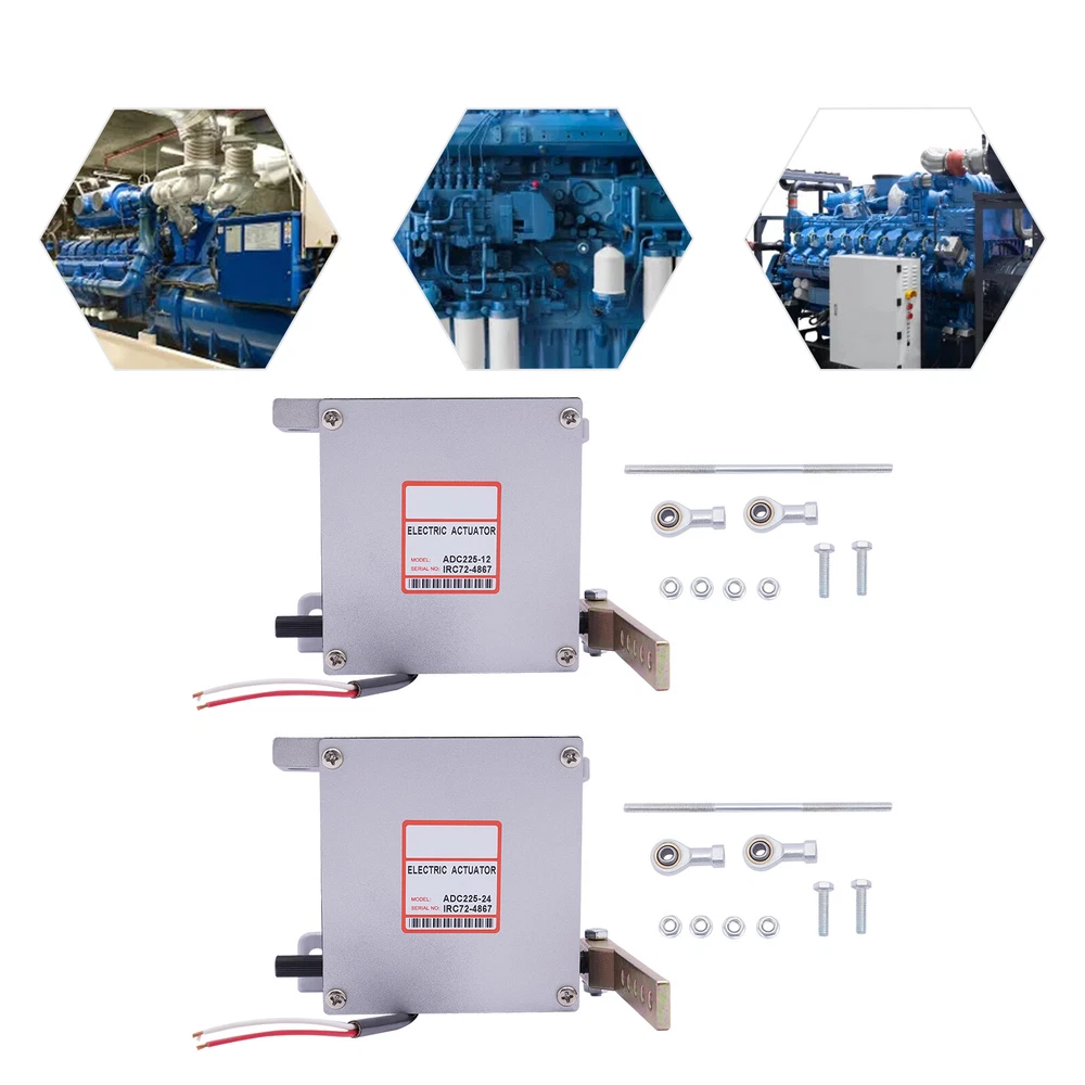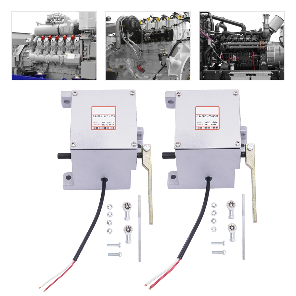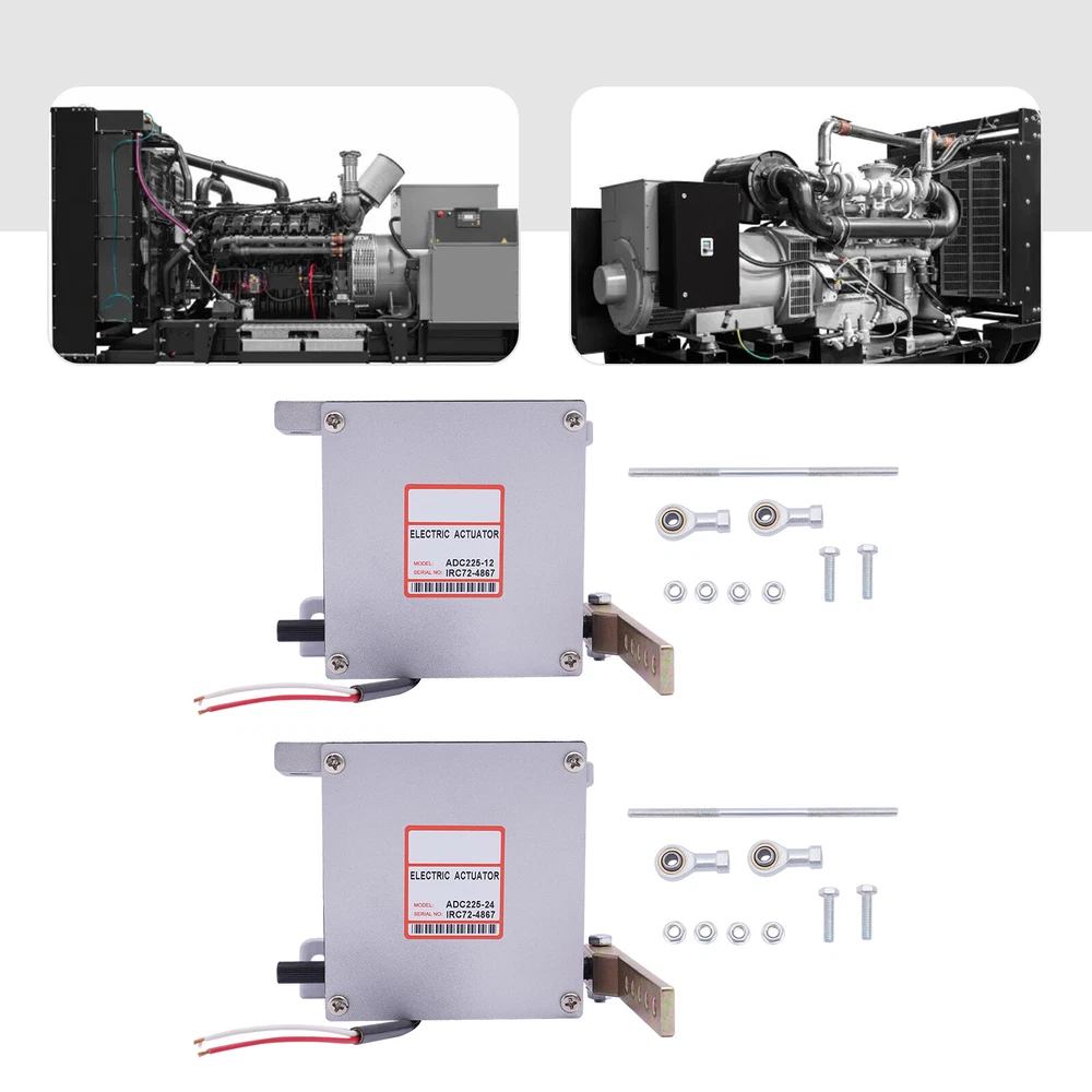 Diesel Engine Generator Actuator External Generator Electric ADC225-12V / 24V 12V/24V Electronic Actuator ADC225-12V/24V For Diesel Generator Parts Description The electronic actuator is made of metal, which is strong and durable. The 225 Series actuator is a rotary output, linear torque proportional electric servo designed for mechanical actuation of fuel system control levers. It is energized by appropriate speed control unit signals and is capable of 25 degrees of rotation. Key Features Adjustable Function: The linkage can be optimized by adjusting for an actuator current difference from no engine load to full engine load of approximately 2 amps/1 amp for 12-volt/24-volt systems. The no-load current is altered by varying the length of the linkage and the range is adjusted by changing the hole used by the rod end bearing on the actuator lever. Lever Design: It allows you to easily push the engine to the maximum full fuel position before starting it, and can smoothly return to the minimum fuel position, so as to achieve safe and stable operation. Strong and Durable: Made of metal with high strength and good rigidity, it can resist wear, corrosion, heat, shock, and deformation, allowing it to be used for a long time. Two Voltages to Choose From: There are two voltages for you to choose from: DC 12V and DC 24V. You can choose freely according to your needs. Complete Installation Tools: The package includes a lot of necessary tools, which can facilitate the installation. Quick Response: Smaller angles of actuator travel may improve transient performance, but will reduce the force available at the fuel control lever. Adjusting the actuator to operate through at least one-half of its stroke (12 degrees) will provide near optimum response. Compact: It is compact ( 5.2*4.3*4.8inch ), so you can easily move it. Protective Packaging: This product comes in a custom foam that resists compression and falls to prevent product damage in transit. Guaranteed Customer Service: We aim to provide quality products and services. If you have problems, please feel free to contact us. We will reply and solve the problem for you as soon as possible. Details Round Corners: The round corners can prevent scratching your hands. Smooth Surface: It has a smooth surface, so you can wipe it with a wet cloth. Application It applies to diesel generator sets. Specification Model: ADC225 Color: Silver Material: Metal Shape: Rectangular Style: Modern Working Voltage: DC 12V, DC 24V Input Current: 0-5A Max. Torque: 3Nm Model: General Feature: Shockproof Working Stroke: 25° Recommended Wire Size of the Cable Harness: (12V) At Least #16 Gauge (1.5mm), (24V) At Least #18 Gauge (1.0mm) Net Weight: 3.5kg/7.7lbs Gross Weight: 3.8kg/8.3lbs Package Size: 19*18*18cm/7.4*7*7inch Product Size: 13.2*10.8*12.1cm/5.2*4.3*4.8inch Working Principle The electromagnetic speed sensor generates an electrical signal that is proportional to the engine speed setting. If the signal is not proportional to the engine speed, the current change from the speed control unit to the actuator will change the magnetic force in the actuator. Then, the rotation of the actuator shaft will adjust the fuel of the engine and make the engine speed equal to the preset engine setting. The shaft rotation is proportional to the actuator current and is balanced by an internal spring. Troubleshooting Red to White (12V) 1.25ohms, Red to White (24V) 5.0 ohms Red to Housing Infinity White to Housing Infinity Energize the actuator to full fuel (follow the steps in the control unit publication) and manually move the actuator through its range. No binding or sticking should occur. If the actuator passes these tests, the problem is elsewhere in the system. Installation The actuator must be rigidly mounted as close as possible to the engine throttle lever. When selecting the mounting location, consideration must be given to possible linkage obstructions. The linkage should be direct, short, and as light as possible. Low-friction rod end bearings should be used throughout the linkage system. The linkage should be adjusted so that the fuel control minimum fuel and maximum fuel stops are used rather than the internal actuator stops. A. Drill the actuator mounting holes in a pre-fabricated mounting bracket. The position of the actuator on the mounting bracket should insure minimal misalignment between each end of the governor system linkage. The linkage ball-bearing rod ends can tolerate a maximum misalignment of 10 degrees. B. Affx the actuator bracket to the selected location on the engine. C. Attach the actuator securely to the mounting bracket. D. Adjust and secure the linkage rod and rod end bearings. For proportional actuators to operate with linear control systems, it is important to obtain a linear relationship between actuator stroke and fuel delivery. Package Included 1* 12V/24V Electric Actuator Other Accessories Notes For diesel fuel systems, the linkage configuration is typically linear. The actuator lever should be nearly parallel to the fuel control lever and perpendicular to the linkage rod at the mid-fuel position. The wiring must be capable of handling typical current levels of 8 amps/4 amps for 12-volt/24-volt systems without experiencing a significant voltage drop. Larger gauge wire will be necessary for cable lengths greater than 10ft. The actuators with 2-pin connectors are prewired for 12V/24V. Use the included harness to connect the actuator to the speed control unit. Upon release, recheck the linkage to insure both the linkage and the levers are securely fastened and that no binding is present. Please allow the slight color difference caused by the shooting light and 1-3cm error due to manual measurement, and make sure you do not mind before ordering. Payment Delivery details Terms of sales About us Contact us Payment We accept ebay payment 。 Fees such as import duties, taxes are not included in the item price or shipping costs. These charges are the buye