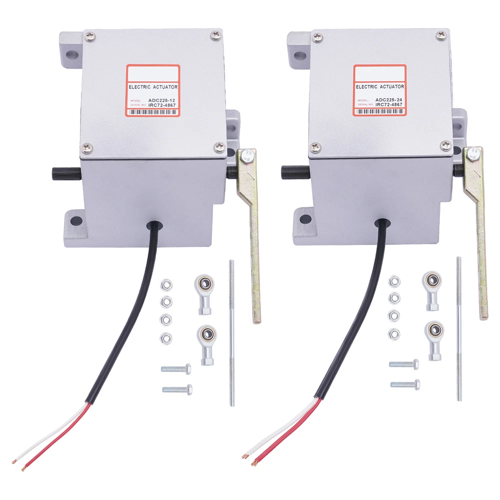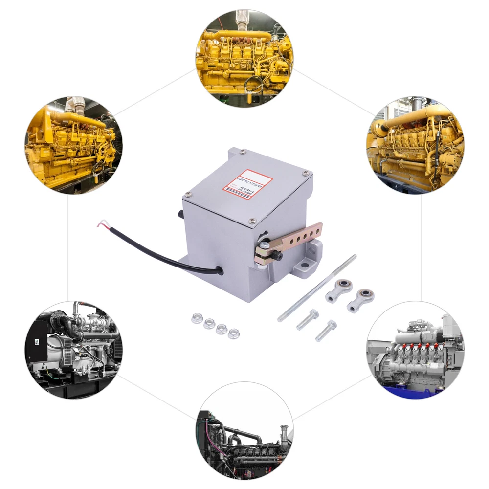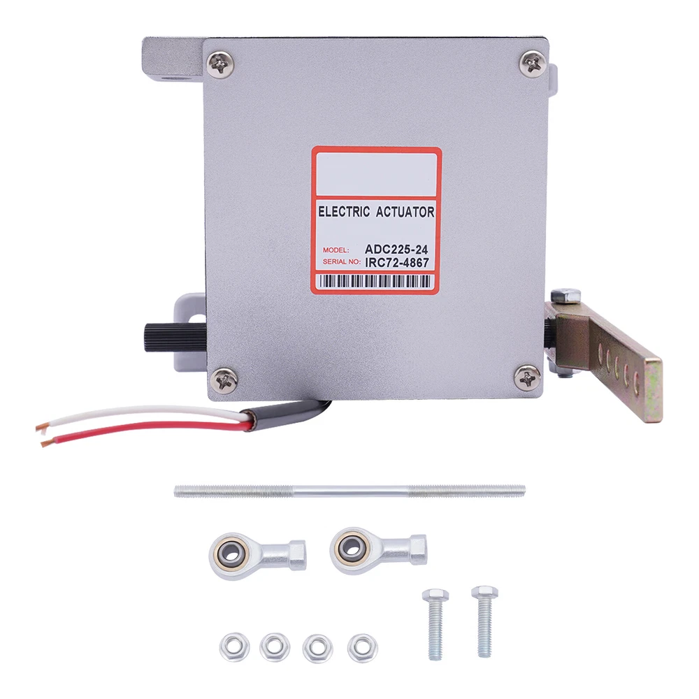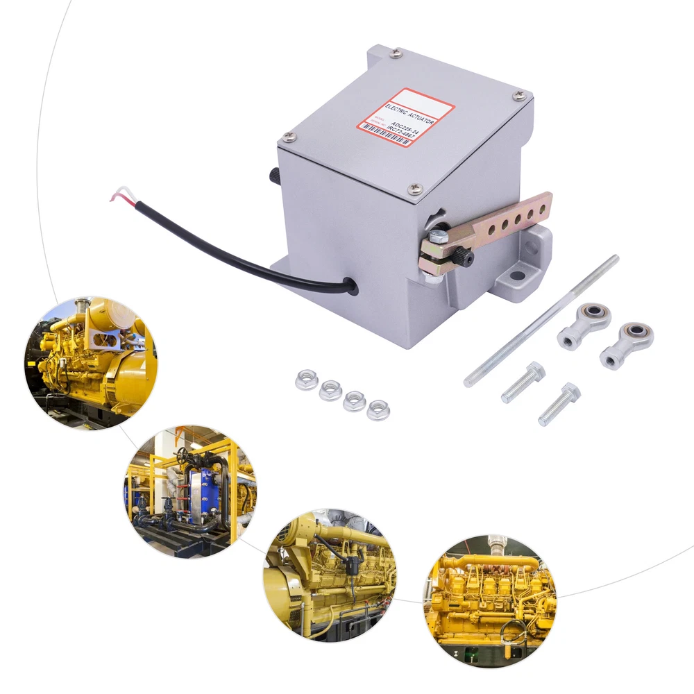Diesel Engine Generator Actuator External Generator Electric ADC225-12V / 24V 12V/24V Electronic Actuator ADC225-12V/24V For Diesel Generator Parts Description The electronic actuator is made of metal, which is strong and durable. The 225 Series actuator is a rotary output, linear torque proportional electric servo designed for mechanical actuation of fuel system control levers. It is energized by appropriate speed control unit signals and is capable of 25 degrees of rotation. Key Features Adjustable Function: The linkage can be optimized by adjusting for an actuator current difference from no engine load to full engine load of approximately 2 amps/1 amp for 12-volt/24-volt systems. The no-load current is altered by varying the length of the linkage and the range is adjusted by changing the hole used by the rod end bearing on the actuator lever. Lever Design: It allows you to easily push the engine to the maximum full fuel position before starting it, and can smoothly return to the minimum fuel position, so as to achieve safe and stable operation. Strong and Durable: Made of metal with high strength and good rigidity, it can resist wear, corrosion, heat, shock, and deformation, allowing it to be used for a long time. Two Voltages to Choose From: There are two voltages for you to choose from: DC 12V and DC 24V. You can choose freely according to your needs. Complete Installation Tools: The package includes a lot of necessary tools, which can facilitate the installation. Quick Response: Smaller angles of actuator travel may improve transient performance, but will reduce the force available at the fuel control lever. Adjusting the actuator to operate through at least one-half of its stroke (12 degrees) will provide near optimum response. Compact: It is compact ( 5.2*4.3*4.8inch ), so you can easily move it. Protective Packaging: This product comes in a custom foam that resists compression and falls to prevent product damage in transit. Guaranteed Customer Service: We aim to provide quality products and services. If you have problems, please feel free to contact us. We will reply and solve the problem for you as soon as possible. Details Round Corners: The round corners can prevent scratching your hands. Smooth Surface: It has a smooth surface, so you can wipe it with a wet cloth. Application It applies to diesel generator sets. Specification Model: ADC225 Color: Silver Material: Metal Shape: Rectangular Style: Modern Working Voltage: DC 12V, DC 24V Input Current: 0-5A Max. Torque: 3Nm Model: General Feature: Shockproof Working Stroke: 25° Recommended Wire Size of the Cable Harness: (12V) At Least #16 Gauge (1.5mm), (24V) At Least #18 Gauge (1.0mm) Net Weight: 3.5kg/7.7lbs Gross Weight: 3.8kg/8.3lbs Package Size: 19*18*18cm/7.4*7*7inch Product Size: 13.2*10.8*12.1cm/5.2*4.3*4.8inch Working Principle The electromagnetic speed sensor generates an electrical signal that is proportional to the engine speed setting. If the signal is not proportional to the engine speed, the current change from the speed control unit to the actuator will change the magnetic force in the actuator. Then, the rotation of the actuator shaft will adjust the fuel of the engine and make the engine speed equal to the preset engine setting. The shaft rotation is proportional to the actuator current and is balanced by an internal spring. Troubleshooting Red to White (12V) 1.25ohms, Red to White (24V) 5.0 ohms Red to Housing Infinity White to Housing Infinity Energize the actuator to full fuel (follow the steps in the control unit publication) and manually move the actuator through its range. No binding or sticking should occur. If the actuator passes these tests, the problem is elsewhere in the system. Installation The actuator must be rigidly mounted as close as possible to the engine throttle lever. When selecting the mounting location, consideration must be given to possible linkage obstructions. The linkage should be direct, short, and as light as possible. Low-friction rod end bearings should be used throughout the linkage system. The linkage should be adjusted so that the fuel control minimum fuel and maximum fuel stops are used rather than the internal actuator stops. A. Drill the actuator mounting holes in a pre-fabricated mounting bracket. The position of the actuator on the mounting bracket should insure minimal misalignment between each end of the governor system linkage. The linkage ball-bearing rod ends can tolerate a maximum misalignment of 10 degrees. B. Affx the actuator bracket to the selected location on the engine. C. Attach the actuator securely to the mounting bracket. D. Adjust and secure the linkage rod and rod end bearings. For proportional actuators to operate with linear control systems, it is important to obtain a linear relationship between actuator stroke and fuel delivery. Package Included 1* 12V/24V Electric Actuator Other Accessories Notes For diesel fuel systems, the linkage configuration is typically linear. The actuator lever should be nearly parallel to the fuel control lever and perpendicular to the linkage rod at the mid-fuel position. The wiring must be capable of handling typical current levels of 8 amps/4 amps for 12-volt/24-volt systems without experiencing a significant voltage drop. Larger gauge wire will be necessary for cable lengths greater than 10ft. The actuators with 2-pin connectors are prewired for 12V/24V. Use the included harness to connect the actuator to the speed control unit. Upon release, recheck the linkage to insure both the linkage and the levers are securely fastened and that no binding is present. Please allow the slight color difference caused by the shooting light and 1-3cm error due to manual measurement, and make sure you do not mind before ordering. Payment Delivery details Terms of sales About us Contact us Payment We accept ebay payment 。 Fees such as import duties, taxes are not included in the item price or shipping costs. These charges are the buye