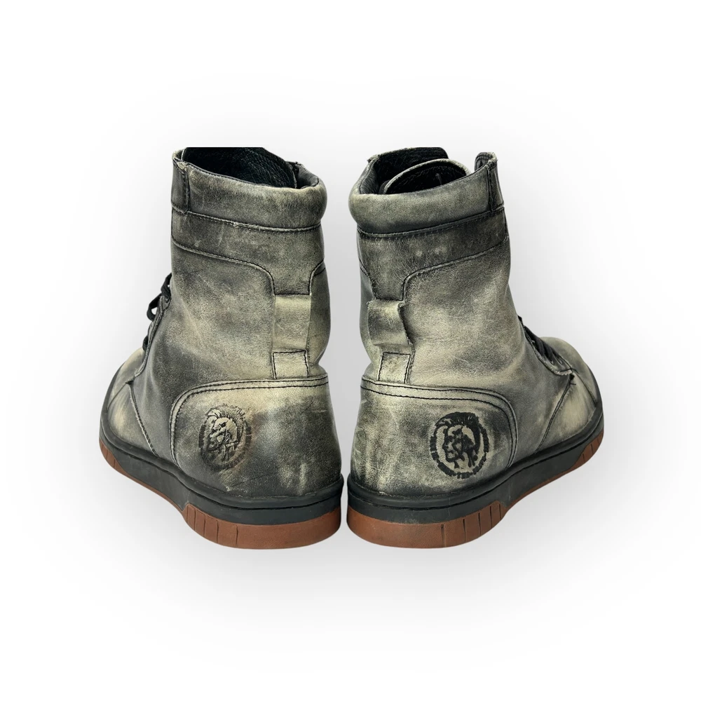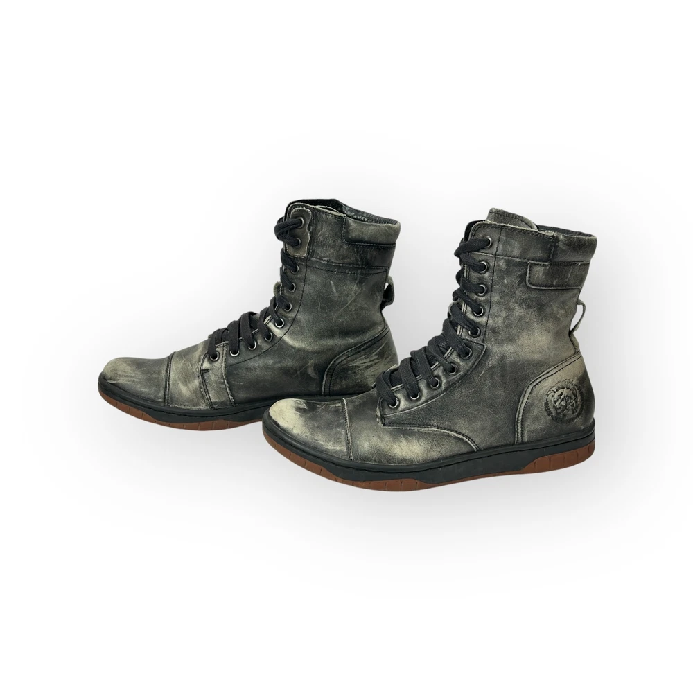 Diesel Gray Distressed Leather Basket Butch Zippy Mens Boots Size 9 42 Diesel Gray Distressed Leather Basket Butch Zippy Mens Boots Size 9 42 gently used condition 7-3/4" tall Listing and template services provided by inkFrog