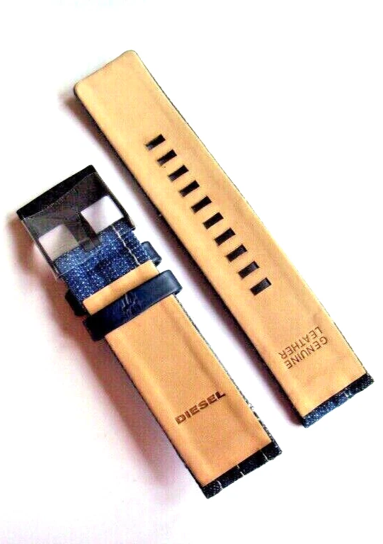 Watch strap original DIESEL Also fits other watches with 24 mm lug width. DIESEL: Model DZ4397 Material: Leather Textile Color: Jeans blue Clasp: Stainless steel pin buckle black Scope of delivery: Band with two bars Mass 1-bridge width 24 mm 2-Band length closure side 90 mm 3-Band length hole side 120 mm Watch strap original DIESEL Also fits other watches with 24 mm lug width. DIESEL: Model DZ4397 Material: Leather Textile Color: Jeans blue Clasp: Stainless steel pin buckle black Scope of delivery: Band with two bars Mass 1-bridge width 24 mm 2-Band length closure side 90 mm 3-Band length hole side 120 mm