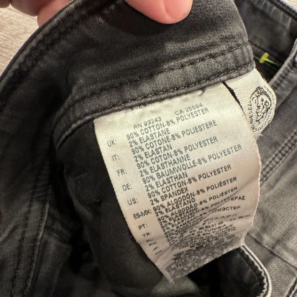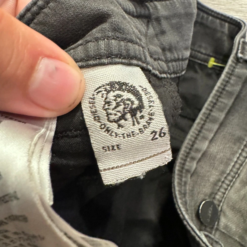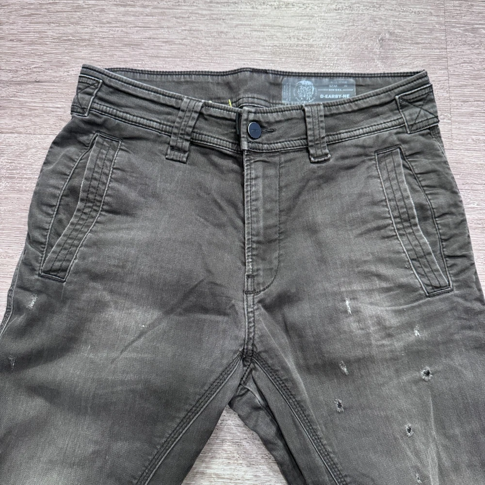 Country/Region of Manufacture: Italy Type: Jeans Garment Care: Machine Washable Inseam: 25 in Material: Cotton, Polyester, Elastane, Cotton Blend Accents: Logo, Button, Zipper, Embroidered Color: Gray Style: Skinny gtin13: Does not apply Model: Diesel D-EIFAULT-NE Closure: Button, Zip Department: Women Fit: Boyfriend Fabric Type: Denim Size: 26 Brand: Diesel UPC: Does not apply Theme: Grunge Fabric Wash: Dark Pattern: Solid Size Type: Regular Vintage: No Waist Size: 26 in Features: Ankle, Distressed, Pockets, Slimming, Stretch