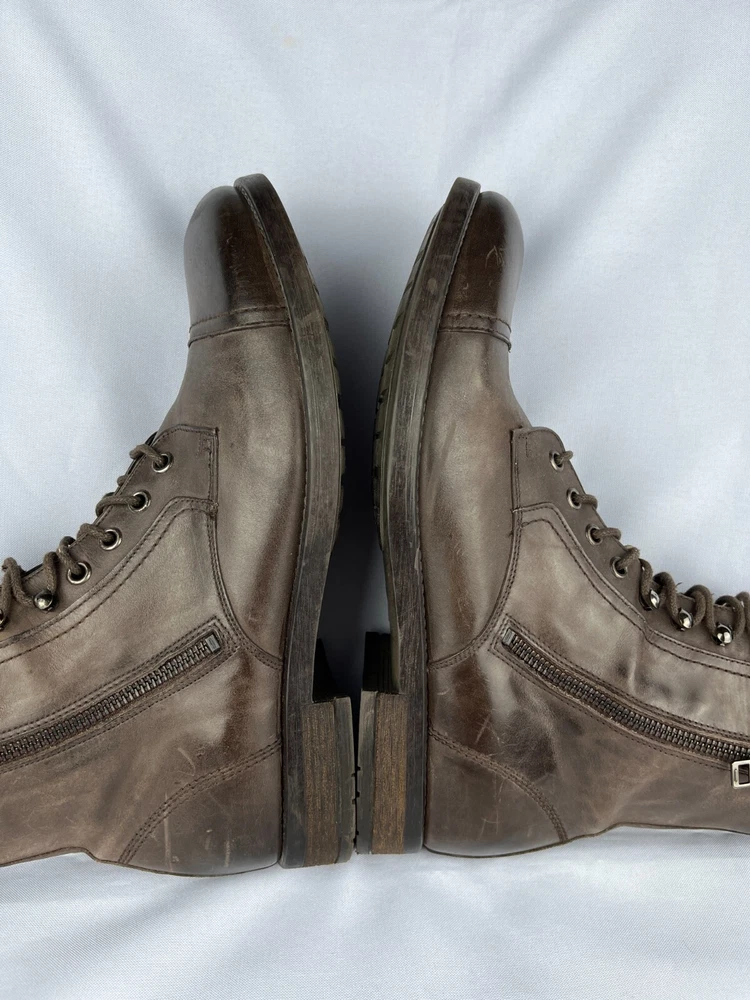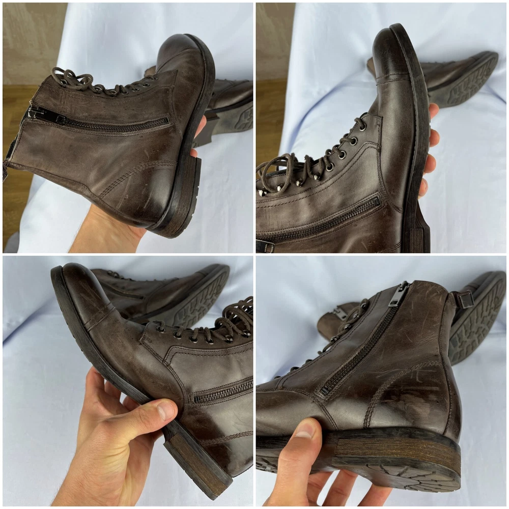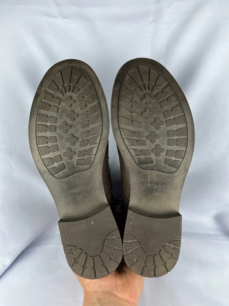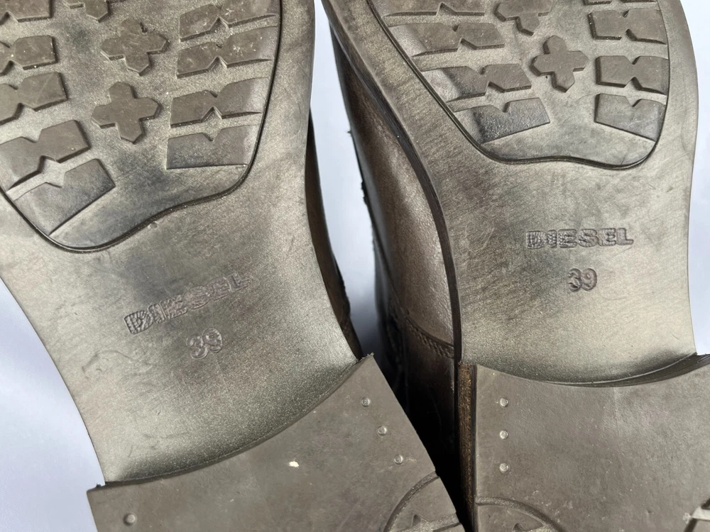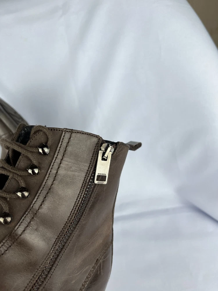 Diesel Leather Lace-Up Zipper Combat Boots Unisex Size: Men's EU 39 / US 7 / UK 6 / CM 24 Women's EU 39 / US 8.5 / UK 6.5 / CM 24 Used condition, see all photo please All items are clean, washed Shipping worldwide: I accept combined worldwide delivery with tracking numbers. Postage: We do the shipment within 2 days. Estimated shipping time: 10-28 working days (in rare cases it takes longer). Canada, Australia 20-60 days !!!! Look at my other items for sale. Before you want to place an order, see all additional photos, read description and check measurements. If you have any questions or problems, please, contact me! Usually my buyers are happy to deal with me, but if something is wrong and you decide to leave negative/neutral feedback, please contact me before, and we will solve this problem in the best way! I would like to be your reliable partner! Thanks in advance!