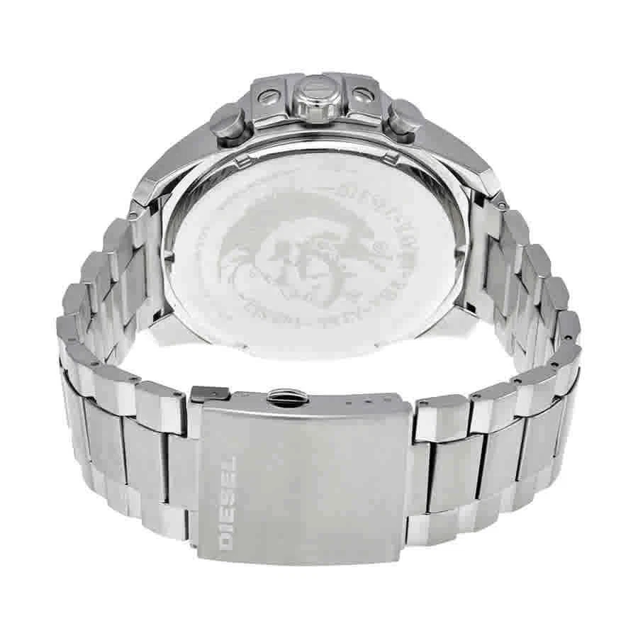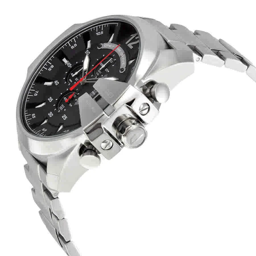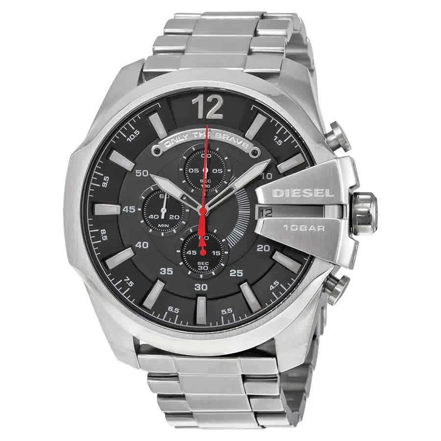 Department Men Type Wristwatch Reference Number Diesel Mega Chief Customized No Style Casual, Classic, Dress/Formal, Luxury, Sport Model DZ4308 Features Chronograph Movement Quartz Dial Color Black Bezel Color Dark Grey Case Color Silver Band Color Silver Band Material Stainless Steel Display Analog Case Material Stainless Steel Water Resistance 100 m (10 ATM) Year Manufactured 2020-Now Indices Stick Indexes Case Size 59 mm x 51 mm Band/Strap Bracelet Watch Shape Round Vintage No Caseback Solid Band Width 25 mm Case Thickness 14 mm Closure Fold-Over Push-Button Deployant