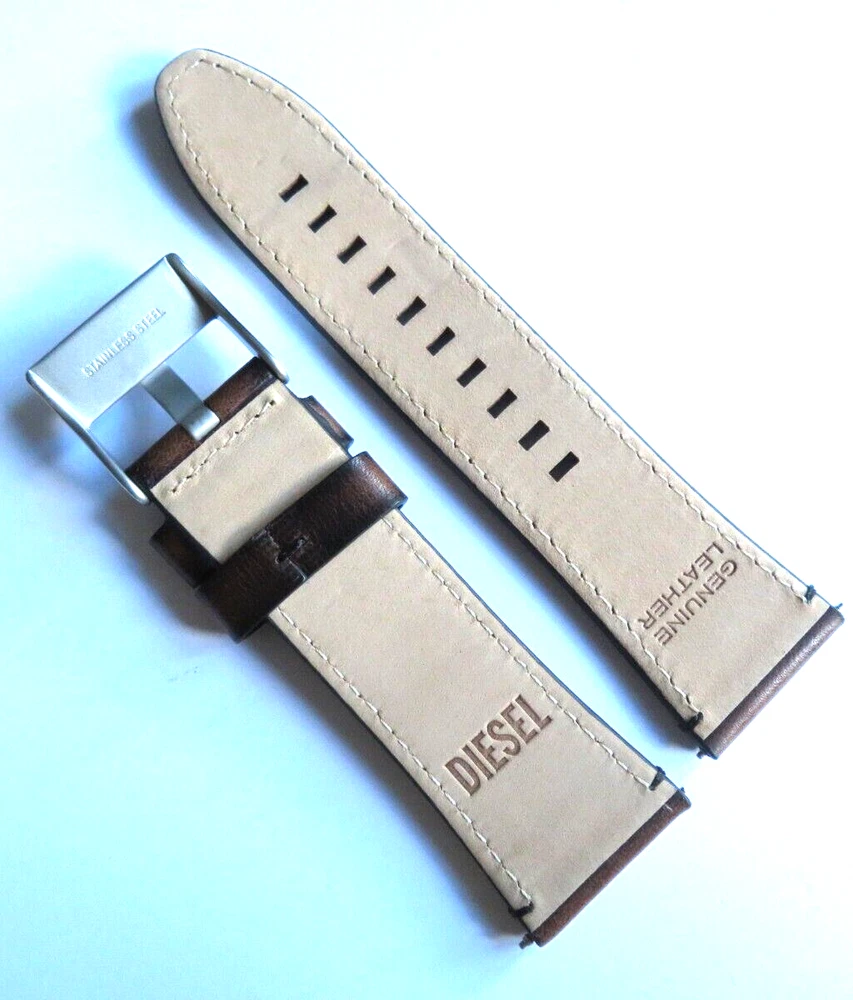 Watch strap original DIESEL Also fits other watches with 26 mm lug width. DIESEL: Model DZ4380 Material: Leather Color: Braun Bridge width: 26 mm Clasp: Stainless steel pin buckle, matt silver Scope of delivery: Band with two bars Mass: 1-Bridge Width: 26mm 2-Band length closure side: 90 mm 3-Band length hole side: 115 mm Watch strap original DIESEL Also fits other watches with 26 mm lug width. DIESEL: Model DZ4380 Material: Leather Color: Braun Bridge width: 26 mm Clasp: Stainless steel pin buckle, matt silver Scope of delivery: Band with two bars Mass:Â 1-Bridge Width: 26mm 2-Band length closure side: 90 mm 3-Band length hole side: 115 mm