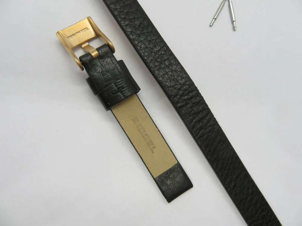 Watch strap original DIESEL Also fits other watches with a 12 mm bridge width. DIESEL: Model DZ5517 Material: Leather Color: Black Bridge width: 12 mm Clasp: gold stainless steel pin buckle Scope of delivery: Band with two bridges Watch strap original DIESEL Also fits other watches with a 12 mm bridge width. DIESEL: Model DZ5517 Material: Leather Color: Black Bridge width: 12 mm Clasp: gold stainless steel pin buckle Scope of delivery: Band with two bridges