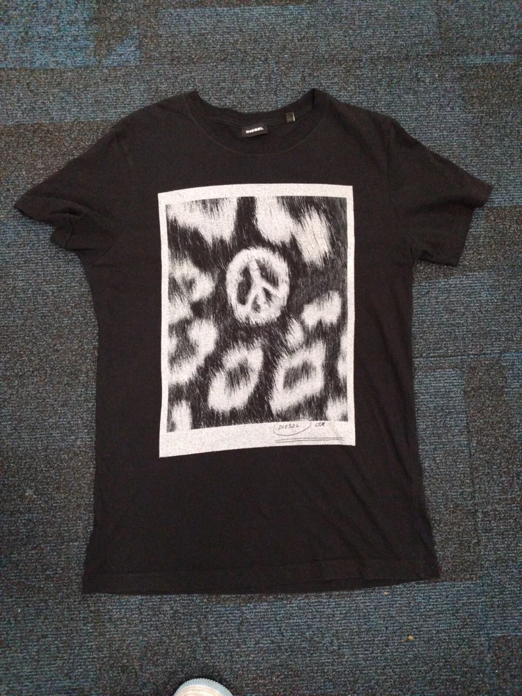 Elevate your casual look with this black Diesel print t-shirt, perfect for men who love to make a statement. Crafted from 100% cotton, this regular-fit t-shirt is comfortable to wear all day long. The 18.5 PTP size is ideal for those who prefer a relaxed fit, making it a must-have addition to any wardrobe. Featuring the iconic Diesel brand, this t-shirt is perfect for those who love to show off their style. The black colour is versatile and can be paired with any outfit, making it a great addition to your wardrobe. Ideal for casual outings, this t-shirt is a must-have for any fashion-conscious man.