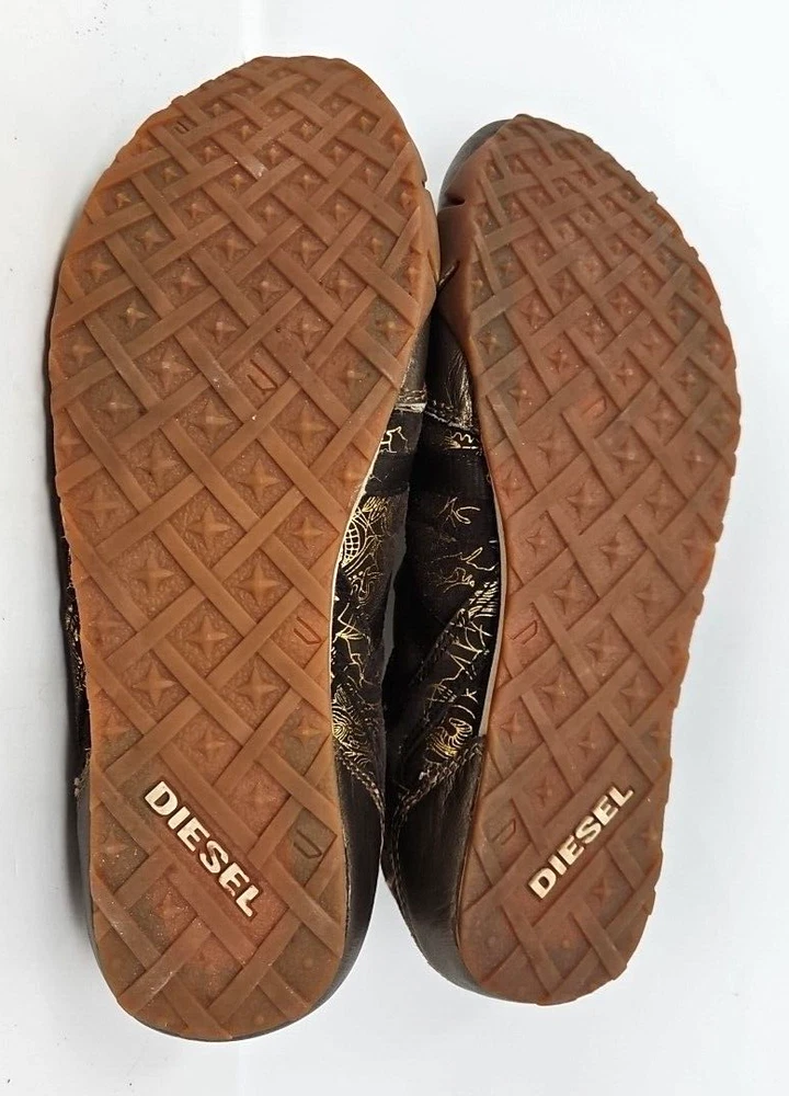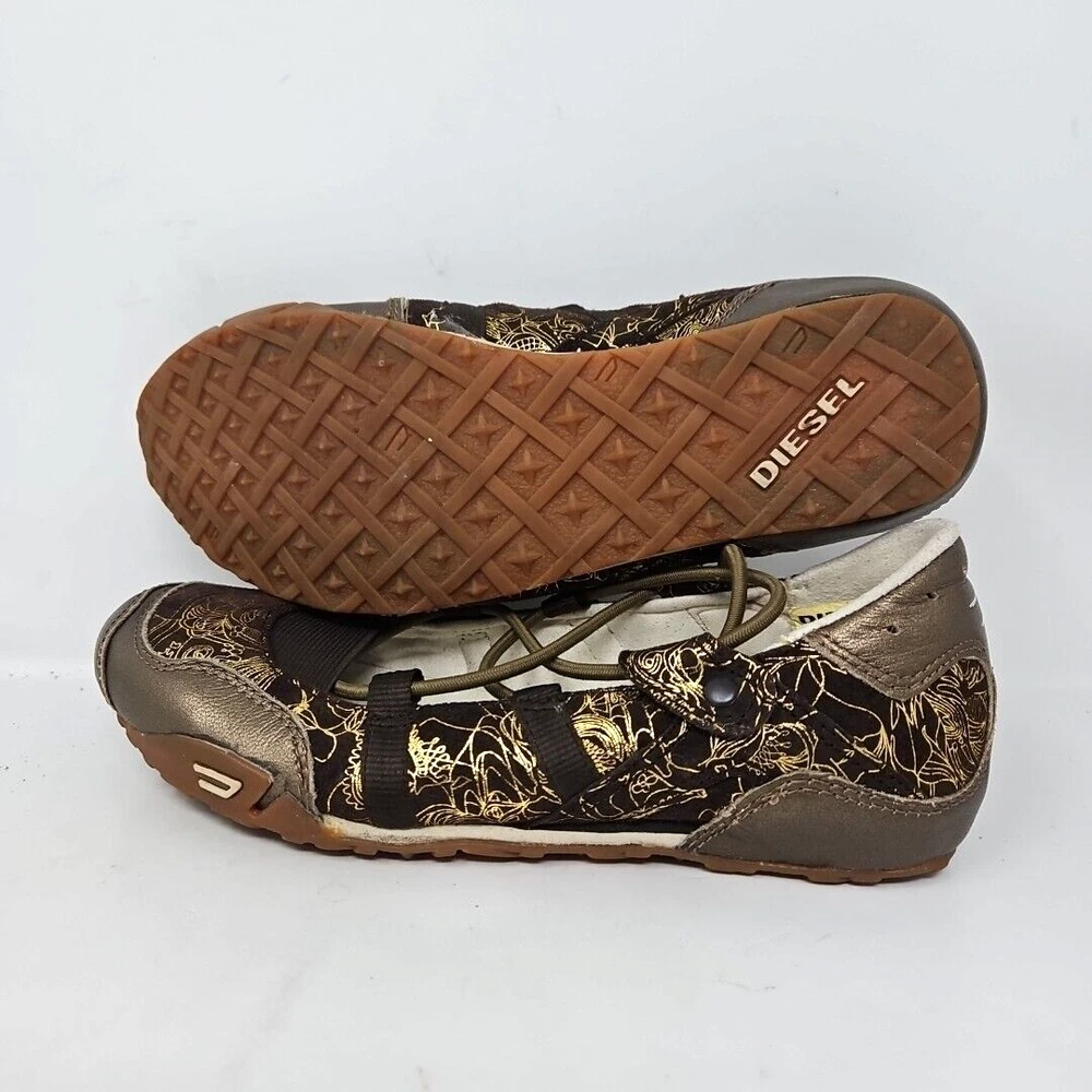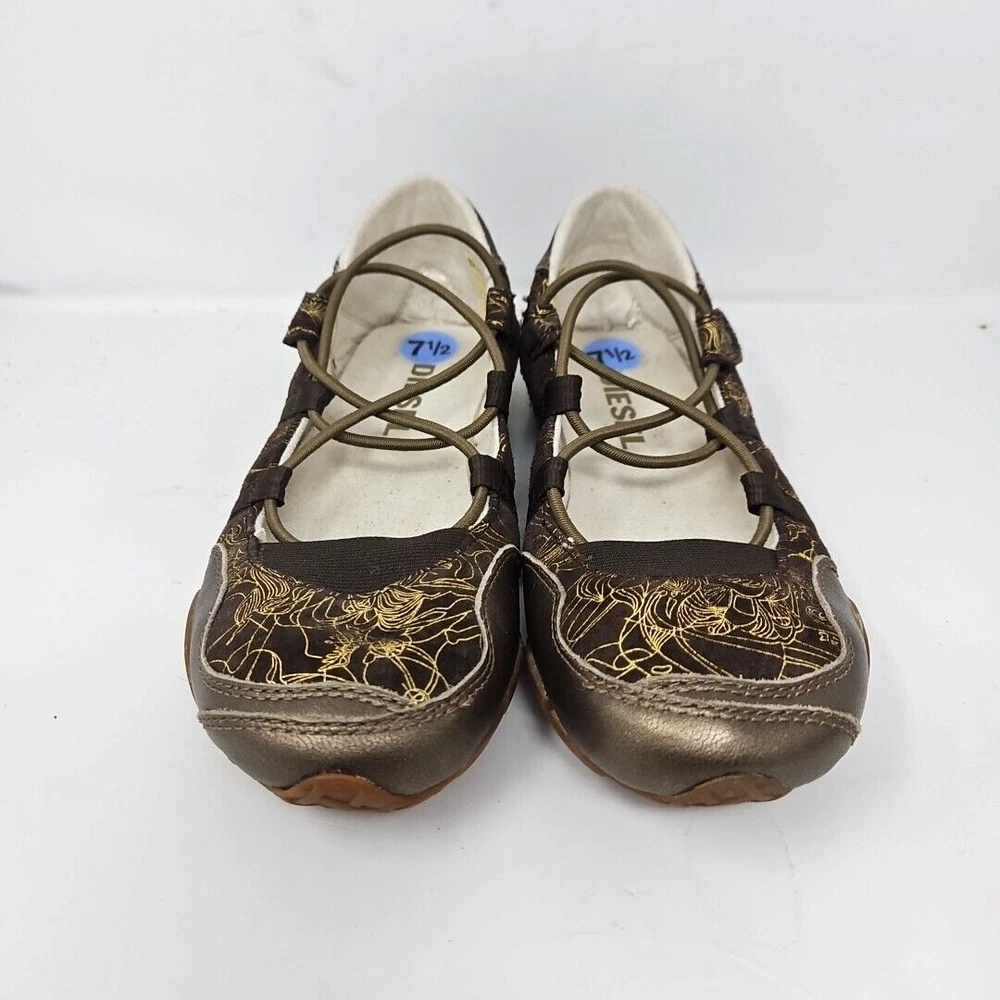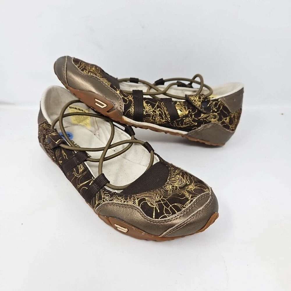 Diesel Shoes Womens 7.5 Leather Maudy Jane Vintage Casual Y2K Flats Brown & Gold