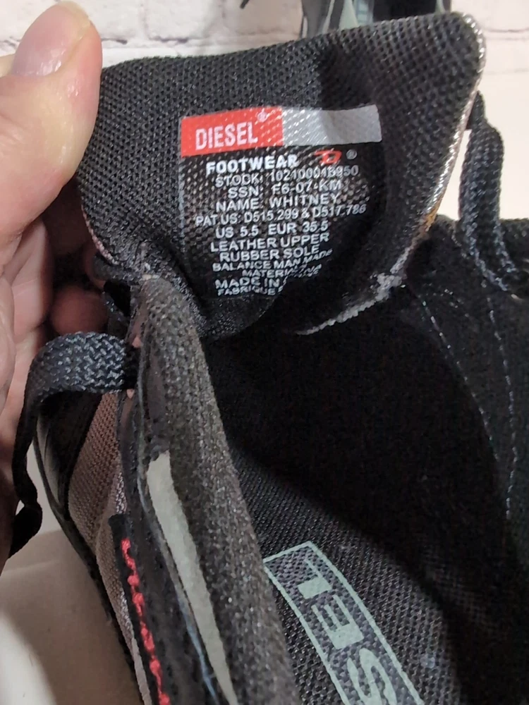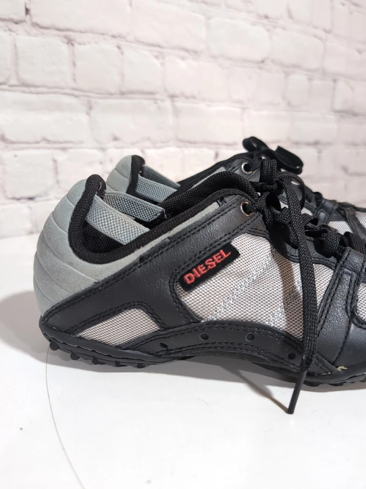 Excellent pre-owned condition Elevate your casual look with these Diesel Whitney Low Top Lace Up Comfort Sneakers Shoes in Silver and Black. Designed for women, these sneakers feature a multicolor mesh upper material, a standard shoe width, and a low top shoe shaft style. The lace-up closure provides a secure fit, making them perfect for walking, school, driving, and hiking. These designer sneakers from Diesel are perfect for those who love the 90s sports theme and the city life. The Whitney model is a classic and a must-have for any sneaker collection. With a US shoe size of 5.5 and an EU shoe size of 35.5, these sneakers are sure to fit comfortably and look great on any outfit.