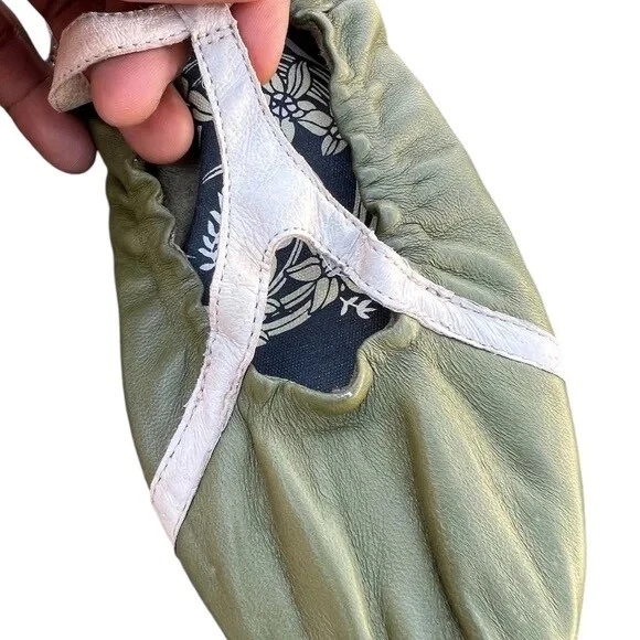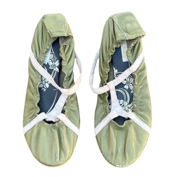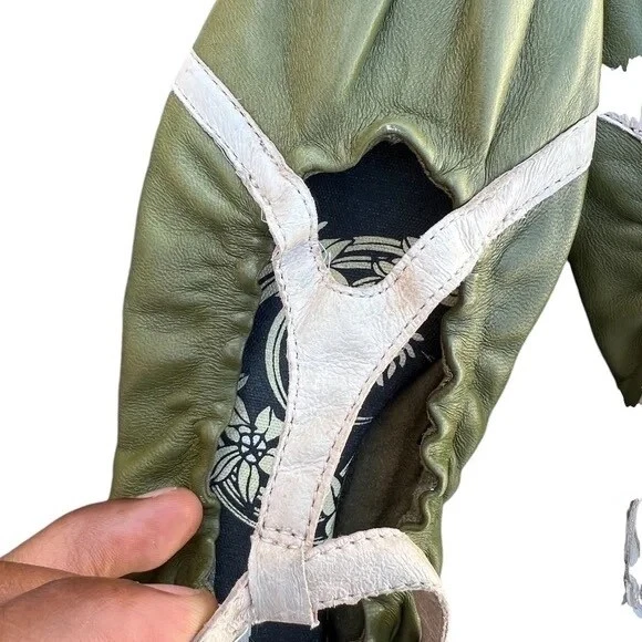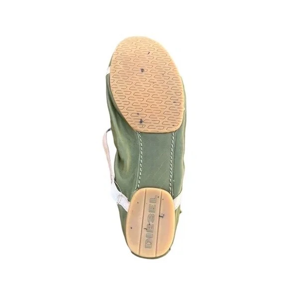Elevate your everyday look with these beautiful olive green leather ballet flats from Diesel. Crafted with the finest quality leather, these flats are perfect for any casual occasion. The flats feature a comfortable design that is perfect for all-day wear, with a size of 8 that is perfect for women. The stylish green color adds a pop of color to any outfit, making them perfect for any fashion-forward woman. The flats are perfect for any season, whether you're looking for a pair of flats for summer or winter. These Diesel women's ballet flats are perfect for any woman who wants to add a touch of style to her wardrobe. They are perfect for any casual occasion, whether you're running errands or meeting up with friends. The flats are designed with a comfortable fit, making them perfect for all-day wear. So if you're looking for a pair of stylish and comfortable flats, look no further than these Diesel women's ballet flats.