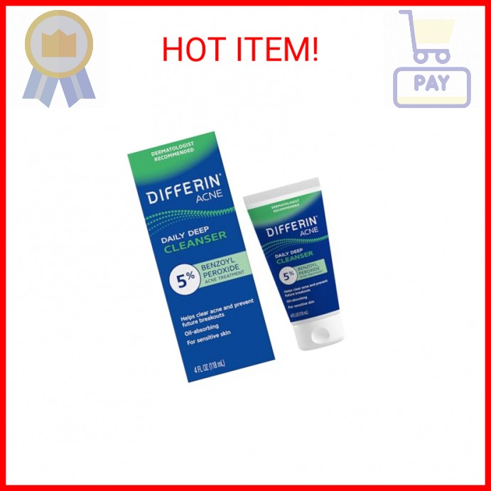 100% Genuine Free Shipping Gift Cards Welcome Differin Acne Face Wash with 5% Benzoyl Peroxide, Daily Deep Cleanser by the makers of Differin Gel, Gentle Skin Care for Acne Prone Sensitive Skin, 4 oz (Packaging May Vary) - TARGET ACNE: Penetrates deep into pores with 5% benzoyl peroxide with less irritation & dryness - DUAL-ACTION FORMULA: Micronized, dual-action formula absorbs excess oil in the skin, while releasing a gentle moisturizer that won't clog pores - KEY INGREDIENTS: 5% benzoyl peroxide that can effectively target and treat acne - HOW TO USE: Apply to dampened skin and gently massage, rinse thoroughly with warm water - DERMATOLOGIST-DEVELOPED: Can be used to effectively treat acne or maskne caused by wearing face masks or facial coverings Payments We accept the following payment methods PayPal Please pay as soon as possible after winning an auction, this will allow for quicker shipping times! Returns We do not accept returns. Shipping Shipment processing time All orders are processed within 3-5 business days. Orders are not shipped or delivered on weekends or holidays. If we are experiencing a high volume of orders, shipments may be delayed by a few days. Please allow additional days in transit for delivery. If there will be a significant delay in shipment of your order, we will contact you via email or telephone. Shipping rates & delivery estimates Shipping charges for your order will be calculated and displayed at checkout.