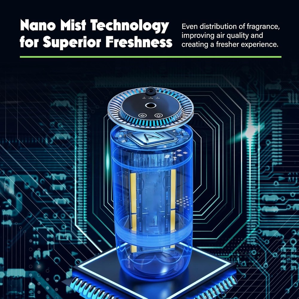 Tecnología inteligente que se sincroniza con tu coche: Nuestro ambientador inteligente para coche cuenta con un chip microsensor avanzado que se enciende y apaga automáticamente, sincronizándose perfectamente con el encendido de tu coche para una experiencia sin complicaciones. Este difusor ambientador para coche tiene una batería recargable de 300 mAh, que ofrece un rendimiento fiable con una carga rápida de tan solo 2 horas. Diseñado para la conducción moderna, esta automatización inteligente te permite disfrutar de un aire fresco y limpio sin necesidad de encenderlo o apagarlo manualmente. Dos modos de luz para un ambiente cautivador: Transforma el interior de tu coche con una luz ambiental de 7 colores y un proyector de cielo estrellado para un ambiente romántico y festivo. La luz LED se sincroniza con la música, creando una experiencia dinámica e interactiva que realza cada viaje. Perfecto para fiestas en coche, viajes nocturnos o incluso para decorar tu dormitorio. Dale un toque mágico al espacio de tu vehículo con estas luces de estrellas y viaja con comodidad con nuestros difusores portátiles para aceites esenciales. 3 modos de pulverización personalizables para cada estado de ánimo: Nuestro difusor de aire automático para coche te permite elegir entre tres modos de pulverización ajustables según tus preferencias: modo suave (pulveriza cada 3 minutos), modo fuerte (pulveriza cada minuto) o modo hogar para una pulverización continua. El ambientador inteligente se adapta a tus necesidades, garantizando el equilibrio ideal de frescura en cada situación. Dile adiós a los olores persistentes con un control preciso de la fragancia. Personaliza fácilmente el ambiente de tu coche para cada aventura con nuestro difusor de aromas para coche. Tecnología Nano Mist para una frescura superior: Estos ambientadores para coche cuentan con una nebulización avanzada a nivel nanométrico que garantiza que los aceites esenciales se dispersen en partículas ultrafinas, eliminando los olores a nivel molecular. Nuestro purificador de aire para coche proporciona una cobertura completa, dejando cada rincón de tu coche fresco con una fragancia duradera. Disfruta de un ambiente más limpio y agradable cada vez que conduces. Experimenta una distribución eficiente y uniforme del aroma para una comodidad máxima con este humidificador eléctrico portátil para coche. Aromaterapia segura y natural para todos: Nuestro ambientador Smart Car está enriquecido con aceite esencial sin alcohol ni aditivos, extraído de plantas naturales. Es seguro para niños y personas mayores. Su fórmula no irritante ofrece una fragancia pura y refrescante sin efectos secundarios. Respire tranquilo sabiendo que sus seres queridos están rodeados de un aroma suave y natural. Cree un ambiente más saludable y relajante en cada viaje con el aroma de perfumes suaves.