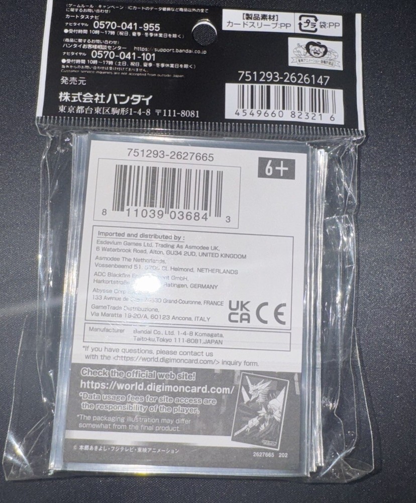 Autographed:NoInscribed:NoNumber of Sleeves:60Compatible Card Thickness:35 Pt.Type:Card SleevesColor:MulticolorCountry/Region of Manufacture:Japangtin13:4549660823216Featured Person/Artist:JessmonGame:Digimon CCGBrand:DigimonFinish:GlossySleeve Type:Premium SleevesAge Level:8+Features:Suitable for TournamentEAN:4549660823216MPN:BCL9032841Year Manufactured:2022Compatible Card Size:StandardAutograph Format:Does Not ApplyColour:BlackCustom Bundle:NoSigned By:Does Not ApplyConvention/Event:Does Not ApplyAutograph Authentication Number:Does Not ApplyCharacter:Jessmon