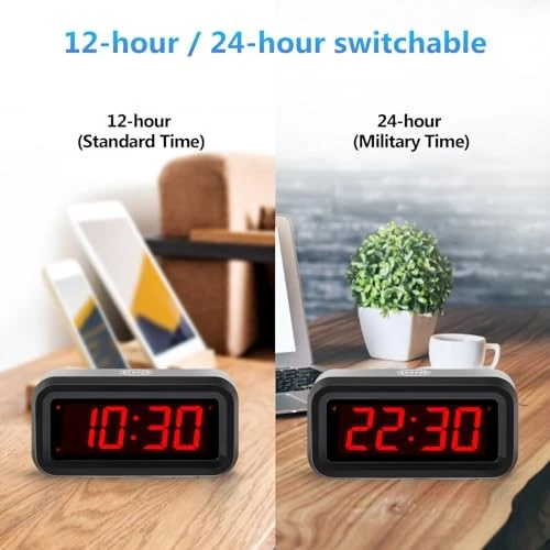 Return Policy Fast Delivery Trusted seller Digital Alarm Clock Battery Operated with LED Display for Bedrooms, Long Battery Life for 12 Months, 3 Brightness Adjustable, 12/24 Hour, Snooze, Black Case with Red Digits Product Description Alarm Clock Battery Operated - This alarm clock is powered by 4pcs AA batteries which can support the digital clock to work for more than 1 year. It is battery operated only, no usb ports, so you can put anyw that you like. Alarm Clocks for Bedrooms - This alarm clock is with 3 brightness levels, you can choose the suitable brightness for you.With the Night-Mode, it will dim automatically during 8:00pm-6:00am, so you won't feel too dazzling in the room. Digital Clock with LED Display - Unlike other digital clock, this LED digital clock is supported by batteries only, no need to plug by adapter cord, very convenient. It also has two display modes switchable :12/24hr mode. Desk Clock or Besides Clock - The clock size is 5.1x1.5x2.6 inches, portable and muted. You can use it as a desk clock or besides alarm clock, or take it out as a travel clock. Easy to Operate, with Snooze Function - The clock comes with a manual and it is easy to operate. The "Snooze" button is on top, touch it to stop alarm and 7 minutes later it goes off again until 3 times. Shipping Returns Payment Shipping Shipping is FREE to all addresses other than APO/PO boxes in the lower 48 states. All our stock ships from US-based warehouses. Shipped via USPS or UPS (depending on location and package weight) Unless stated otherwise, all orders will ship within 24-72 hours of your payment being processed. Check our feedback to see the great reviews of FAST shipping we offer. Returns Seller does not accept returns Payment We currently accept payment via eBay managed payments only. Once payment is cleared, we will dispatch your shipment within 1-3 business days. Please refer to the "Shipping" tab for more information regarding shipping speed to your destination.