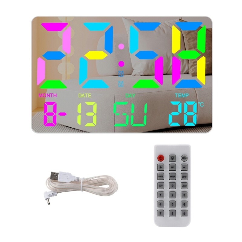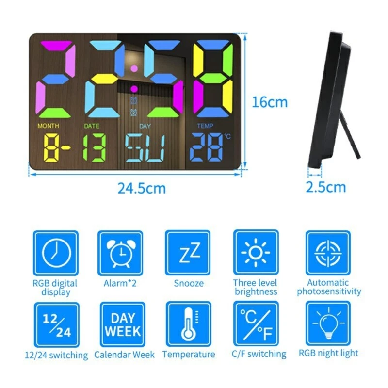 Features: Brand new and high quality With a variety of LED colors and adjustable brightness, it's perfect for creating a lively atmospheres. Organized with this convenient electronic desktop clock. It features temperature display, remote operation, and a stylish design that fit seamlessly into any home or office setting. This versatile alarm clock is suitable for all users. Its user friendly features, including multiple alarms and adjustable brightness, make it a practical choice for anyone. Whether you need a reliable alarm in the morning or a stylish clock for your desk, this alarm clock is perfect. It's suitable for bedrooms, offices, and even dorm rooms, adding functionality and style to any space. Create a modern atmospheres in your home with this chic alarm clock. Its LED display, adjustable brightness, and temperature function add a stylish touch. Specifications: Material: ABS Size: approx.24.5x16cm/9.65x6.30in Optional Color: Black, White Quantity: 1 Pc Package Includes: 1 Pc x Alarm Clock 1 Pc x Remote Control note: Please allow 0-1cm error due to manual measurement. please make sure you do not mind before you bid. Due to difference between different monitors, the picture may not reflect the actual color of the item.