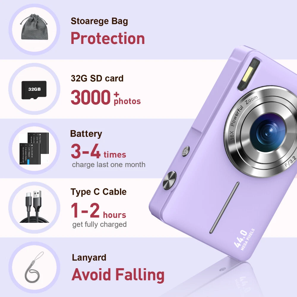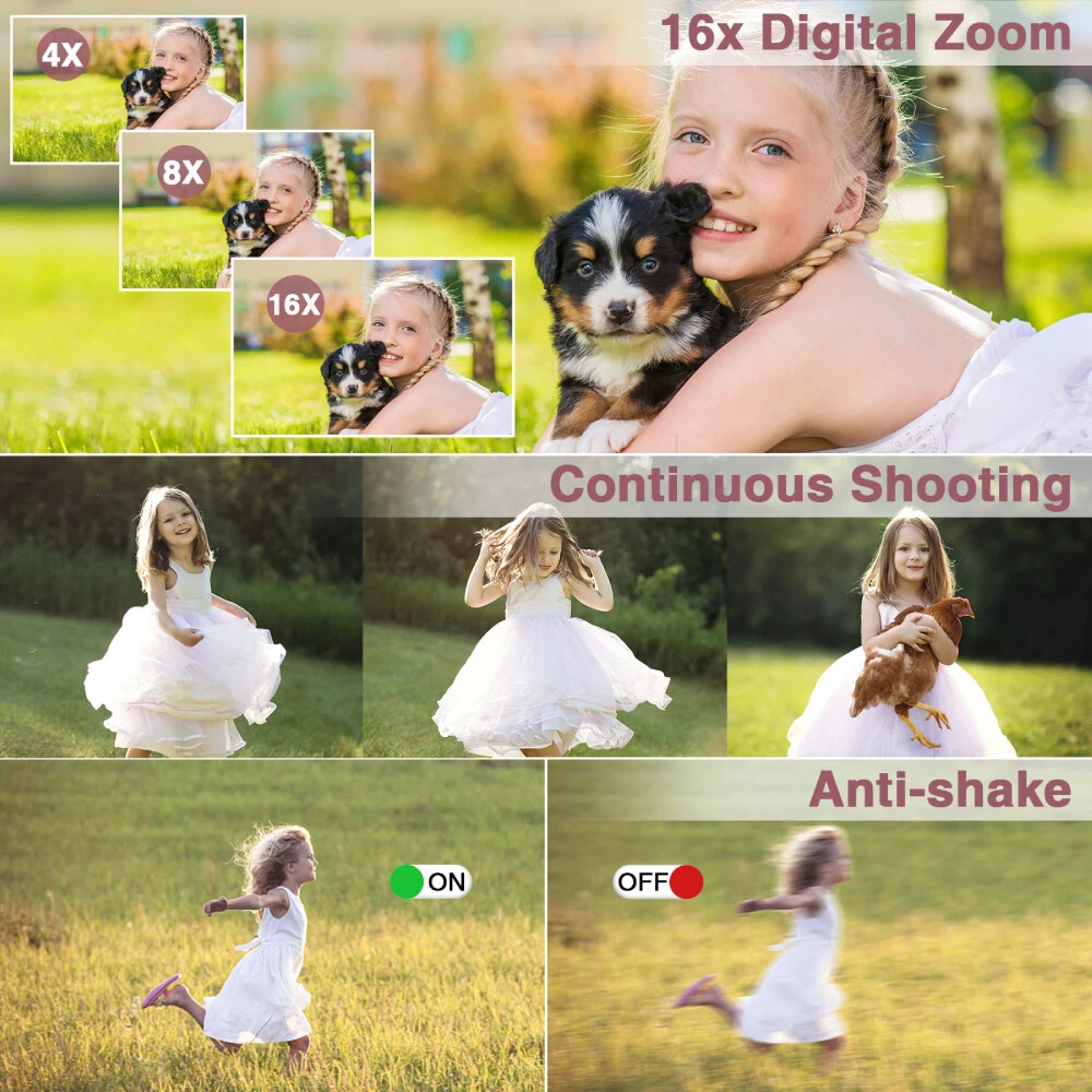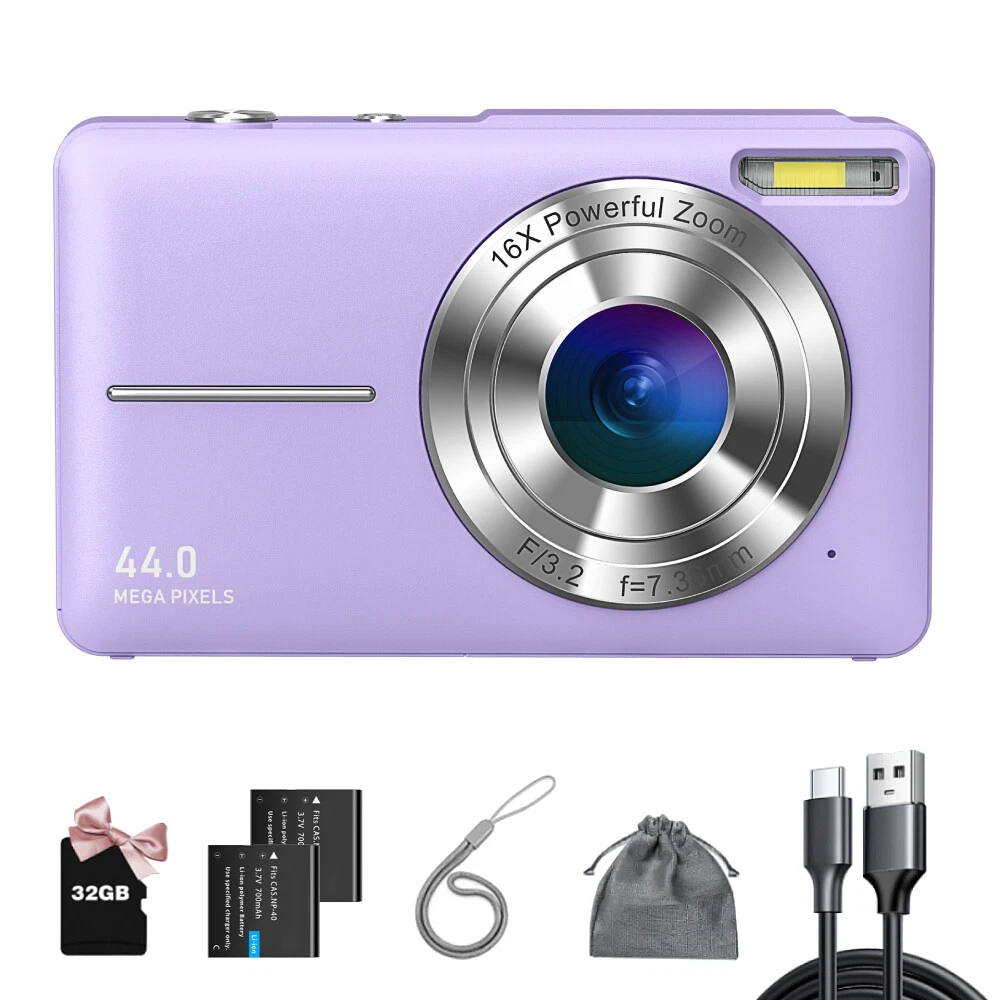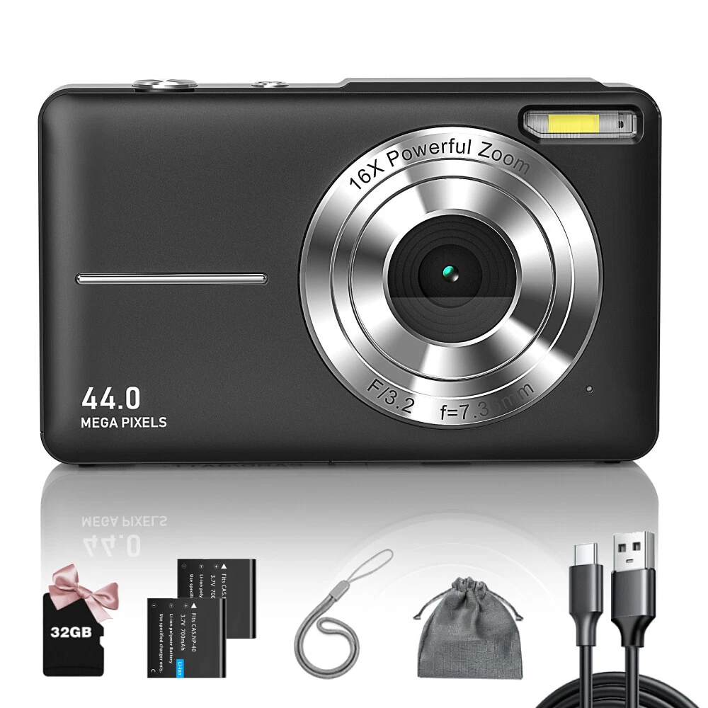 Digital Camera 1080P 44MP Cameras for Photography for Kids 16X Zoom Anti-Shake