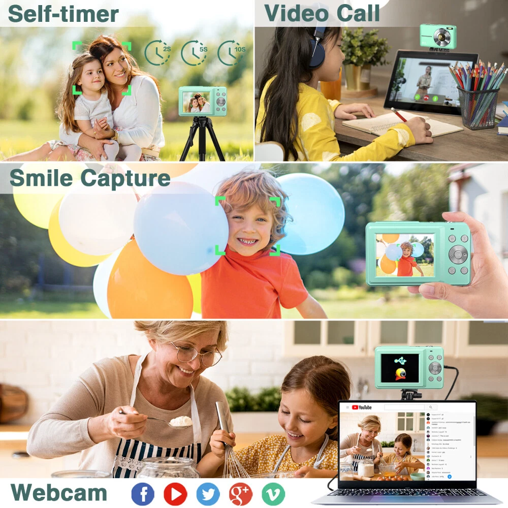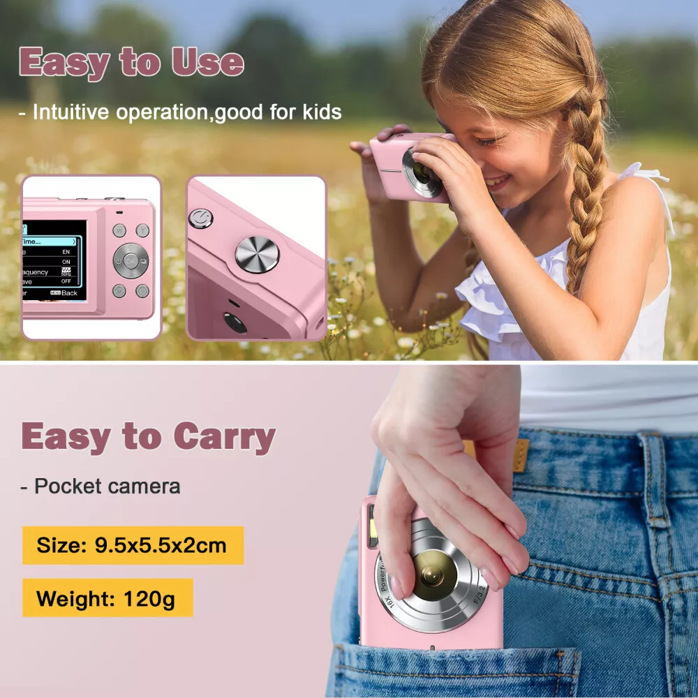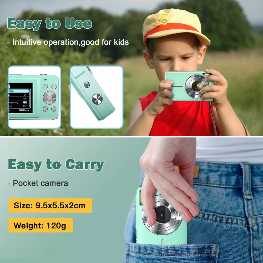 Store Categories Store Categories Video Camera Digital Camera Digital Photo Frame Mini Camera Heating Pad Thermometer Portable Fan Other Digital Camera 1080P 44MP Cameras for Photography for Kids 16X Zoom Anti-Shake Product Description MELCAM Features: 1080P 44MP FHD DIGITAL CAMERA - This digital camera featured with 1080P FHD video resolution, 44MP picture pixel, largely enhancing image clarity, compare with other digital cameras. This camera supports 16X digital zoom, you can zoom in or out images by using the W/T button. The pause function allows you to pause when record or playback videos. And the built-in fill light helps you to take quality pictures in the dark. MULTIFUNCTIONAL DIGITAL CAMERA - Featured with fill light, anti-shaking, continuous shooting, face detection, smile capture, self-timer, internal microphone and speaker(record sound videos). This portable camera will allows you to capture the most exciting and memorable moments with high quality photos or videos. Totally fits your demand, have fun and record wonderful times with friends, family members and classmates. VLOGGING CAMERA & WEBCAM - Equipped with video mode and a built-in microphone, you can record more stable and smooth videos. This digital camera can also be used as a webcam, so you can make video calls or live stream and share your life on social media. The included Type-C cable and 32GB memory Card support the transfer of photos and videos from the camera to your computer for timely photo collection and storage. PORTABLE & EASY TO USE - Smaller than smartphone, this compact mini pocket camera is small enough to fit your pocket or backpack, you could bring it to capture happy moments anytime and anywhere. This point-and-shoot digital camera for beginners is made of high-grade materials, safe and durable. The pocket camera is small and lightweight for teens to hand-held, and super easy to use and control. PERFECT GIFT & AFTER-SALES MAINTENANCE - This is a cost-effective entry-level digital point and shoot camera, easy to operate, ideal gift for teens, students, adults, elderly,, beginners. Let your families start to explore the wonderful world and leave impressive moments! Specifications: Brand: Melcam Color: Black, Pink, Green, Purple Video Resolution: 1080P FULL HD Image Resolution: 44MP Electronic Zoom: 16X File Format: JPG, AVI Aperture: F/3.2 Focal Length: f=7.36mm USB Port: Type-C Display: 2.4 inch Screen Memory Card: 32GB Memory Card (Included) Battery: Rechargeable Li-Ion Battery (Included) Power Save: Auto Power Off Language: Support Multi-Language Features: Smile Capture, Self Timer, Anti-Shake... Package Content: 1 x Digital Camera 1 x 32GB Memory Card 1 x Type-C Cable 2 x Batteries 1 x Storage Bag 1 x Lanyard 1 x User's Manual Warm Tips: 1. Please format the memory card at the first time using, package includes a 32GB memory card. 2. We recomend this digital camera to beginners who want to learn simple photography, not for professional. 3. Please set the video resolution to 1080p and image resolution to 44MP to get a better image quality. General Information Shipping & Return Payment Customer Support General Information Our company was founded in 2006. It is a manufacturer which integrate design, R&D, production and sales with over 400 skilled w orkers and over 16000 square meters production base. Our company is small enough to provide great one-on-one service. And at the same time, we're large enough to buy high volume which passes the discounts onto you. You can be assured we will be here for many years to serve all your future needs. We work very hard to treat our customers great. You can be sure you'll receive the best service possible. Shipping & Return We ship within 1-2 business days after receiving cleared payment. Please be aware that weekends and holidays are not business days. We offer customers a 30 day return p olicy. When returning an item please contact customer service by messaging us through eBay. Payment For assistance and if you need further information, please contact us by message us and one of our representa tives will get back to you as soon as possible. Customer Support We are eager to serve you the best we can. For assistance please send us a message and one of our representatives will be more than happy to provide you with the best possible service. Copyright © 2023 Dianxiaomi