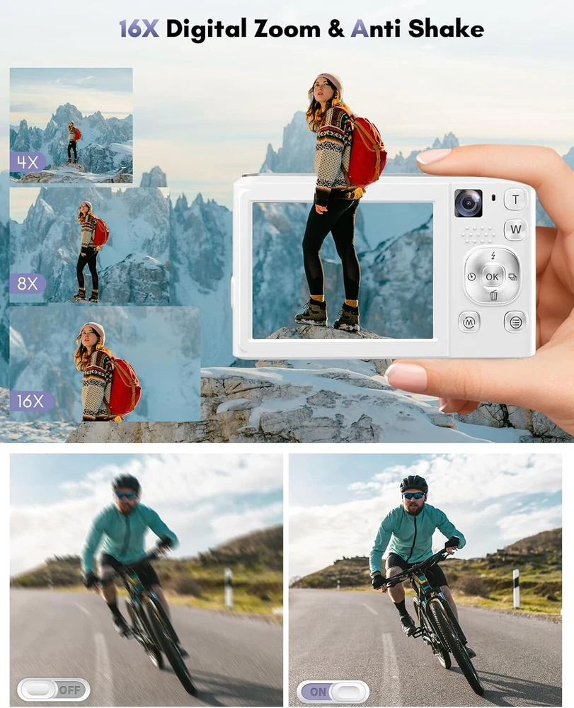 -Brand New - Never Used - Questions: Feel free to ask any Questions - BOX: Never Opened - DESCRIPTION: 【48MP Dual-Lens Digital Camera, Easily Record Your Travels!】This digital camera uses the latest CMOS image sensor system, allowing you to easily capture stunning 48MP HD images. Equipped with dual lenses, it enables one-touch switching between selfies and landscape photos without the need for assistance. Even beginners can take amazing photos of people, scenery, selfies, and more during their travels! 【Autofocus 4K Digital Camera for Photography】This compact digital camera features an innovative autofocus system. In photo mode, lightly tap the capture button to keep the camera steady to activate autofocus. When you see the focus frame on the screen change from yellow to green, the focus is complete. Fully press the capture button to take the clearest and most vivid photos. The W/T button allows you to adjust the 16x digital zoom, making it easy to capture distant scenery. 【4K Video Blog Camera with Pause Function】This video blog camera supports 4K video mode, and the dual cameras can switch the content and composition perspective as you wish. Press the "OK" button to pause while recording or playing back video, making use of the pause function. The camera also supports mounting on a tripod for use as a webcam. Equipped with two rechargeable batteries and the ability to record while charging, you never have to worry about running out of power during shooting. 【Portable and Versatile Features】This portable small digital camera is equipped with a 2.8-inch IPS screen and is extremely lightweight, making it perfect for your pocket when you want to travel light without carrying a ton of lenses. This digital camera also offers a variety of image styles, self-timer(2/5/10S), 3-continuous shooting, face recognition, anti-shake can make the picture stable and clear, and fill light allows you to take high-quality photos in low-light conditions. 【Complete Camera Set: Ideal Choice】This point and shoot digital camera comes with a high-quality 32GB card, wrist strap, and lanyard to free your hands and prevent the camera from falling when not in use - OFFERS: Reasonable offers are considered, LOWBALLERS, Best price and Lowest askers will be ignored - all sales final/no refunds/ no exchanges/ no returns - Disclaimer: I do not own the brand's trademarks, logos, pictures, or products posted. I do not intend to infringe on copyright. I find such content available on the internet. Contents are considered fair use. - Digital Camera, 48MP Autofocus Cameras for Photography,Vlogging Compact Camera with Front and Rear Camera, 16X Zoom Protable Point and Shoot Cameras with 32GB SD Card,Anti-Shake,2 Batteries(White)