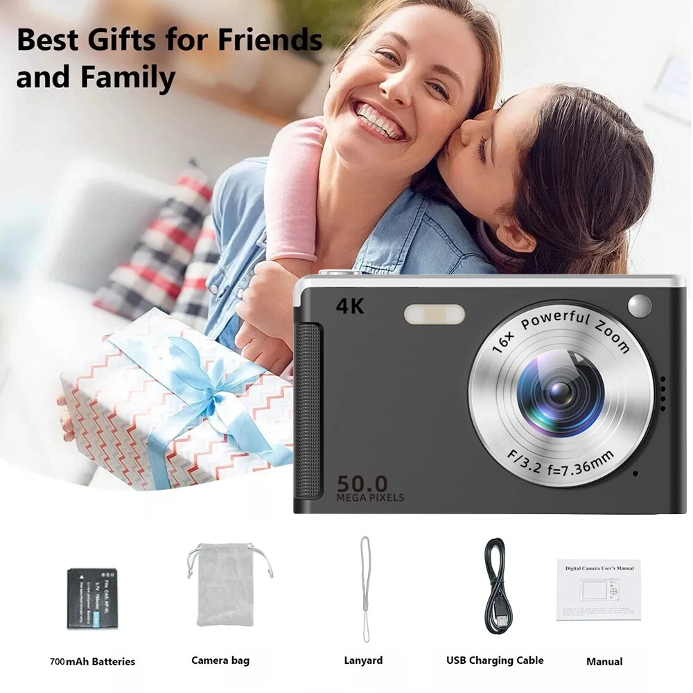 Picture Gallery Description Features: ✅ HD 50MP - This compact digital camera suitable for indoor/outdoor use can be used to create videos with full HD 1080P video resolution. This portable digital camera can capture 50MP image resolution and supports 16x digital zoom, helping you capture and record the most exciting and unforgettable moments, and shoot high-quality images or videos. This rechargeable digital camera is perfect for recording happy moments with friends, family, and classmates indoors/outdoors. ✅ 16x zoom and versatility - This children's digital camera supports 16x digital zoom, allowing you to press the W/T button to zoom in or out of the subject while recording videos and capturing still images. This mini camera is also equipped with features such as image stabilization, facial recognition, smile detection, continuous shooting, selfies, and flexible capture of subjects. ✅ Can be used as a webcam - this camera supports video mode and has a built-in microphone, allowing you to obtain clear recorded videos. This small camera can also be used as a webcam, simply turn off the camera, connect it to a computer, press the shutter and power buttons, and then it will be in webcam mode for video calls/live streaming, etc. ✅ The built-in fill light pause function allows you to pause while recording or watching a video. The built-in fill light can help you take high-quality photos in the dark. This teenage digital camera is easy to operate and control, making it the best choice for Christmas or birthday gifts for children and the elderly. ✅ Easy to carry - smaller than a mobile phone, the portable camera is small enough to fit in your pocket, making it convenient to carry around indoors/outdoors, such as traveling or camping. If you encounter any problems while trying out the mini digital camera as a beginner, please feel free to contact us and we will do our best to help you solve the problem. Specifications: Product Name: Digital Camera Product model: M06 Display: 2.8 inches Sensor: CMOS Digital zoom: 16x Video format: AVI Photo format: JPG Flash: off, on Facial recognition: off, on Anti shake function: off/on Beauty filters: off, on Facial detection: off, on Smiling face shooting: off and on Continuous shooting function: off, on, (default 5 frames) Timed shooting: supports 2 seconds, 5 seconds, and 10 seconds Video resolution: 1080FHD, 1080P, 720P, WVGA, VGA Image resolution: 50M, 44M, 36M, 30M, 24M, 20M, 18M Shooting modes: normal, slow motion, time-lapse recording, motion detection, timed photography Scene modes: Auto/People/Landscape/Backlight/Sports/Night/Backlight/Party/Beach/High Sensitivity Photography Effects: Normal, Black and White, Old Photos, Red, Green, Blue, Sunset, Warm, Cool, Overexposure, Infrared, High Saturation, Low Saturation, Abao, Gothic, Japanese, LOMO, Film, Binary Language support: English, Simplified Chinese, Traditional Chinese, French, Spanish, Italian, Portuguese, German, Japanese, Russian, Thai, Malay, Polish, Czech, Hebrew Other functions: replay and view files, lock files, delete files, 20 photo tones, white balance, exposure compensation, sharpness Memory expansion: 4 GB-128GB TF card (not included) Battery capacity: 700mAh lithium battery (removable) Charging port: type-c Product Color: White/Pink/Black Package List: 1 * Camera 1 * Hanging rope 1 * Storage bag 1 * User Manual 1 * Type-C cable Tips: The TF card and OTG adapter in the photo are not included! Due to manual measurement, please allow for a slight difference of 1cm! Thank you for your understanding and attention. Wishing you a pleasant shopping experience! Shipping Policy Payment Policy Return Policy Shipping Policy 1. We only ship to confirmed PayPal addresses. 2. Economy Shipping, with no tracking number. Standard Shipping, with tracking number. Express (Expedited) Shipping, with tracking number. 3. Economy shipping needs 2-5 weeks to arrive mostly. In rare case, it can take up to 6-8 weeks. It depends on your location and local postal service, as well as the weather condition along the shipping. 4. If you need a faster delivery time, you could choose Express (Expedited) Shipping. If you need a tracking number, you could choose Standard Shipping. Payment Policy We accept PayPal only. We only ship item to your PayPal verified address. Please pay attention that import duties, taxes and charges are not included in the item price or shipping charges. These charges are the buyer's responsibility. Please check with your country's customs office to determine what these additional costs will be prior to bidding/buying. Return Policy 1. We offer 60 day money back or replacement guarantee. In addition, it allows customers to return new and unused products in their original factory condition for any reason within 60 days from the date of purchase. 2. Although we test each item and they are packed professionally, few item (less than 0.1%) might be damaged during the shipping. Please feel free to contact us within 4 days after you receive your package about replacement. 3. If you don't receive items over 35 days, please make sure to contact us before leaving any neutral or negative feedback. We'll try our best to help you solve the problem. If we authorized the return, customers will get an email with instructions for returning the item. Email will be replied within 24 hours on Chinese business hours. On Nov 24, 2024 at 22:37:27 PST, seller added the following information: