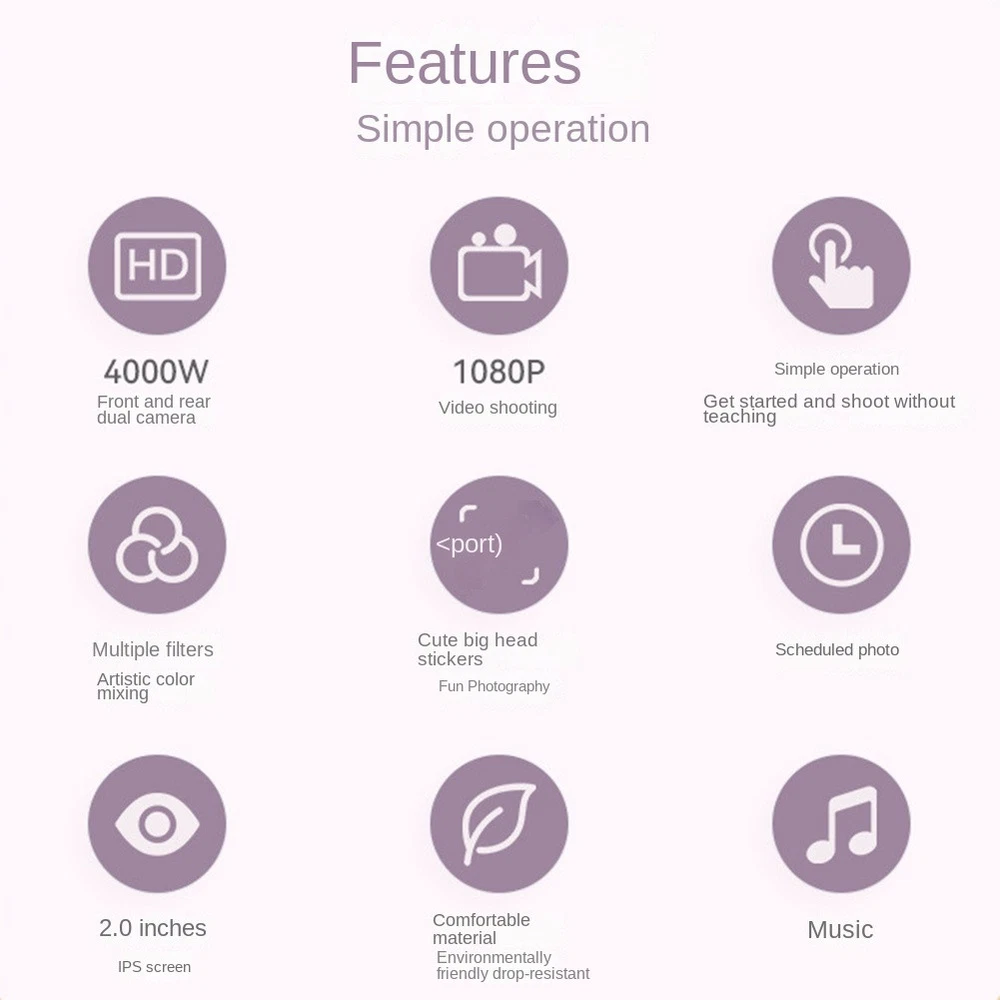 Digital Camera with 32GB Card for Children T5N71538 1,Hold Kids' Long-term Attention: The toy camera has multiple functions: Kids can take photos, make digital voice recordings, videos and play games. different filter effects, built-in photo frame effects making the most of their creativity with intuitive sound for keeping kids engaged. 2,Perfect for Kids: It's compact for small hands, convenient to carry everywhere, packing included a lanyard for portability, design for children to hang the mini camera on the neck. Strong body for accidental drops. Easy to control and take pictures by kids. 3, and Rugged: The environmental protective soft silicone and safe material, protective shock protective Shell, and safe for kids, provide them a comfortable way to take photo or record video with the child camera. 4,Happier Memory for Kids: This toddler camera comes with 32G memory card and built-in rechargeable lithium battery, when children take the kids camera, just open the switch key, then can enjoy the fun of taking photo, easy to use for child. Colour:blue Material:ABS Package Contents: 1 x camera 1 x 32G memory card 1 x USB charging cable