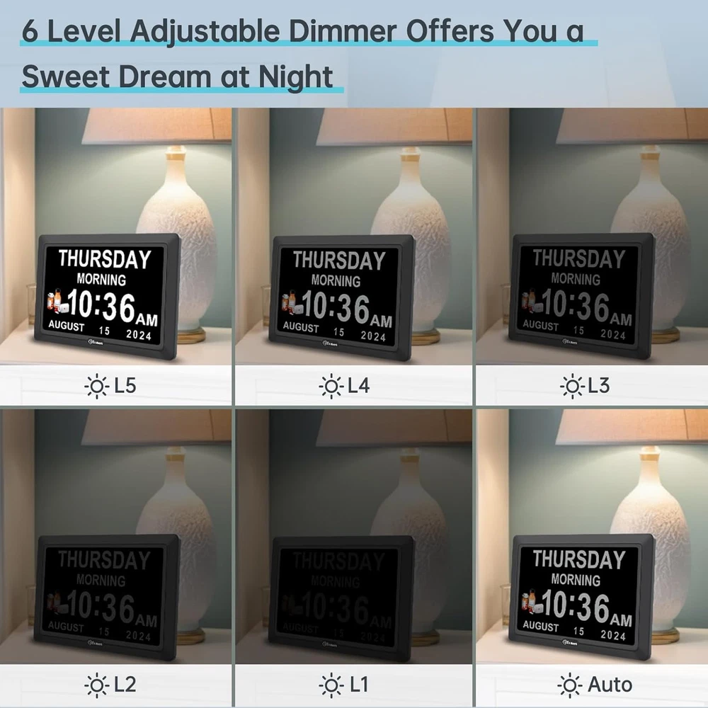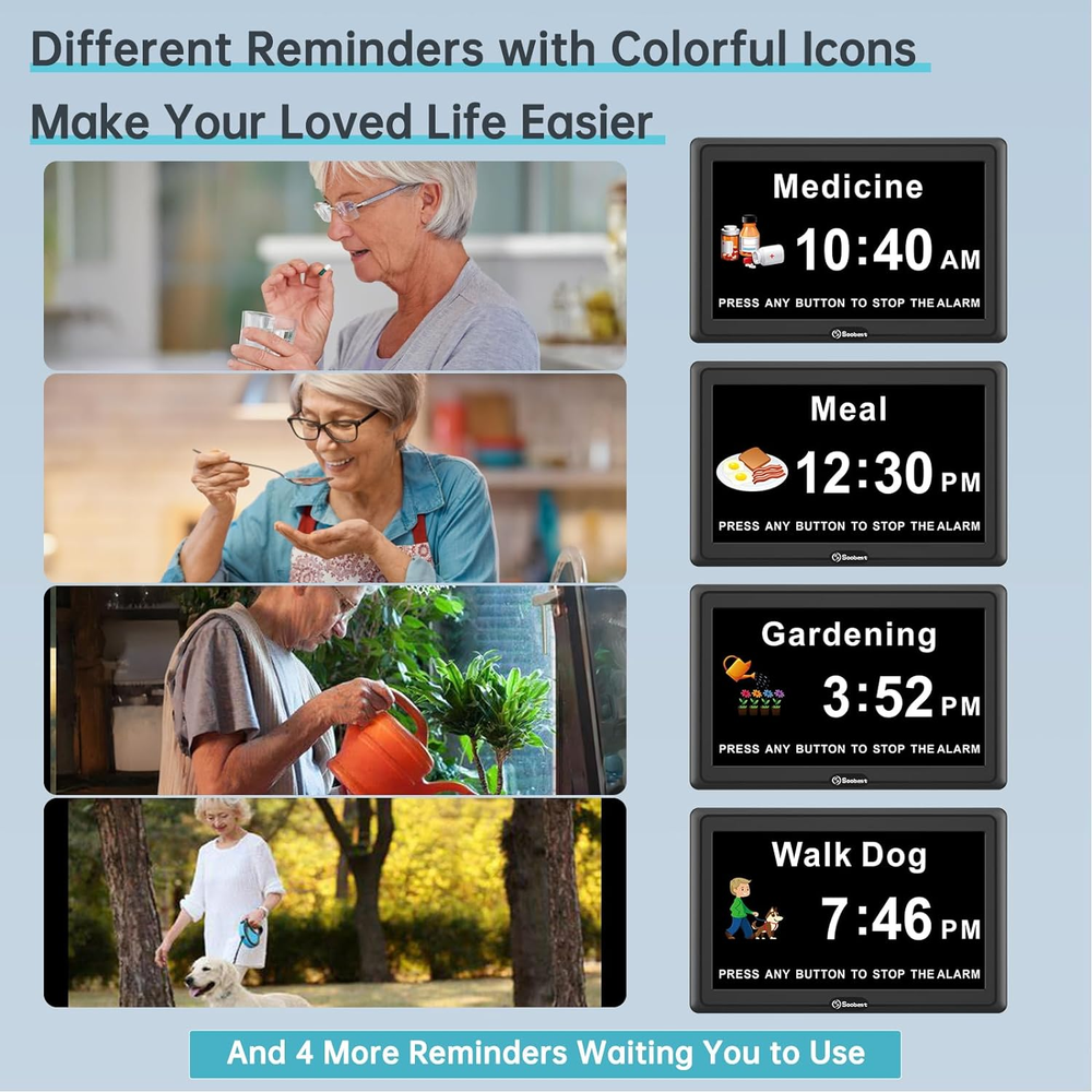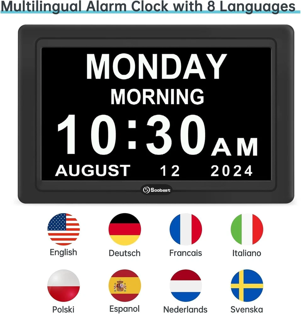 Store New Arrivals Add to Favorite View Feedback Contact Digital Dementia Alarm Clock Large Display for Seniors, Plug in Electric Date Day of Week Calendar Clock 12 Alarms 3 Ringtones for Elderly Memory Loss AlzheimerโS, Auto DST (7" Black) Description Item model number SO1001 Style Senior Elderly Memory Loss Alzheimer's Number of Items 1 Power Source Corded Electric Dial Color Black Country of Origin China Warranty Type Limited Theme Gift, Plain, Love, Famliy, Cartoon Are Batteries Included Yes Room Type Bedroom, Living Room, Dining Room, Kitchen, Home Office, Nursery Product Dimensions 5.3"W x 10"H Material Plastic Watch Movement Electronic Frame Material Plastic Age Range (Description) Seniros Alarm Clock Yes Number of Batteries 1 Lithium Metal batteries required. (included) Indoor/Outdoor Usage Indoor Batteries 1 Lithium Metal batteries required. (included) Item Weight 8.3 ounces Special Feature function(f) {var _np=(window.P._namespace("DetailPageProductOverviewTemplatesJava"));if(_np.guardFatal){_np.guardFatal(f)(_np);}else{f(_np);}}(function(P) { P.when('A').execute(function(A){ A.on('a:truncate:po-attribute-truncate-4:updated', function(data) { var isTruncated = !data.truncateInstance.getIfTextFits(); var seeMoreElement = document.getElementById('po-attribute-see-more-id-4'); if(seeMoreElement) { seeMoreElement.style.display = isTruncated ? '' : 'none'; } }) }); })); Seniors Elderly Memory Loss Alzheimer's Friendly, 12 Alarms with Icon, Super Loud with Wave and Birds Ringtones,, Corded Plug in Adapter Powered (Included), Calendar Date Day of Week Versatile Display, See more Display Type Large HD Display Digits Mounting Type Tabletop, Wall Mount Clock Form Multi Display Color 7" Black Operation Mode Electrical Shape Rectangular Size Large ๐๐ถ๐ด๐ถ๐๐ฎ๐น ๐๐น๐ผ๐ฐ๐ธ ๐๐ฎ๐ฟ๐ด๐ฒ ๐๐ ๐๐ถ๐๐ฝ๐น๐ฎ๐ ๐ฉ๐ฒ๐ฟ๐๐ฎ๐๐ถ๐น๐ฒ ๐ ๐ผ๐ฑ๐ฒ๐ - Soobest alarm clock has a 7โโ large HD elderly seniors friendly screen with versatile display, which could make clock time, date day of week calendar much more visible. You could even see the multi-information clearly from the other side of the bedroom. You can customize 4 display modes like white digits, yellow digits, analog clock face and color display in red white blue background. ๐๐ฒ๐บ๐ฒ๐ป๐๐ถ๐ฎ ๐๐น๐ผ๐ฐ๐ธ ๐ญ๐ฎ ๐๐น๐ฎ๐ฟ๐บ๐ ๐ณ๐ผ๐ฟ ๐ฆ๐ฒ๐ป๐ถ๐ผ๐ฟ๐ ๐ ๐ฒ๐บ๐ผ๐ฟ๐ ๐๐ผ๐๐ - Soobest digital calendar day clock for senior has up to 12 sets of alarms, each alarm could be set as a reminder like a medicine reminder, meal reminder, shower reminder etc. When the alarm goes off, the clear colorful icon with specific words will also help your family member get rid of misunderstanding. ๐๐น๐ฎ๐ฟ๐บ ๐๐น๐ผ๐ฐ๐ธ ๐ ๐๐น๐๐ถ๐ฝ๐น๐ฒ ๐ฆ๐ผ๐๐ป๐ฑ๐ ๐ฎ๐ป๐ฑ ๐ฉ๐ผ๐น๐๐บ๐ฒ ๐๐ฑ๐ท๐๐๐๐ฏ๐ฎ๐น๐ฒ - There are 3 kinds of voice built-in the Soobest large digital alarm clock for senior. The wave sound will offer you an immersive experience of lying on a beach, and the birds sound could bring you into a greenery forest. The volume is also adjustable from level 1 โ 10, select a comfortable volume for the senior or your kids. ๐ฃ๐น๐๐ด ๐ถ๐ป ๐๐น๐ฒ๐ฐ๐๐ฟ๐ถ๐ฐ ๐๐น๐ผ๐ฐ๐ธ ๐๐ถ๐บ๐บ๐ฎ๐ฏ๐น๐ฒ ๐๐ฟ๐ถ๐ด๐ต๐๐ป๐ฒ๐๐ - Plug Soobest digital clock in an electric outlet, it can run accuracy and bright even for elderly seniors. Large display could auto dim at 8:00 PM and 7:00 AM if you select โautoโ brightness in the setting or manual brightness level from Level 1-5. ( corded type C adapter included) ๐ฒ ๐ง๐ถ๐บ๐ฒ ๐ฃ๐ฒ๐ฟ๐ถ๐ผ๐ฑ ๐๐ถ๐๐ฝ๐น๐ฎ๐ - Soobest large digital clock for seniors could show 6 different time period at corresponding time on the HD screen: pre dawn, morning, afternoon, evening, night, mid night. For example, when the time comes to 6:00 AM, the time period will display morning on the screen in case of seniors taking it for 6:00 PM by mistake. ๐ ๐ฒ๐บ๐ผ๐ฟ๐ ๐๐๐ป๐ฐ๐๐ถ๐ผ๐ป โ The battery memory function could help you get rid of the most frustrating situation: power outage. It could save all your time, alarm and reminder setting, avoiding reset all the things again. ๐๐ฎ๐๐ ๐ฆ๐ฒ๐ - Soobest desk calendar alarm clock with date used the minimalist design, 4 direction button and OK/MENU button could finish all the setting. And you donโt have to waste time to find where the remote is, just pick up the clock start setting. ๐๐ฟ๐ฒ๐ฎ๐ ๐๐ถ๐ณ๐ ๐๐ต๐ผ๐ถ๐ฐ๐ฒ - What a good clock, it's a thoughtful gift for elderly seniors memeory loss vision impaired Alzheimerโs, providing them a helpful tool to rebuild their daily routines. Product Description Multiple Reminders Soobest digital alarm clock has up to 12 sets of alarms, and you could set 8 different kinds of reminder with colorful icon to tell your elderly family member the correct time and remind them that something needs to be done. Natural Sound Brings You to Different Environment The clear remider with date and day of week has 3 different kinds of alarm sound to choose, select a comfortable sound for your senior family members. Besides, the volume is also adjustable from Level 1-10 in case of the alarm too loud or quiet. Even the hearing impared person could be wakened by the Level 10 volume. Multiple Display Soobest large digital calendar clock for seniors has 4 kinds of display, which could be applied to different operationg situation. No matter where you put it, it will