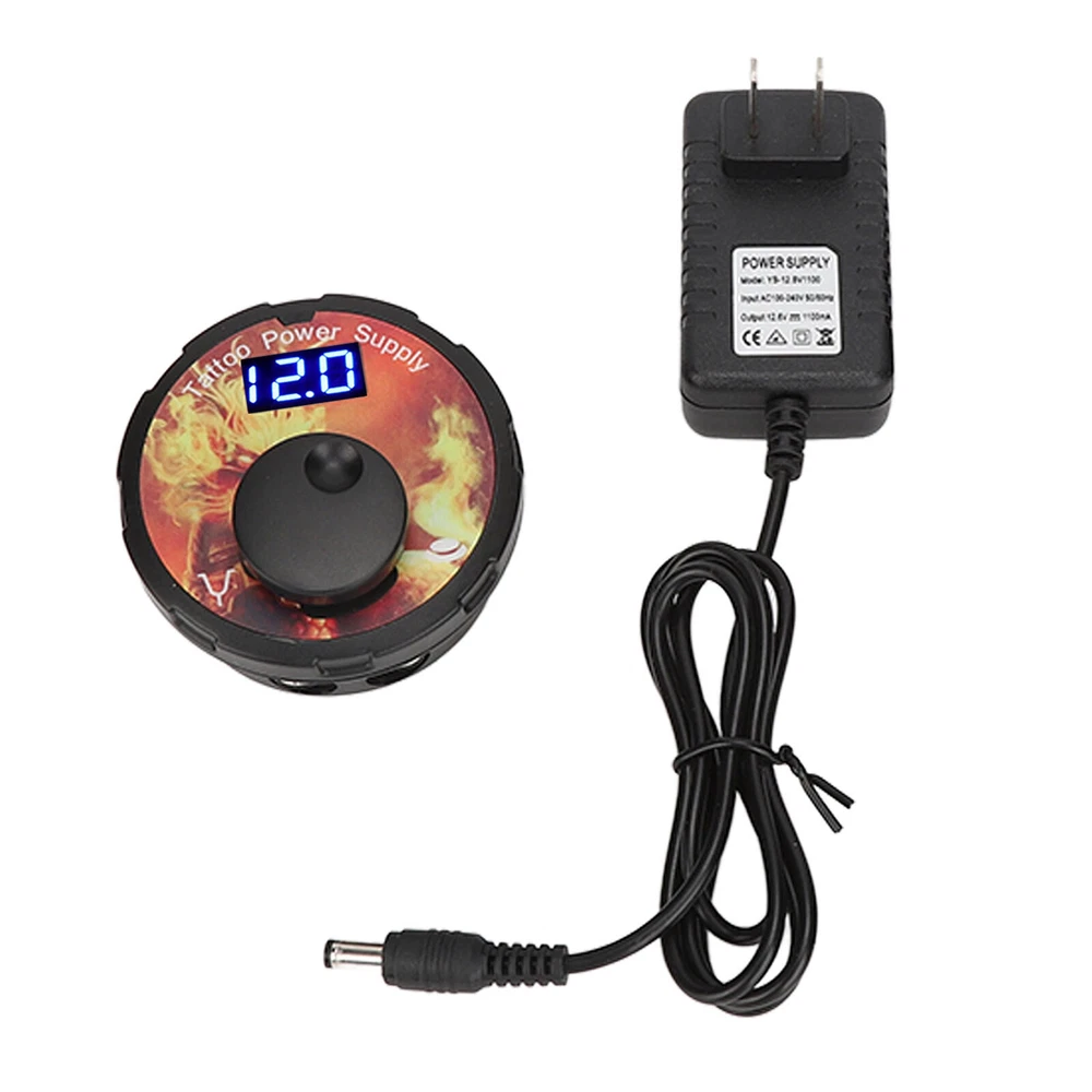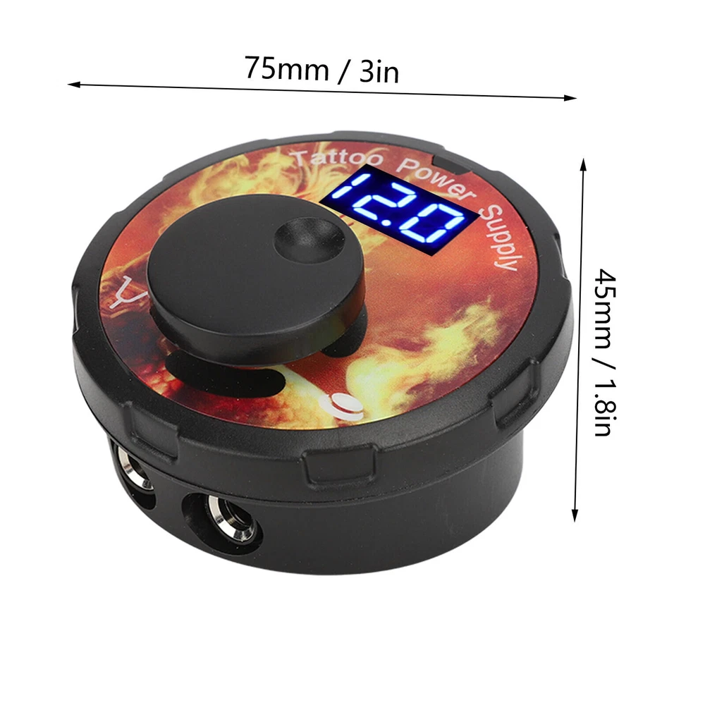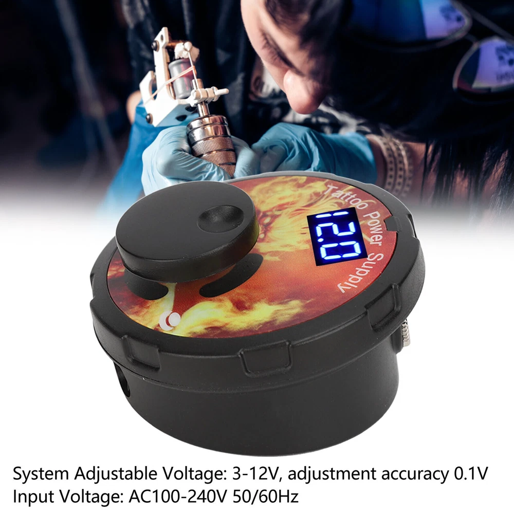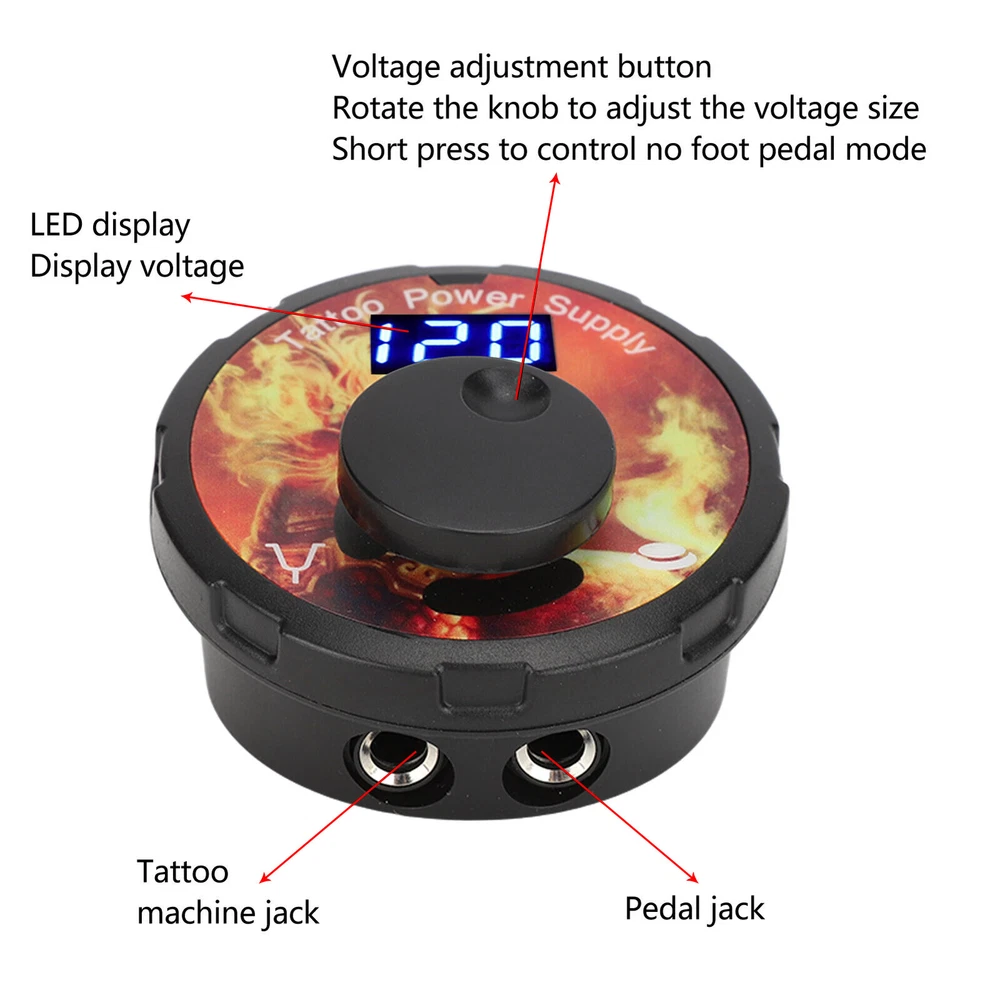 Feature: 1. VOLTAGE ADJUSTABLE: The adjustable voltage of the tattoo power supply for 3‑12V, the adjustment accuracy of 0.1V, rotate the adjustment button to adjust the voltage. 2. 2 PEDAL MODES: Tattoo power supply has 2 foot pedal mode, one is the need for foot pedal control mode, the other is no foot pedal control mode, short press the voltage adjustment button, the machine can run continuously. 3. HIGH EFFICIENCY: Strong movement, suitable for a variety of places, strong power, long working hours will not heat up, you can rest assured that the purchase and use. 4. LED DISPLAY: This mini tattoo power supply with LED display, can accurately display the current voltage, convenient for tattoo artists to adjust the voltage at any time. 5. LIGHT WEIGHT: Tattoo power box with ABS shell, small size, light weight, can effectively anti static, easy and safe to use. It also comes with cool and stylish LED lights. Specification: Item Type: Mini tattoo power Material: ABS, electronic components Input Voltage: AC100-240V 50/60Hz System Adjustable Voltage: 3-12V, adjustment accuracy 0.1V Power Supply Host Size: Approx. 75 x 75 x 45mm / 3 x 3 x 1.8in Product Characteristics: 1. 2 seconds to turn on, 0.1V precise adjustment. 2. Built in short circuit protection, breathing light. 3. Support foot pedal, no foot pedal 2 working modes. Voltage Adjustment Mode: Knob adjustment Package List: 1 x Tattoo Power Supply 1 x Adapter