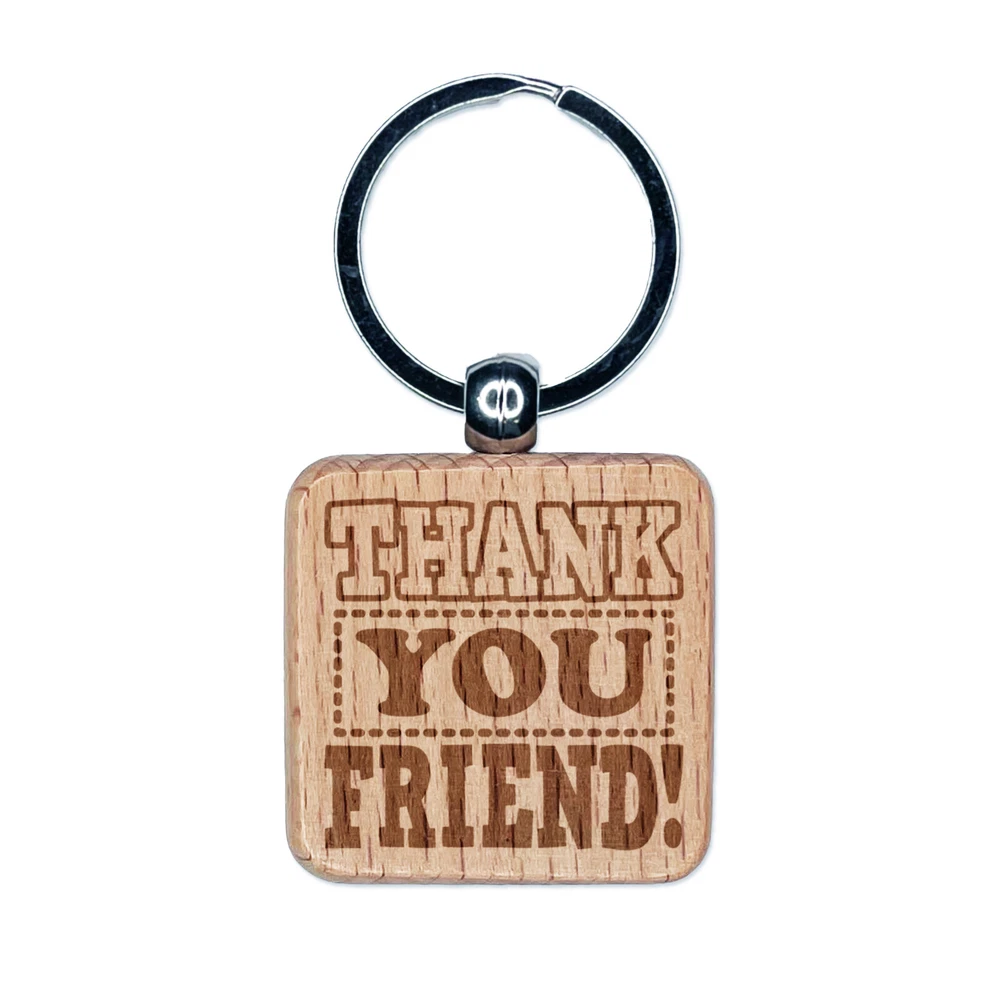 Dije Llavero Cuadrado Thank You Friend Divertido Texto Grabado en Madera