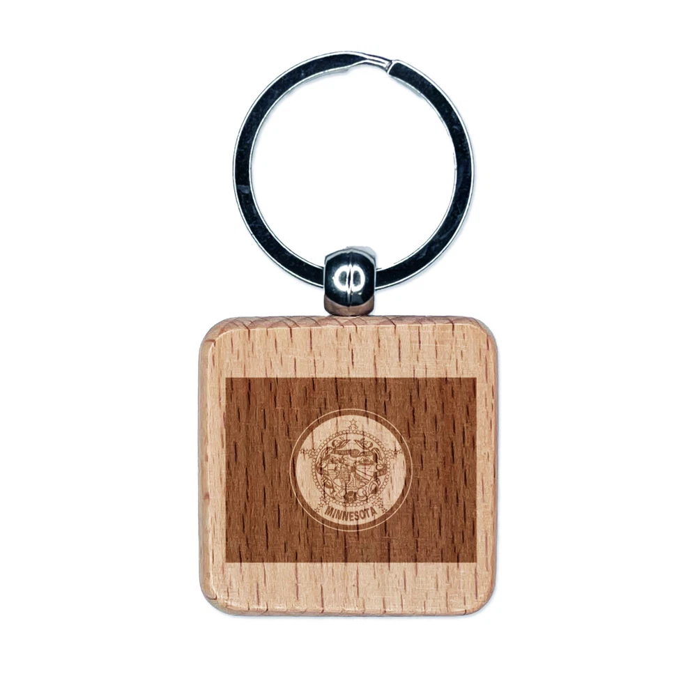 Dije con etiqueta de llavero cuadrado de madera grabado con bandera del estado de Minnesota
