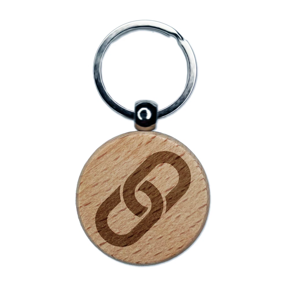 Dije de etiqueta de eslabón de cadena icono grabado en madera llavero redondo