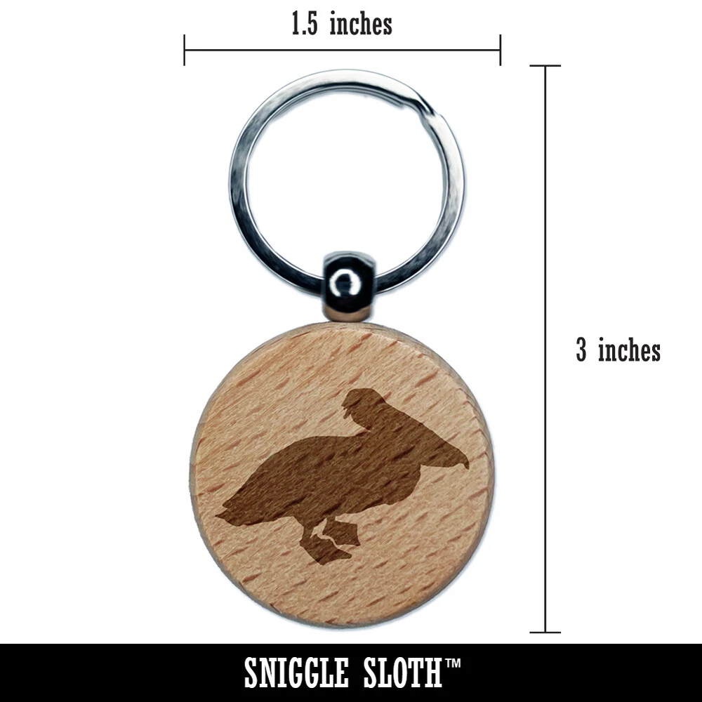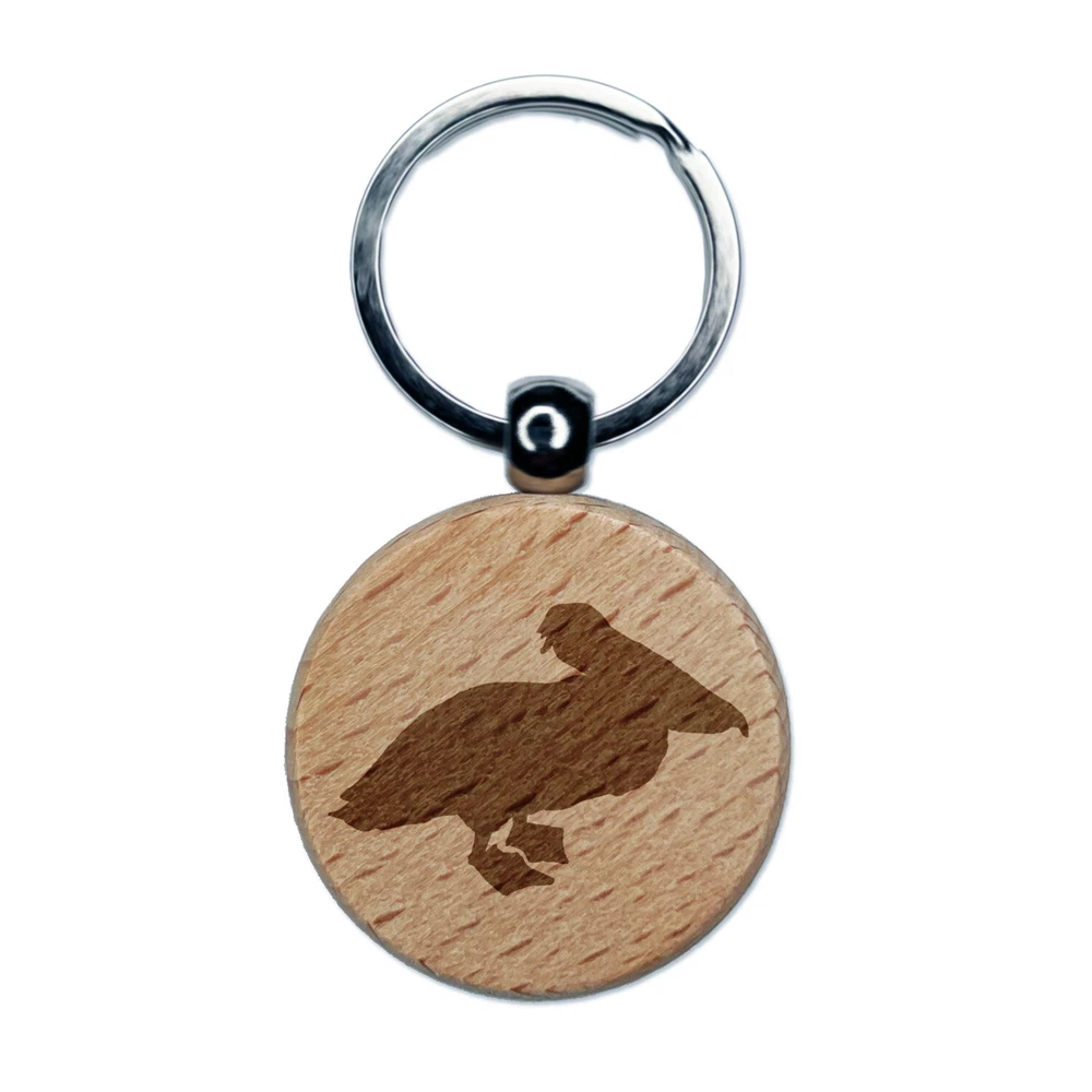 Dije llavero redondo de madera grabada lisa para pájaro pelícano